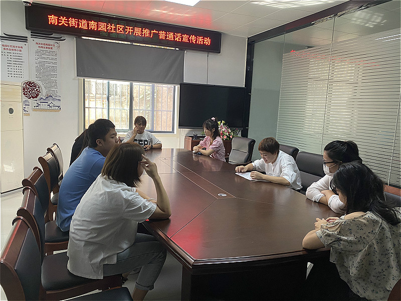 2020年9月14日至20日是第23届全国推广普通话宣传周,为宣传和贯彻国家语言方针,提升辖区居民语言文字应用能力,9月9日下午,南关街道南园社区组织居民群众在会议室开展推广普通话宣传活动。
