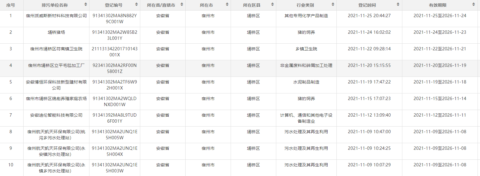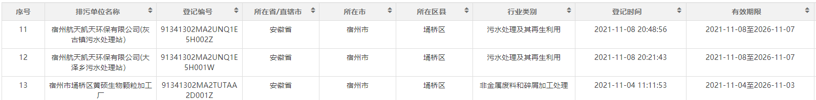 2021年11月份排污登记名单