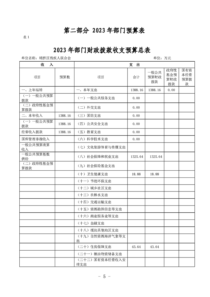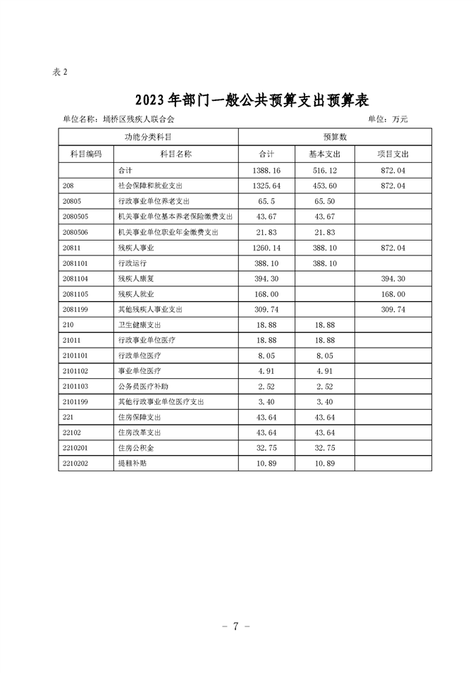埇桥区残疾人联合会2023年部门预算