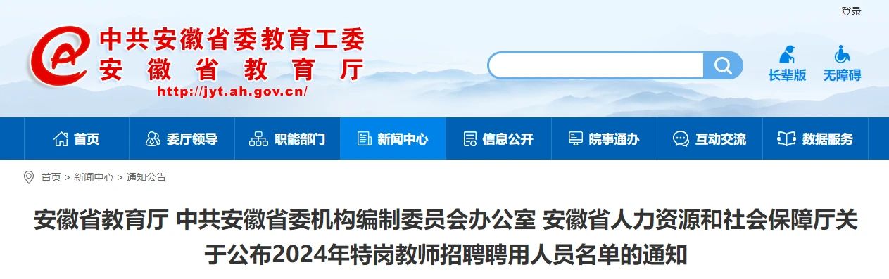 根据省教育厅、省财政厅、原省人事厅、省编办《关于印发〈安徽省“农村义务教育阶段学校教师特设岗位计划”实施方案〉的通知》(教师〔2009〕7号)和《安徽省教育厅 安徽省财政厅 安徽省人力资源和社会保障厅关于印发安徽省2024年农村义务教育阶段学校教师特设岗位计划招聘工作实施方案的通知》(皖教秘师〔2024〕39号)要求,我省已完成2024年特岗教师招聘工作,现将658名招聘特岗教师名单予以公布。请设岗县(市、区)按有关规定做好特岗教师聘用工作,落实相关政策,聘期自签订“特岗计划”协议之日起执行。