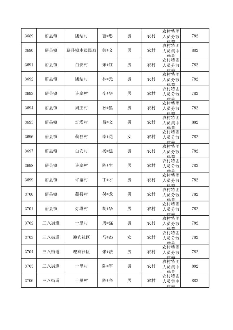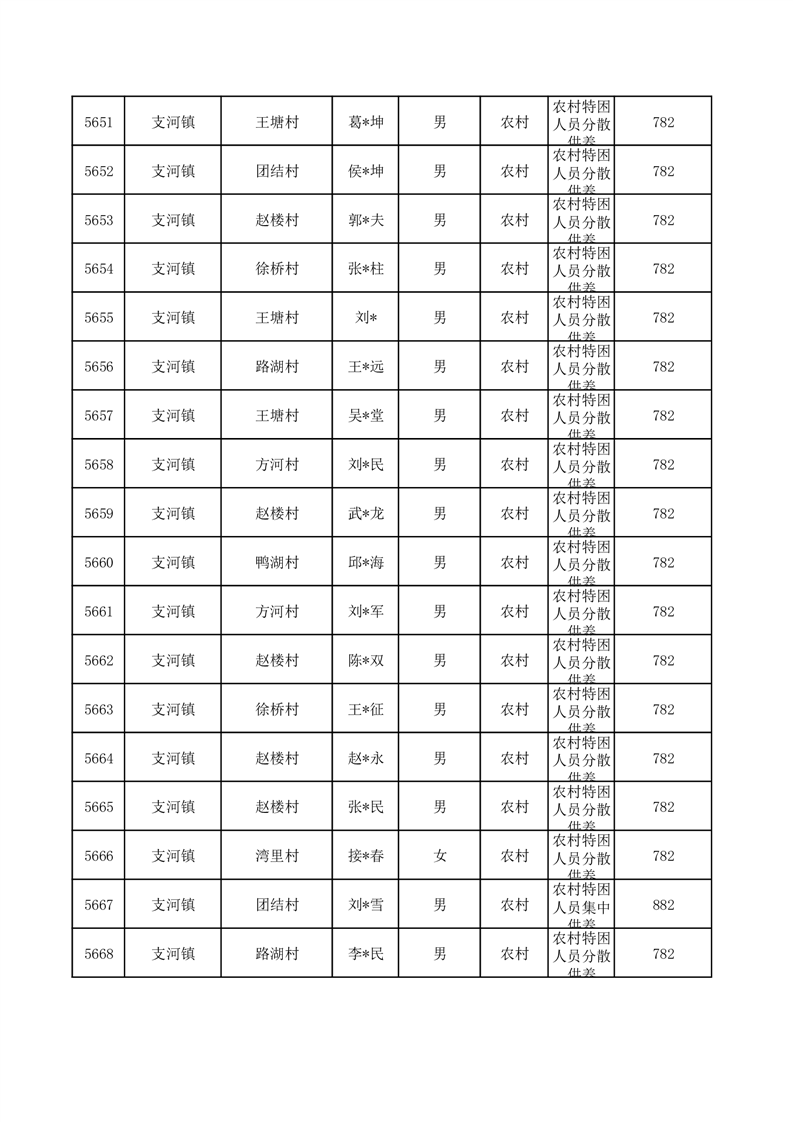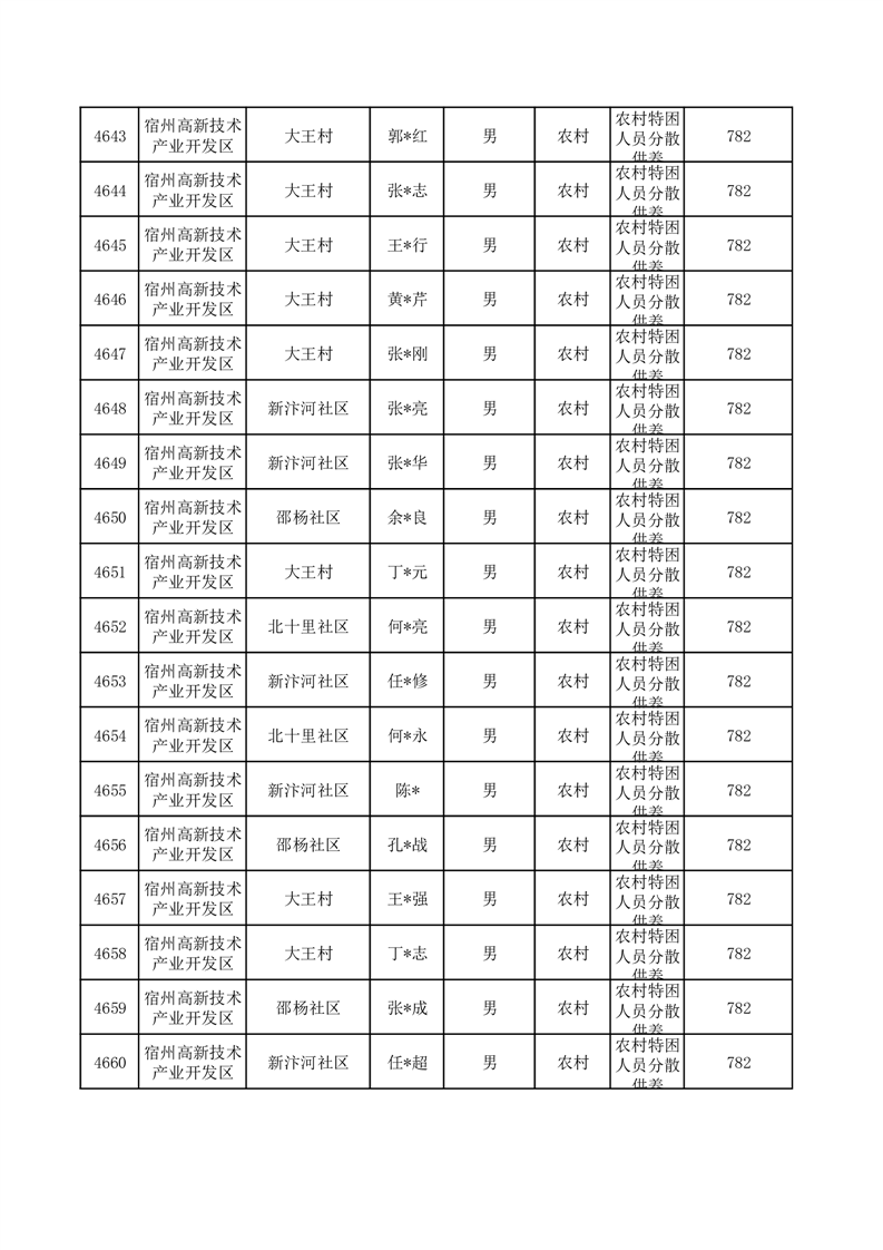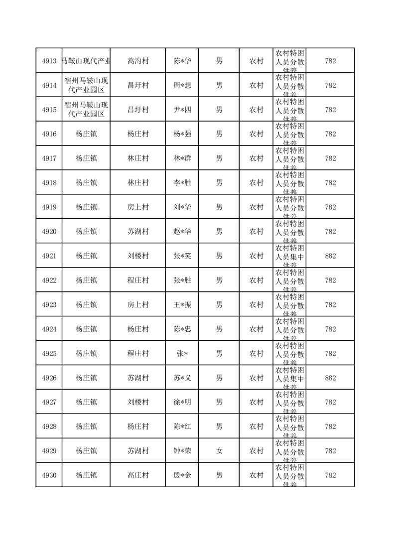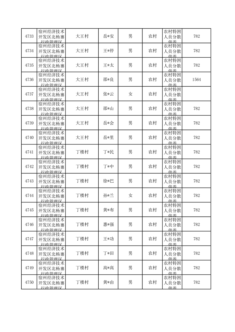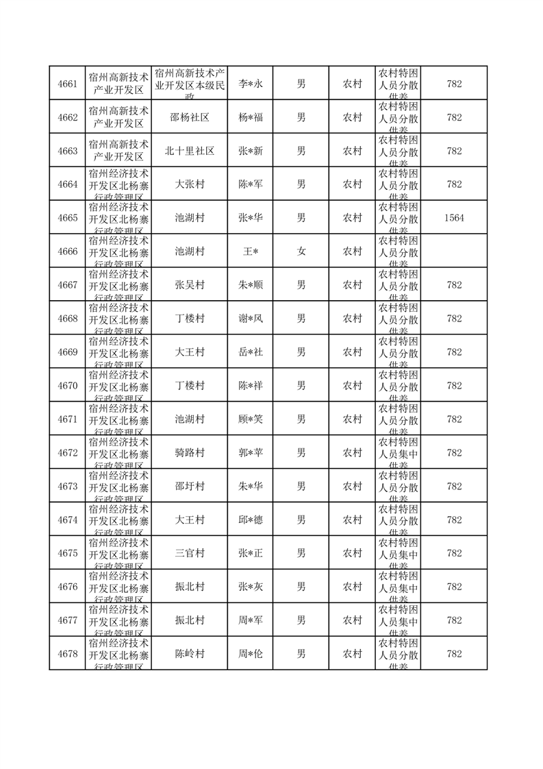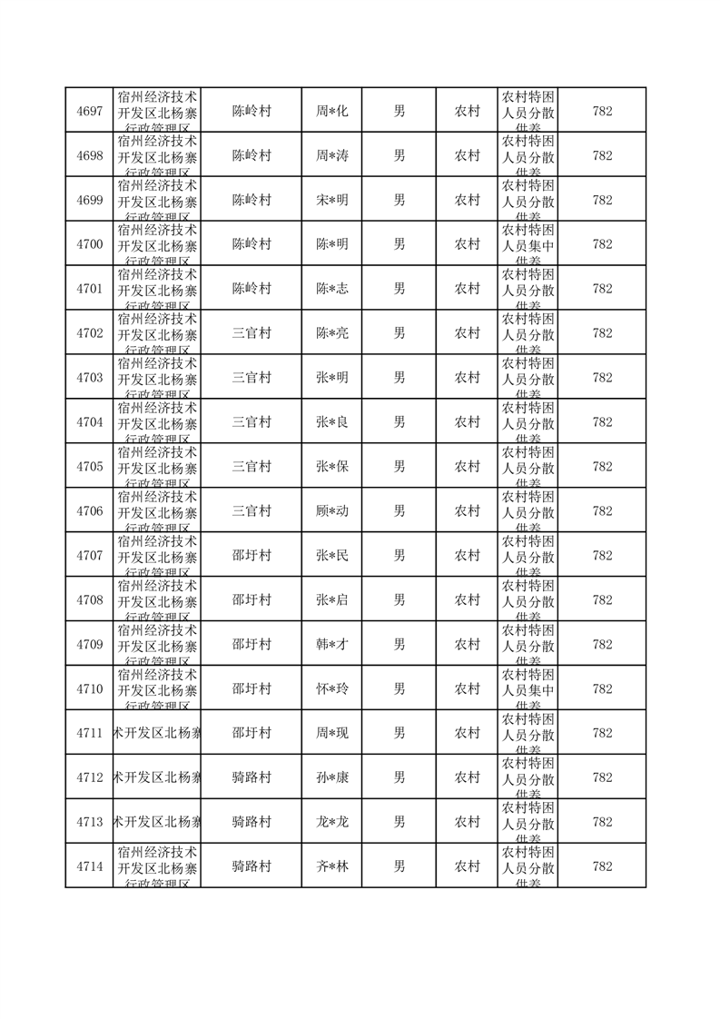 埇桥区2025年10月特困人员名单