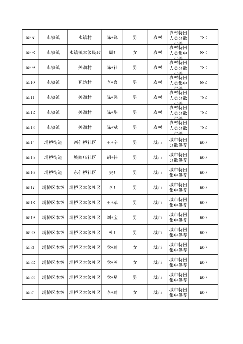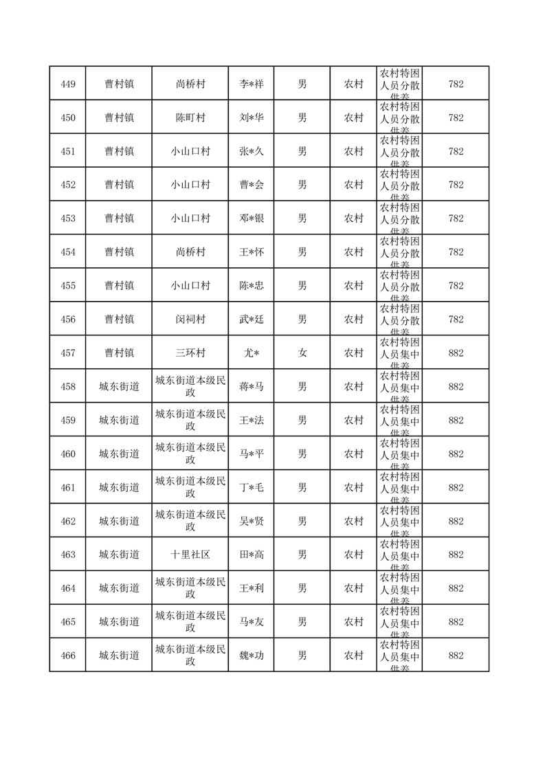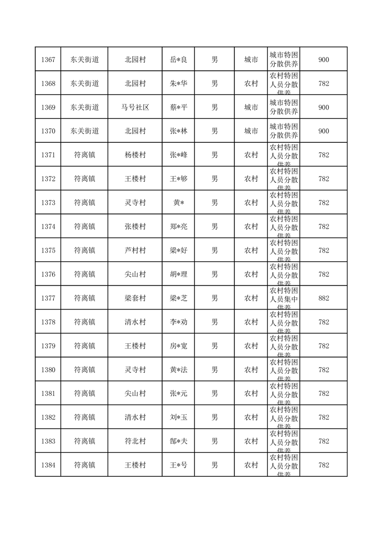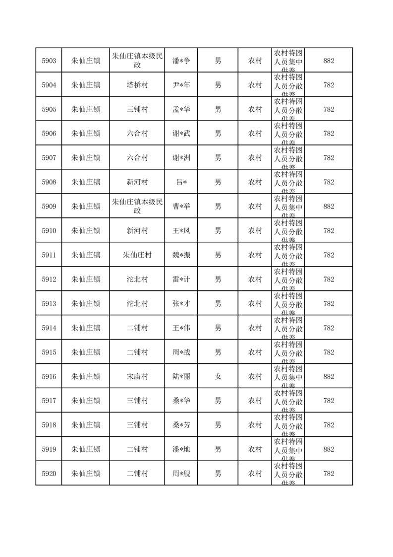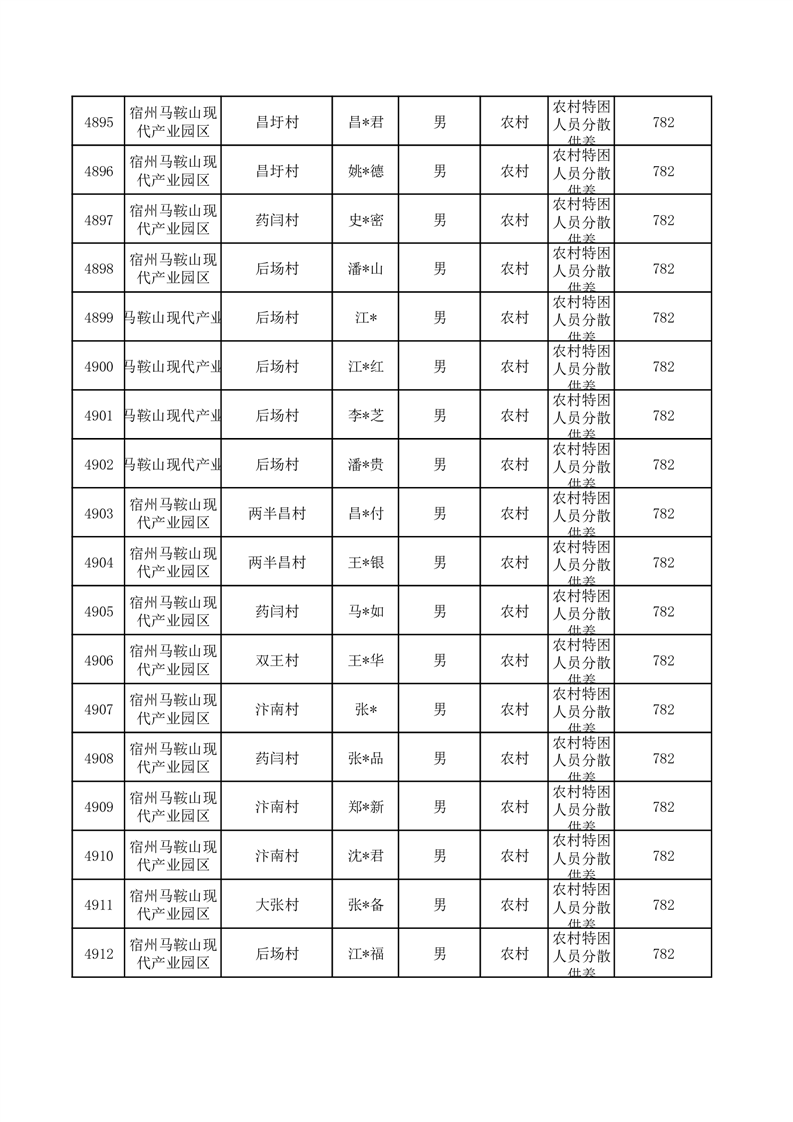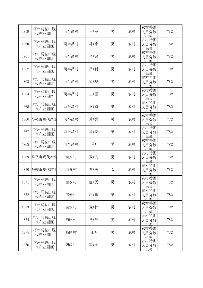 埇桥区2025年10月特困人员名单