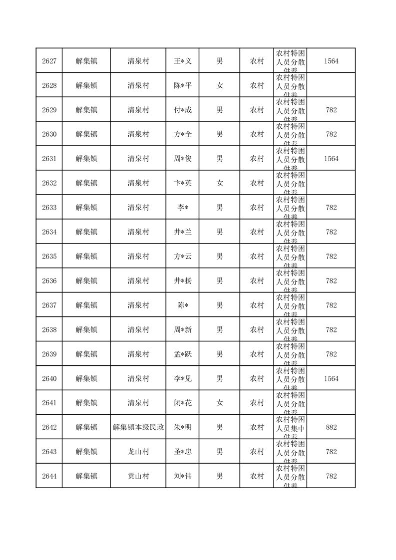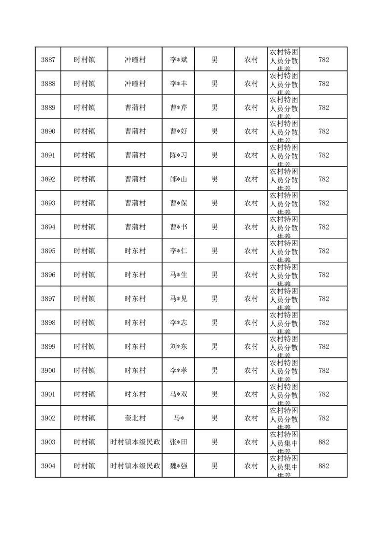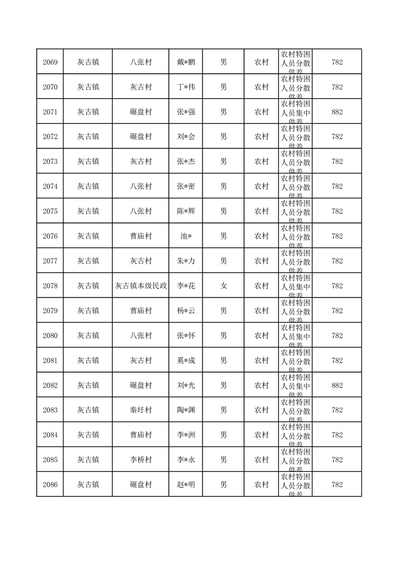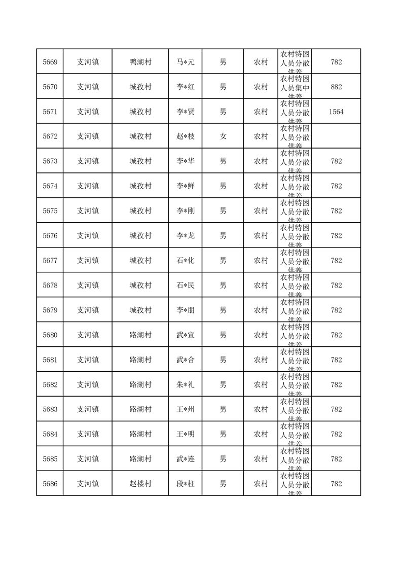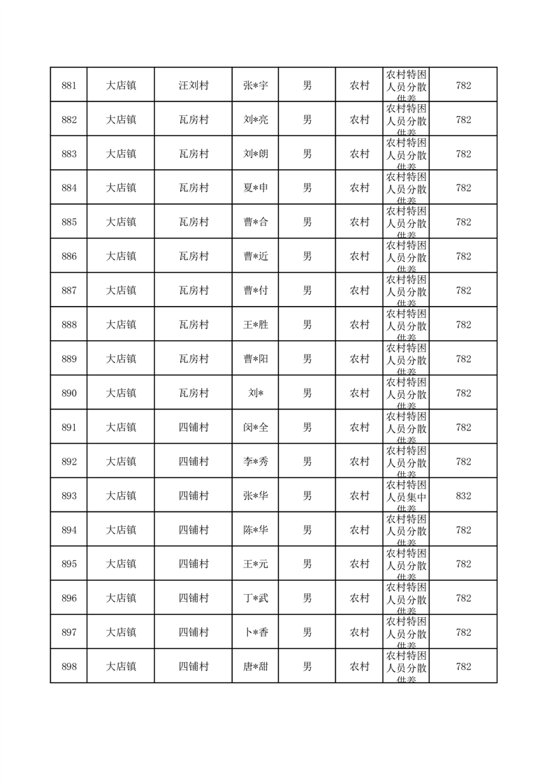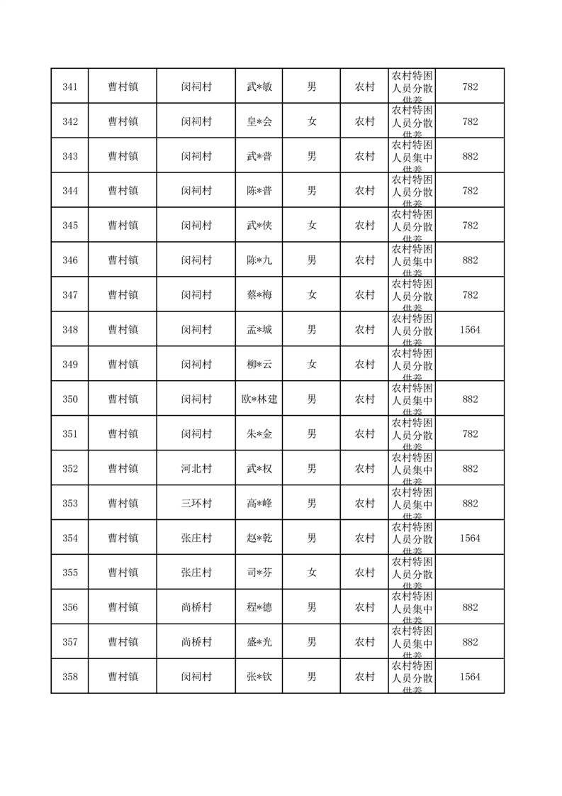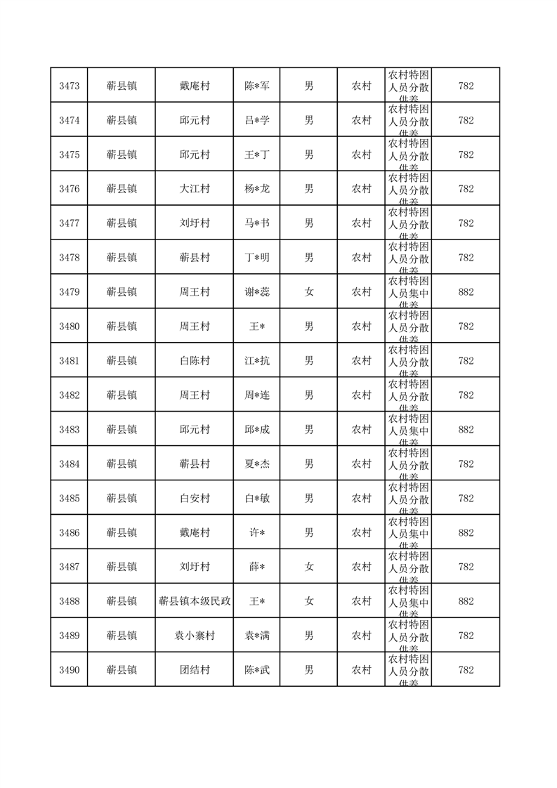 埇桥区2025年10月特困人员名单