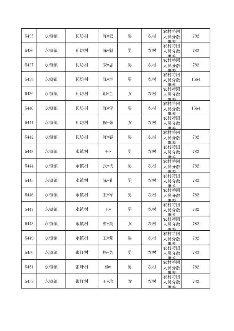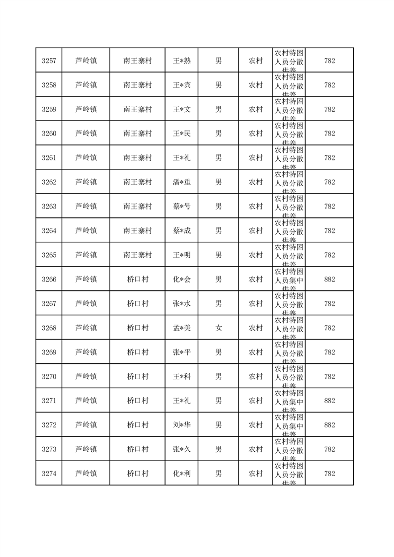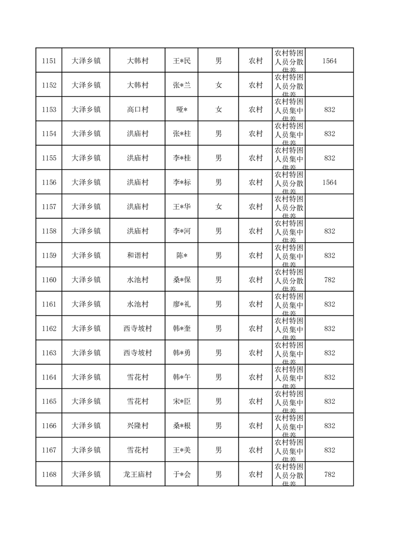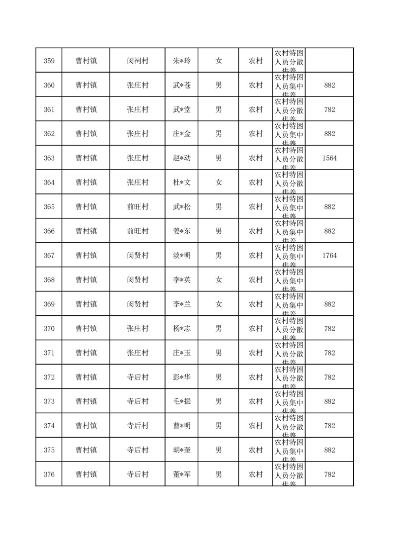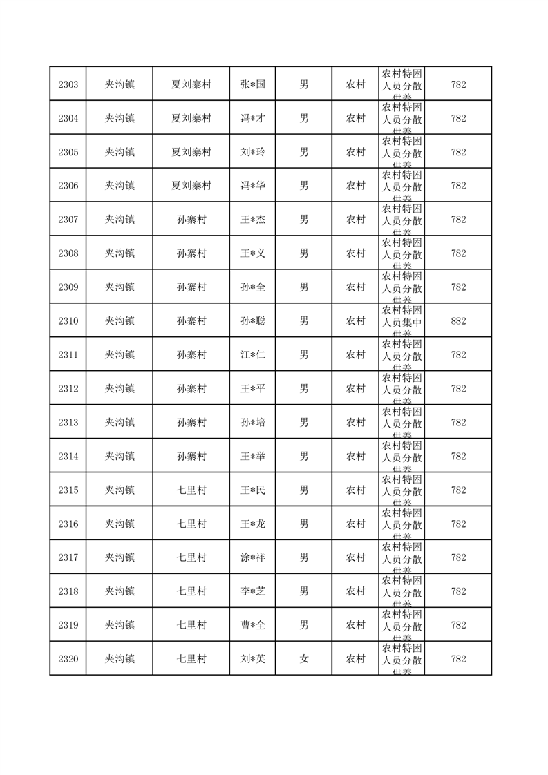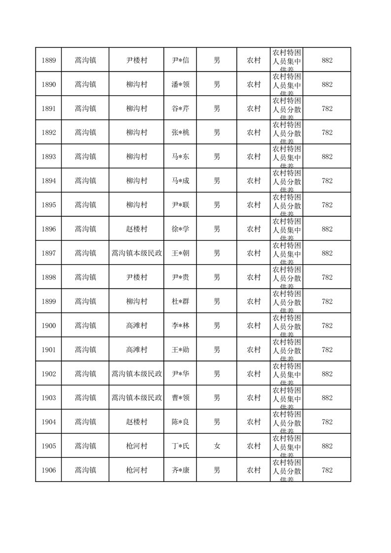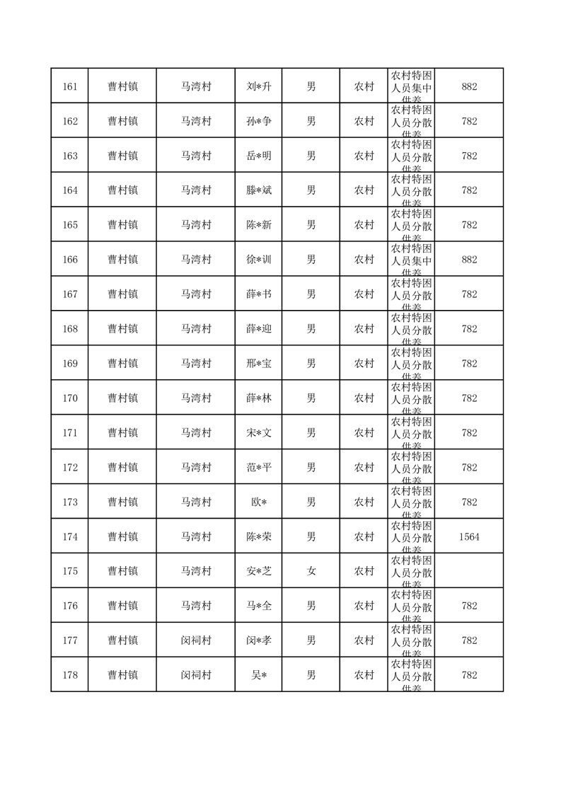 埇桥区2025年10月特困人员名单