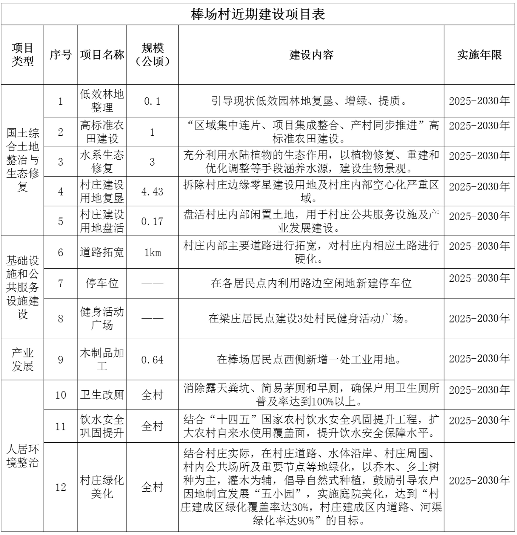 (3)近期建设项目(工程)表