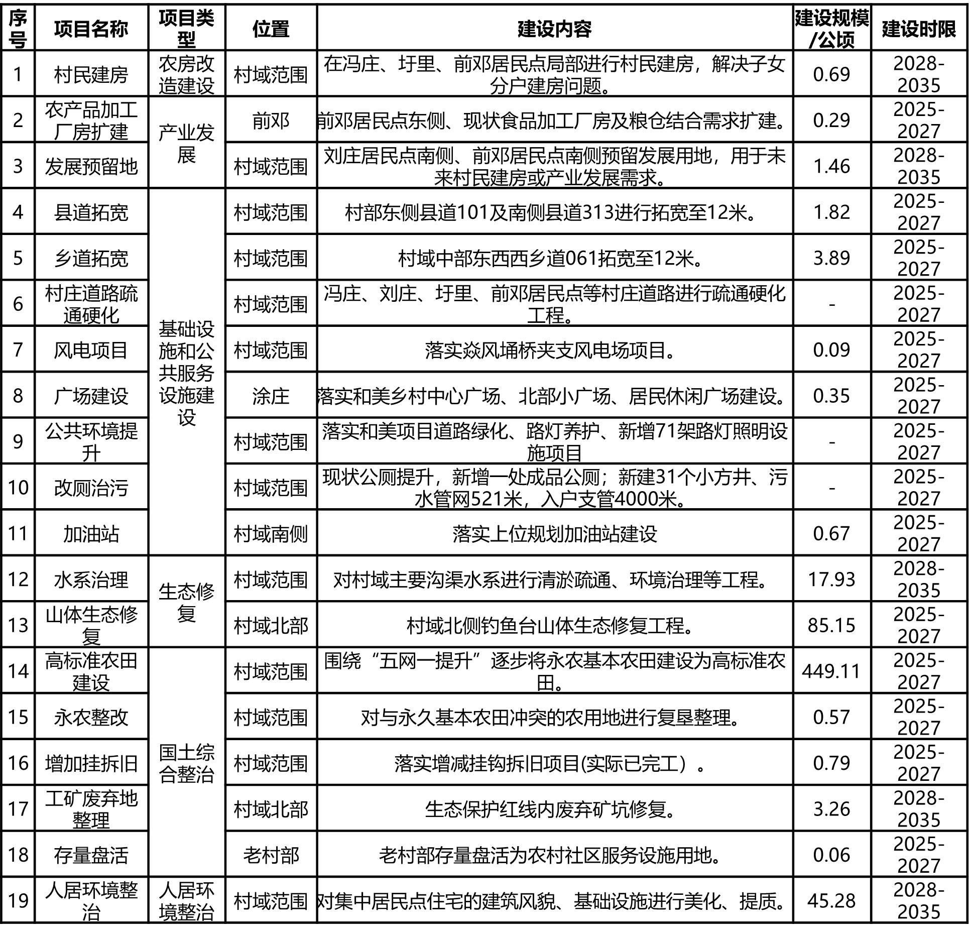 (3)近期建设项目(工程)表