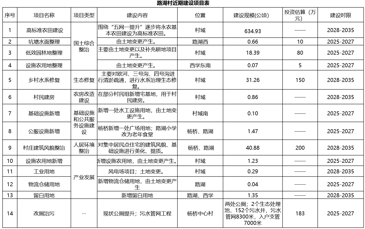 《宿州市埇桥区支河镇路湖村村庄规划(2021-2035年)》经过广泛调查论证、深化,目前已完成编制成果。根据《中华人民共和国城乡规划法》《“多规合一”实用性村庄规划编制规程》(安徽省地方标准DB34/T 4985-2025)等要求,为切实增强规划的合理性、可行性和科学性,现依法组织《宿州市埇桥区支河镇路湖村村庄规划(2021-2035年)》批前公示,公示期间有关单位和个人对该方案如有意见或建议,请于公示期内反馈,以便进一步修改完善,逾期未反馈,视为无意见。