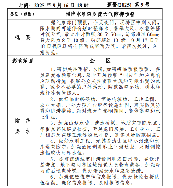 强降水和强对流天气防御预警