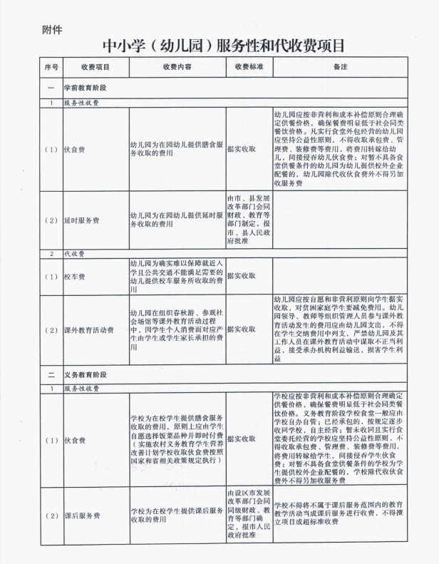 中小学(幼儿园)服务性和代收费项目