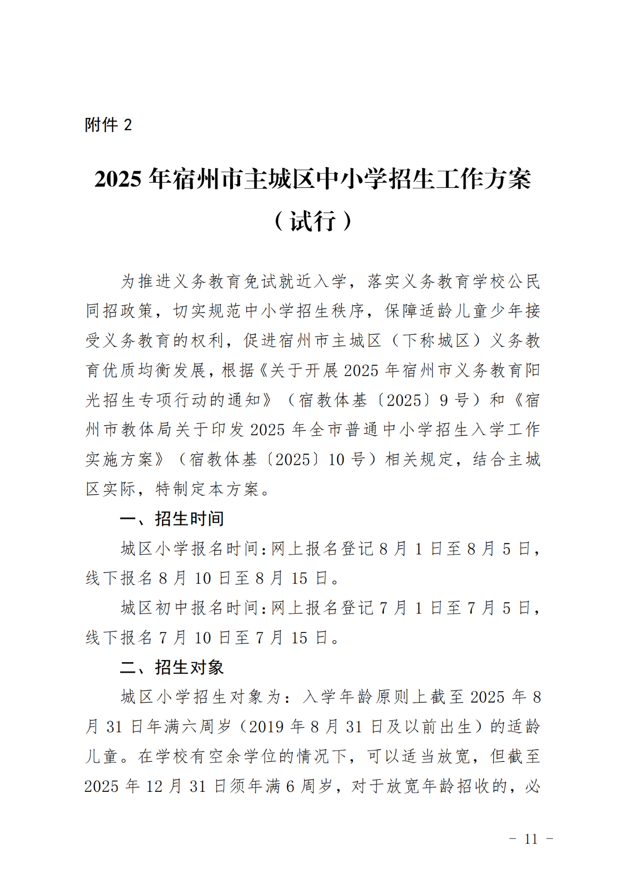 2025年宿州市主城区中小学招生工作方案(试行)