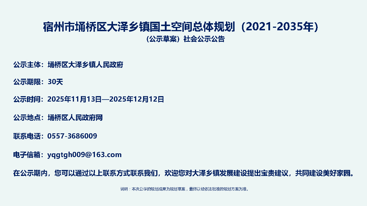 宿州市埇桥区大泽乡镇国土空间总体规划(2021-2035年)--批前公示