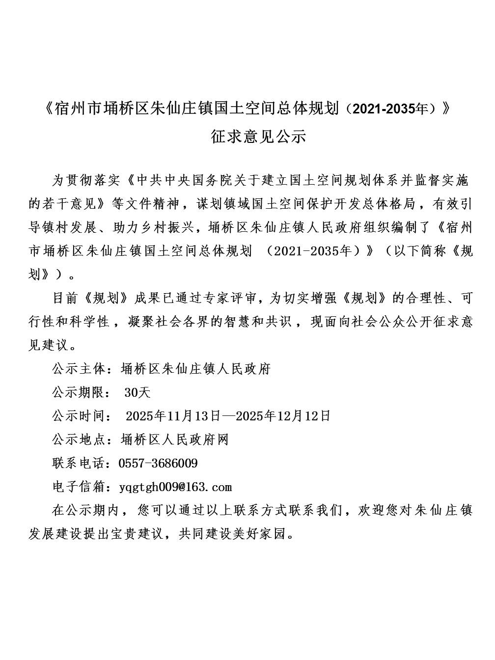 宿州市埇桥区朱仙庄镇国土空间总体规划(2021-2035年)--批前公示