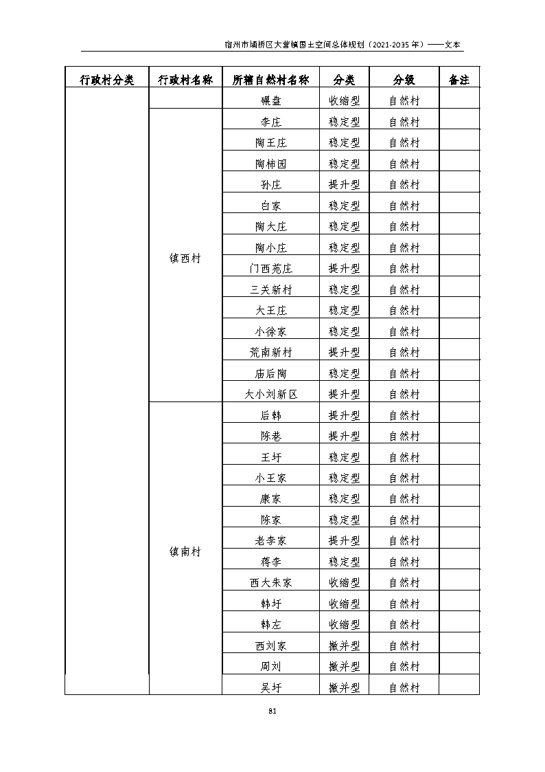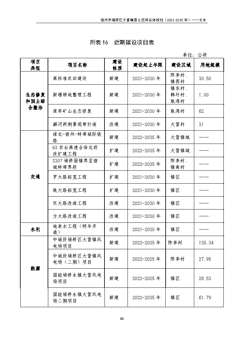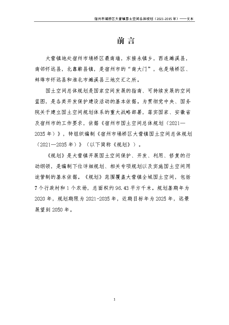 宿州市埇桥区大营镇国土空间总体规划(2021-2035年)--批前公示