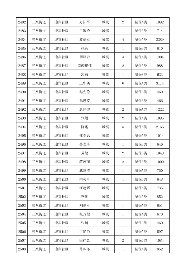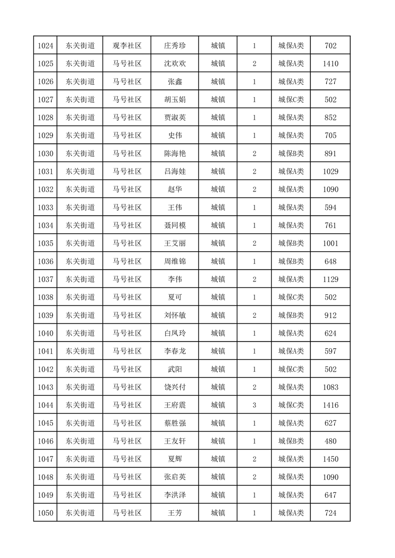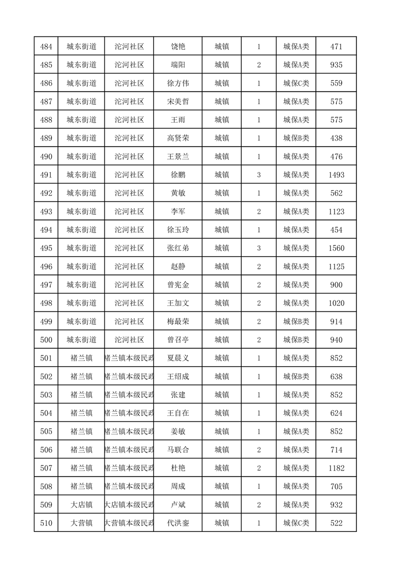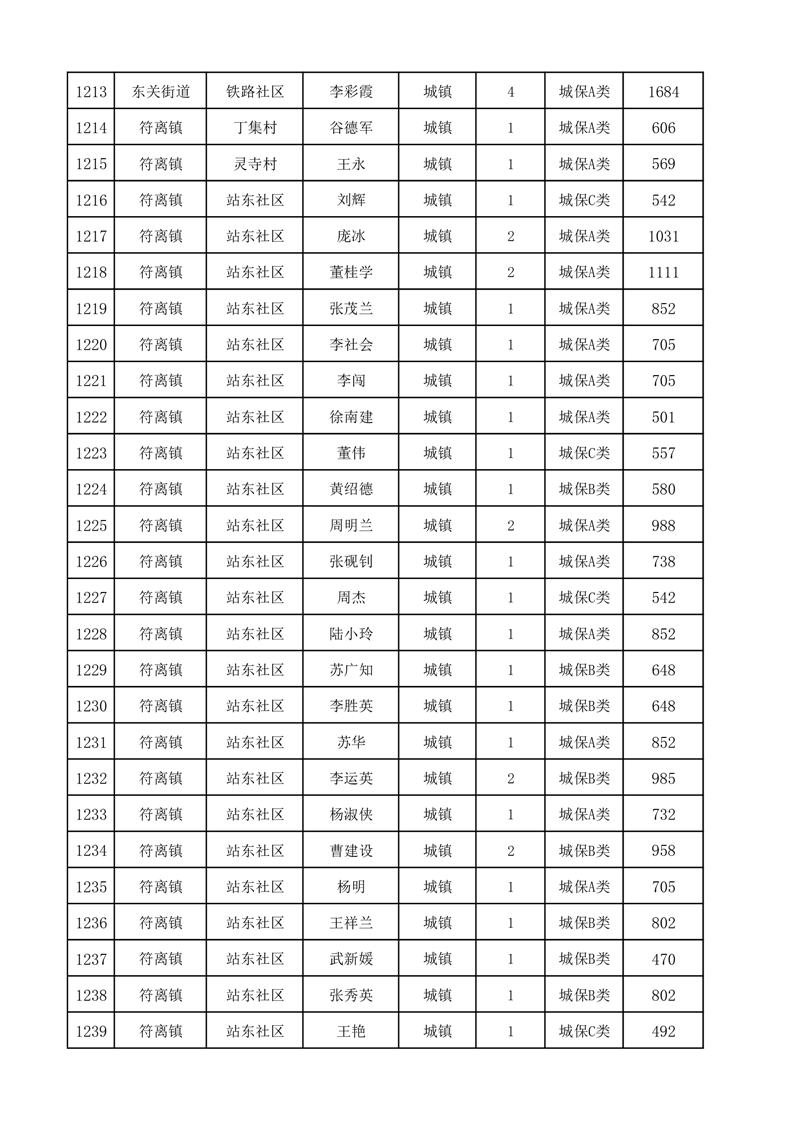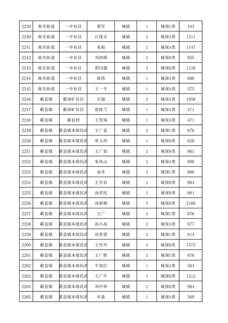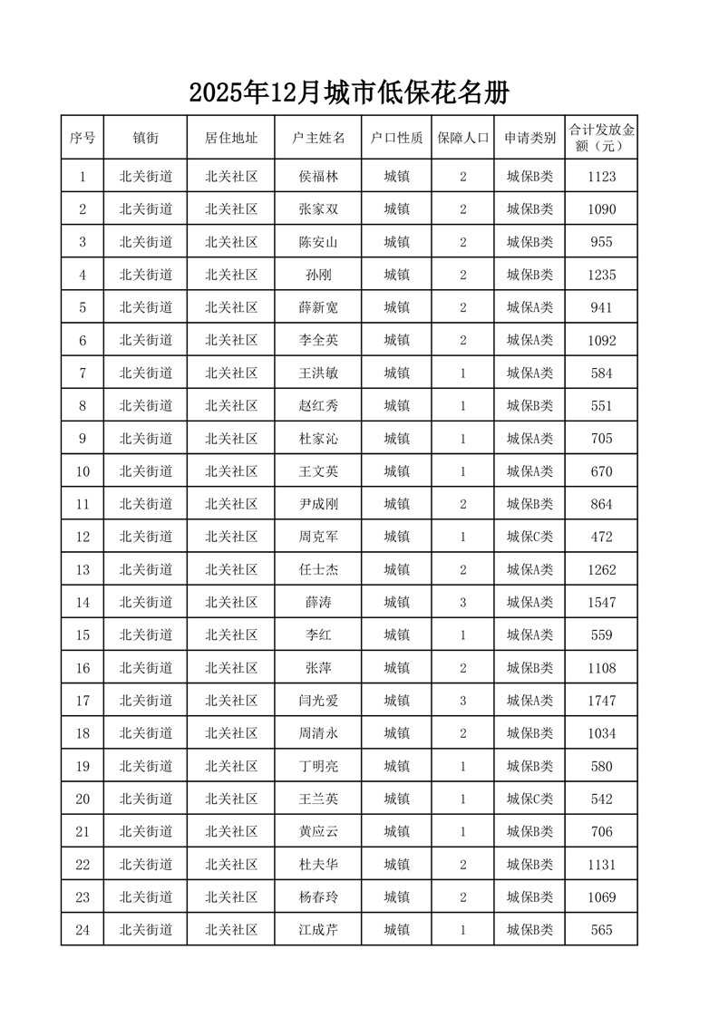 埇桥区2025年12月份城镇低保花名册