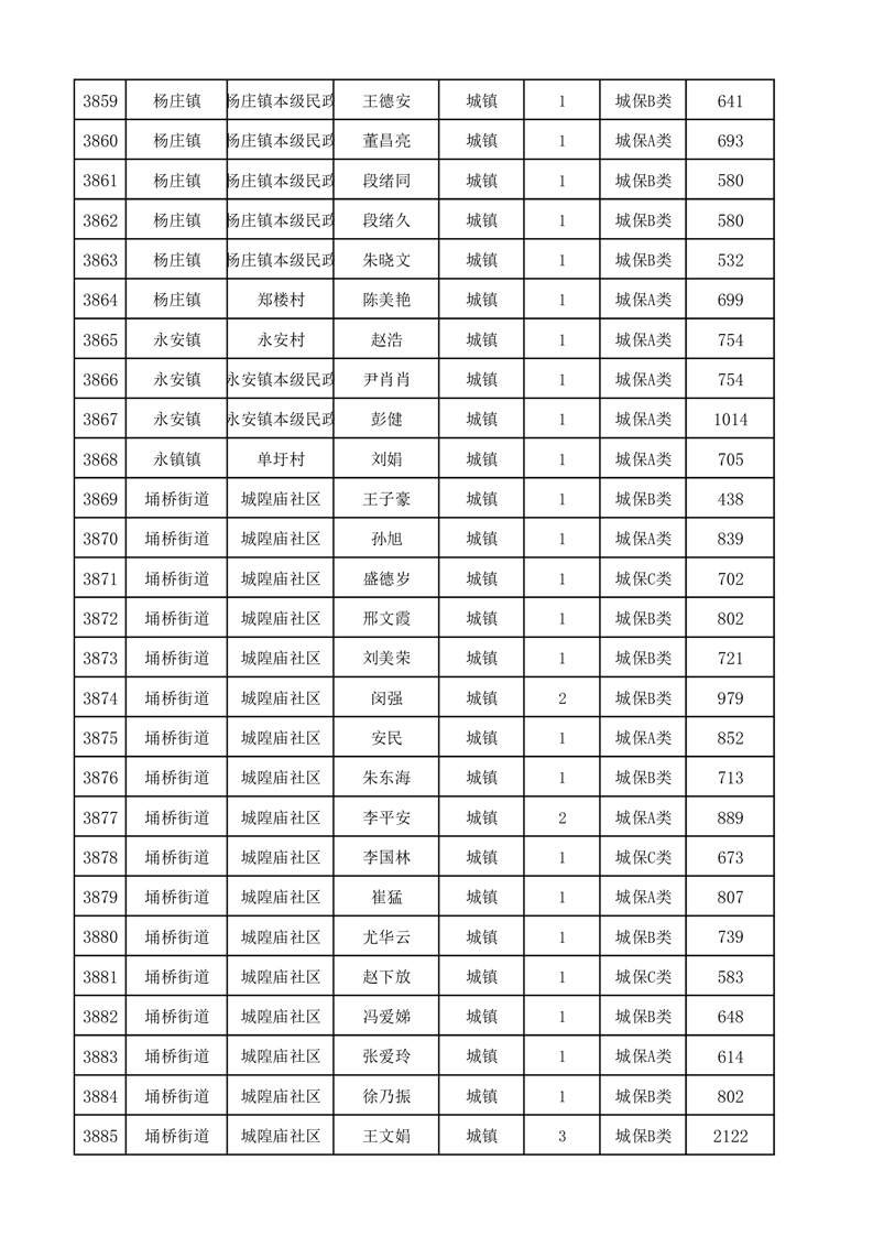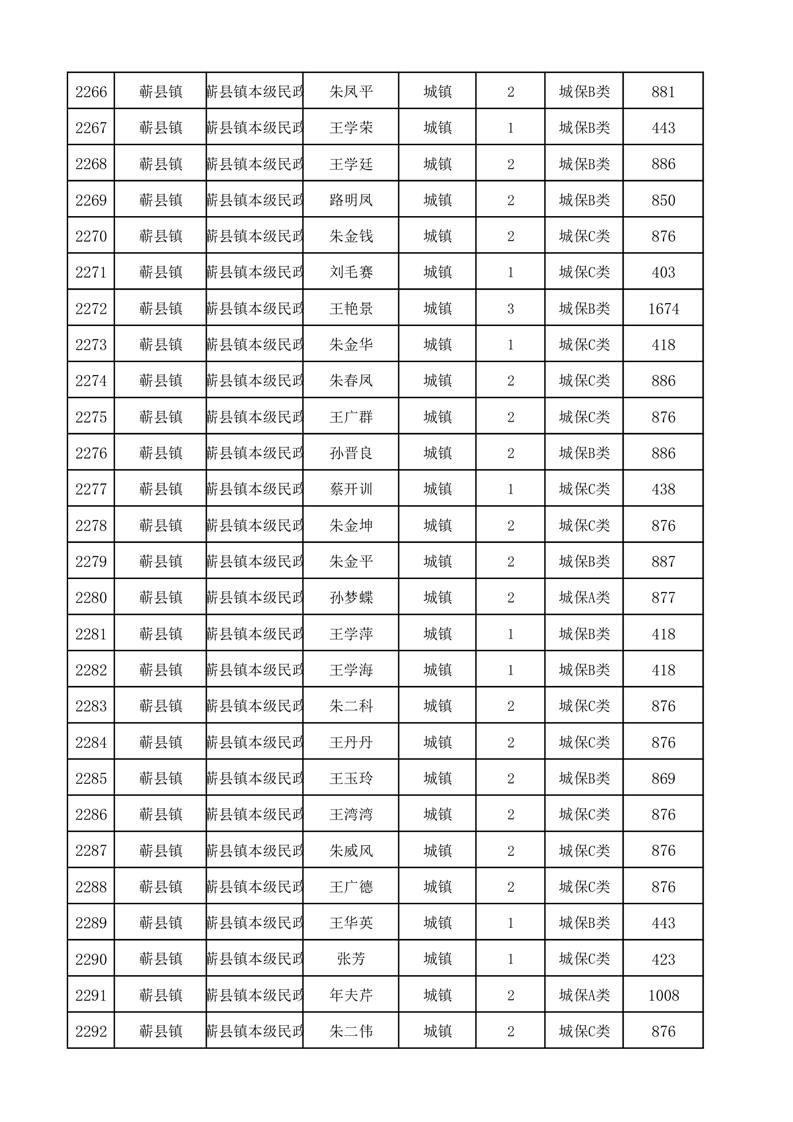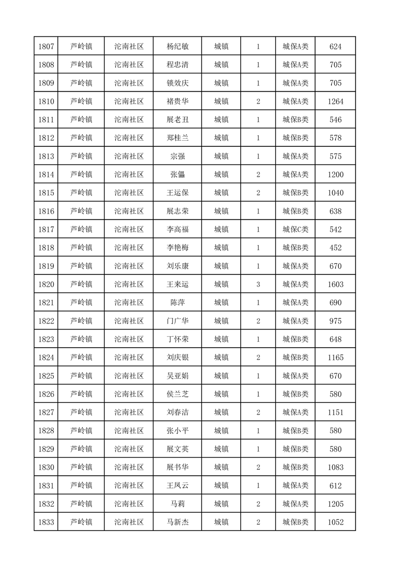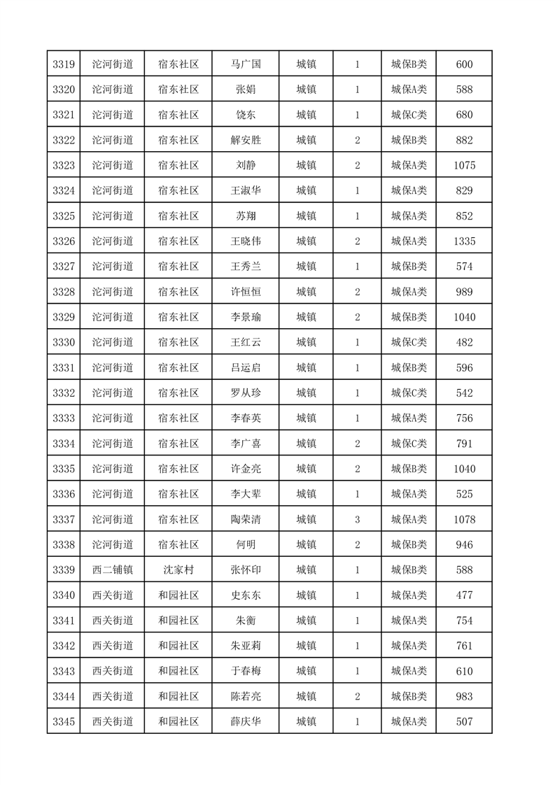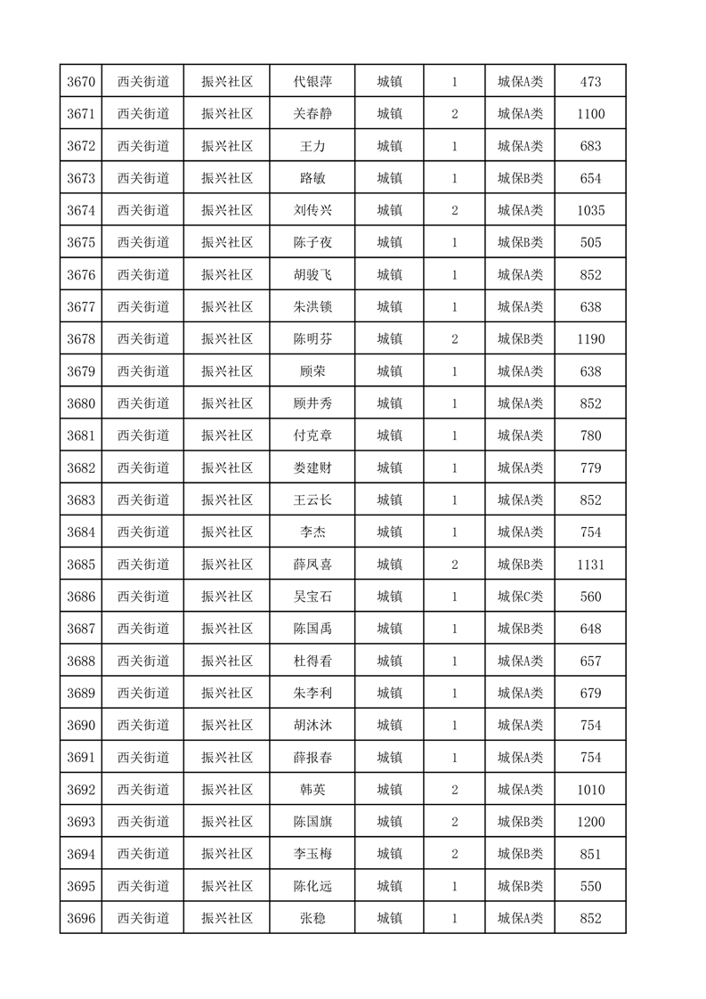 埇桥区2025年12月份城镇低保花名册