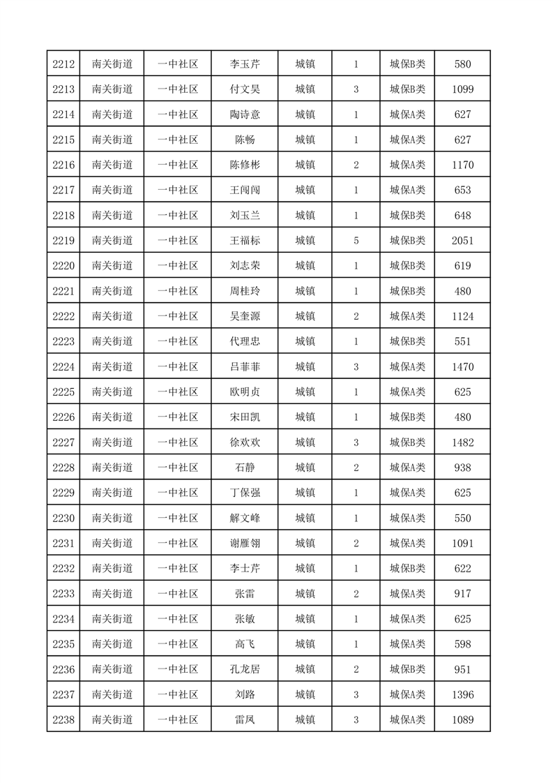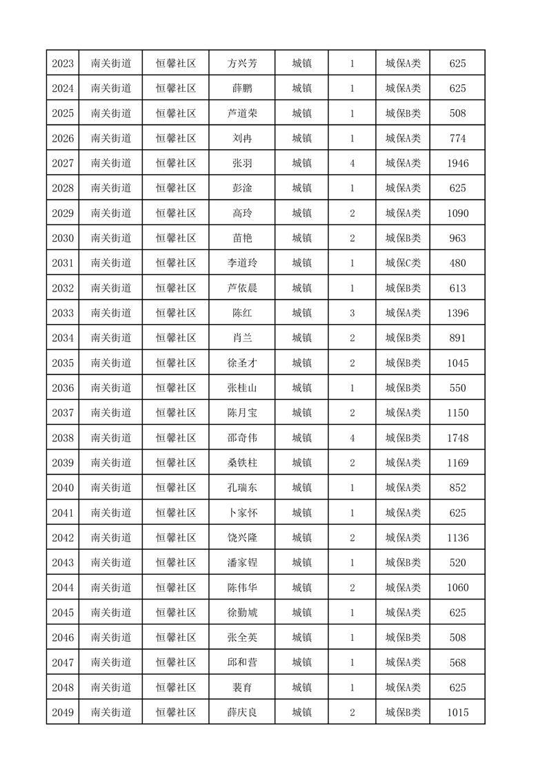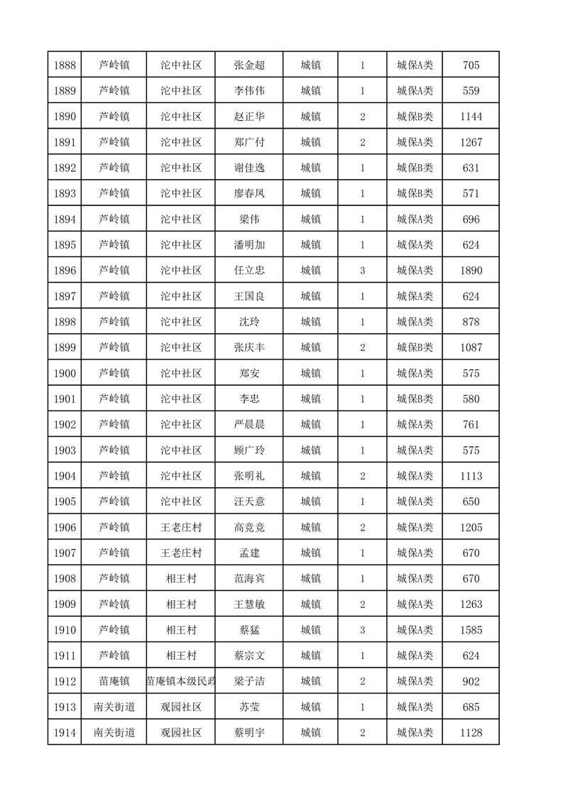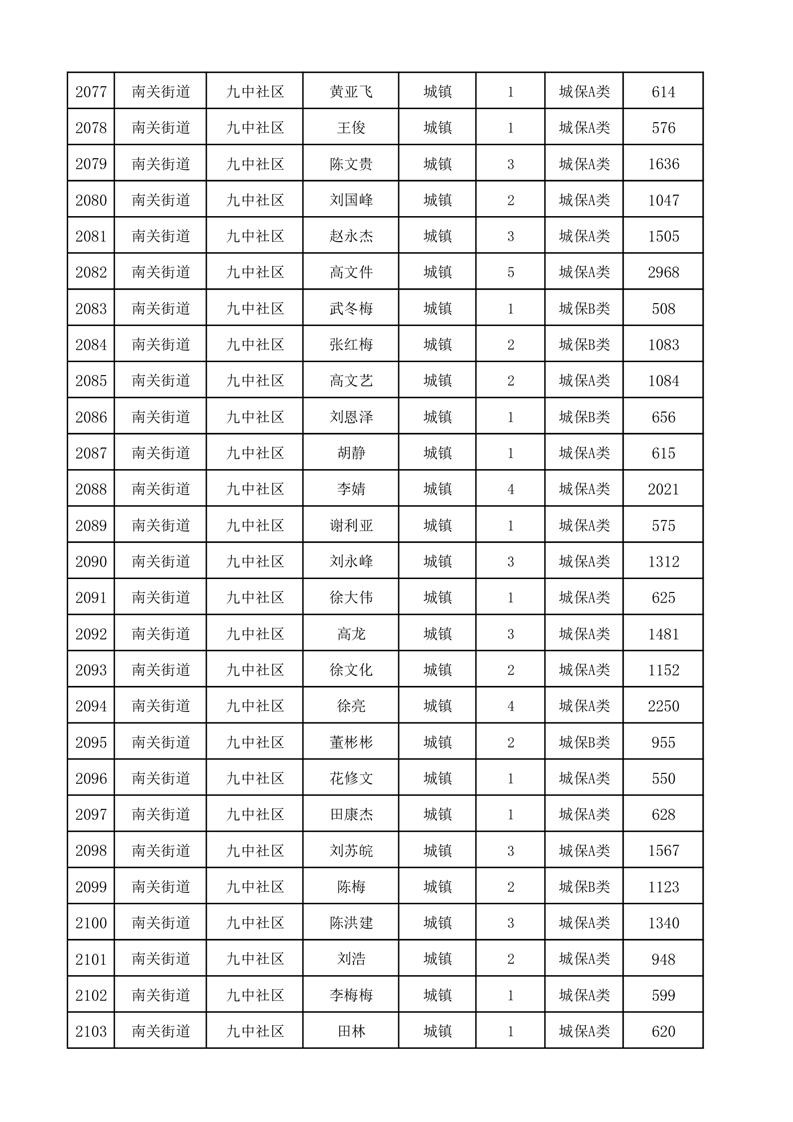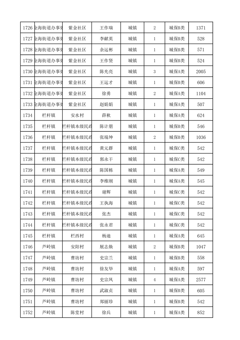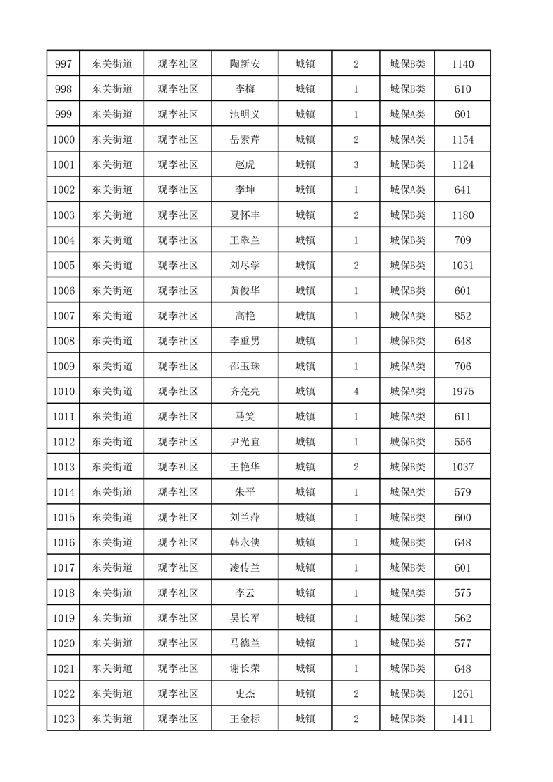 埇桥区2025年12月份城镇低保花名册