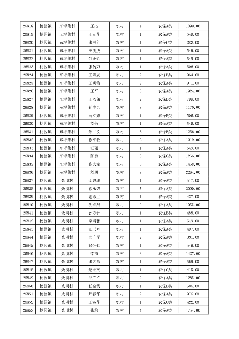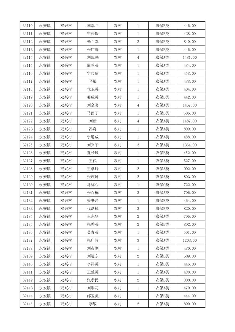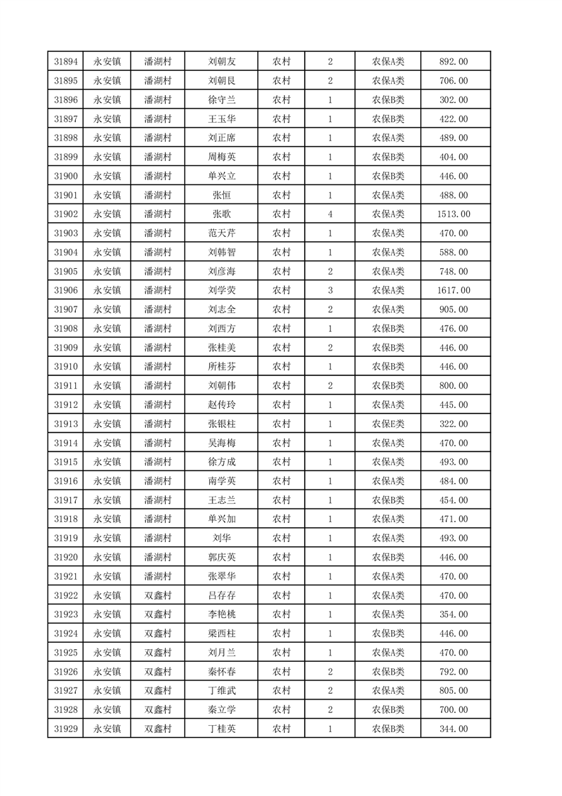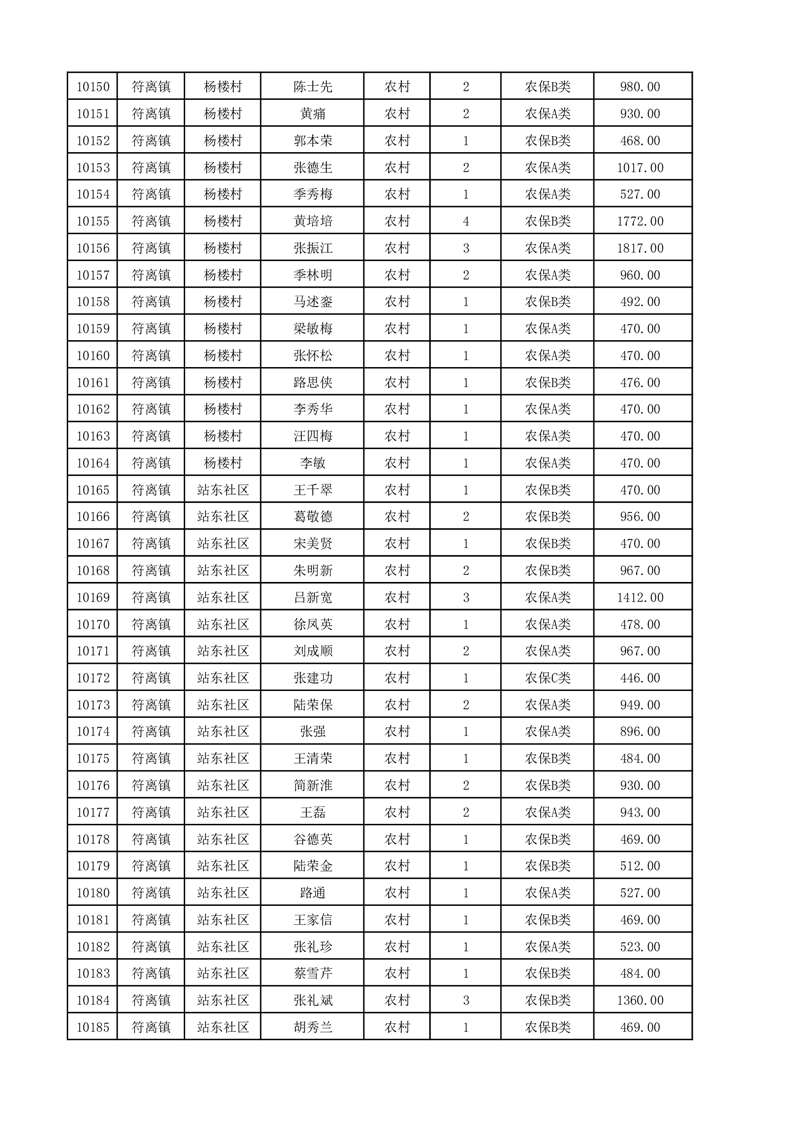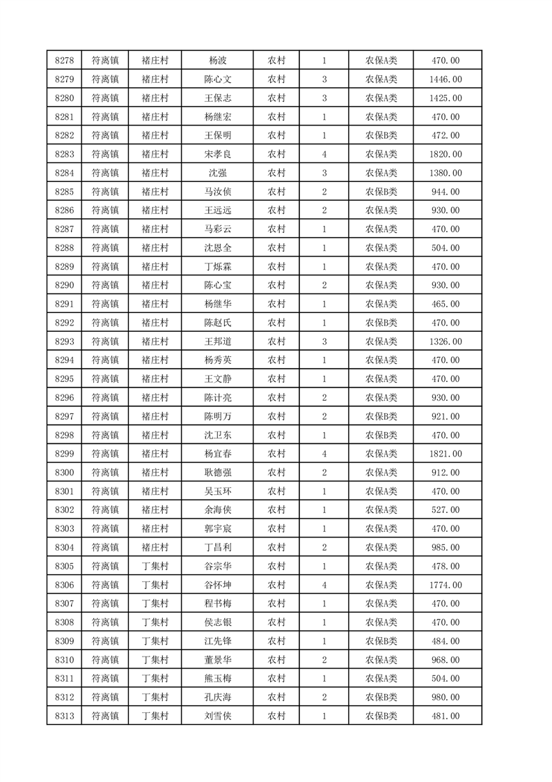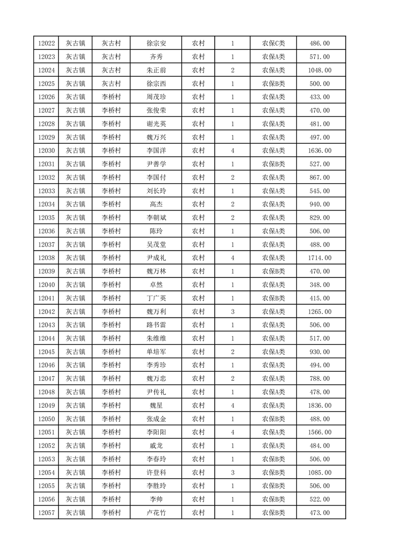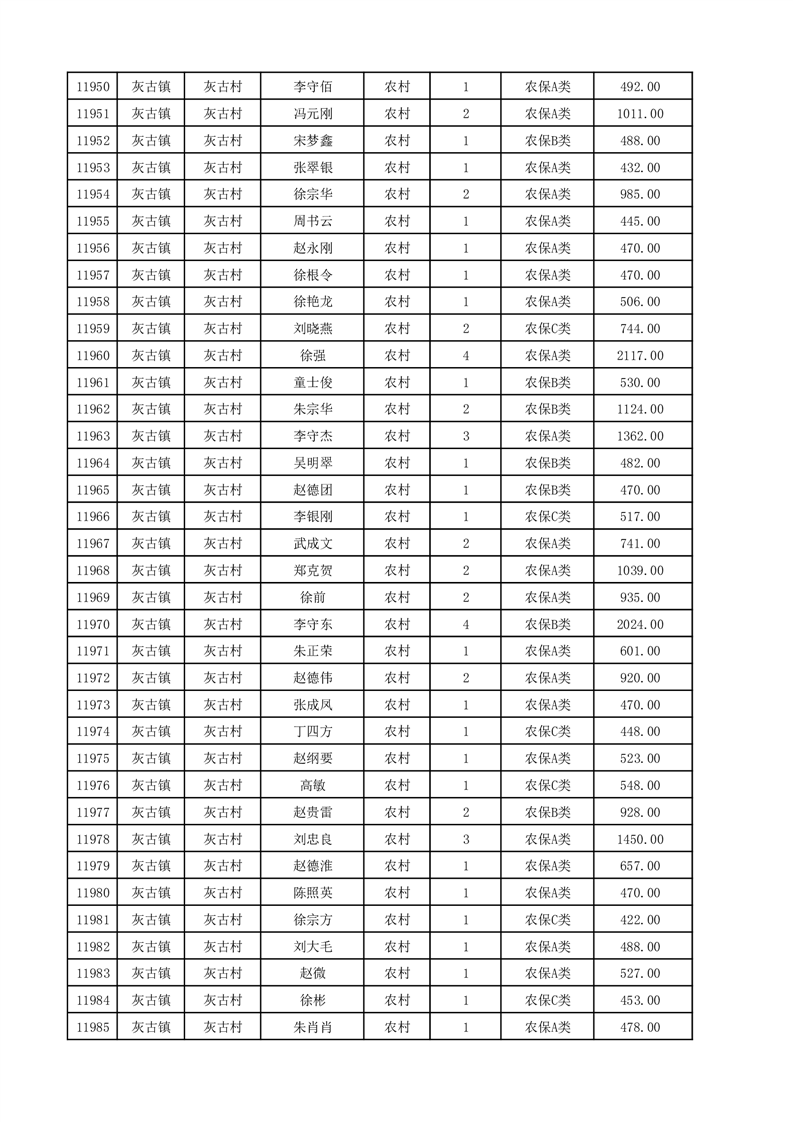 埇桥区2025年12月份农村低保花名册