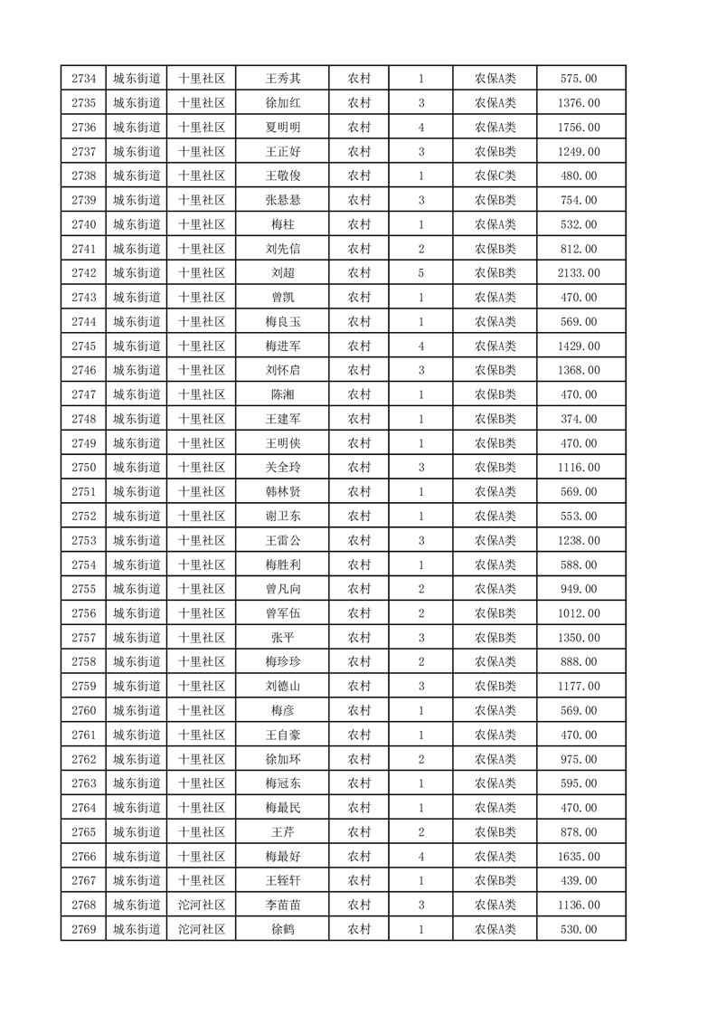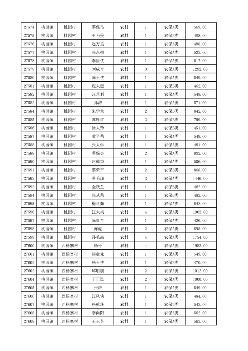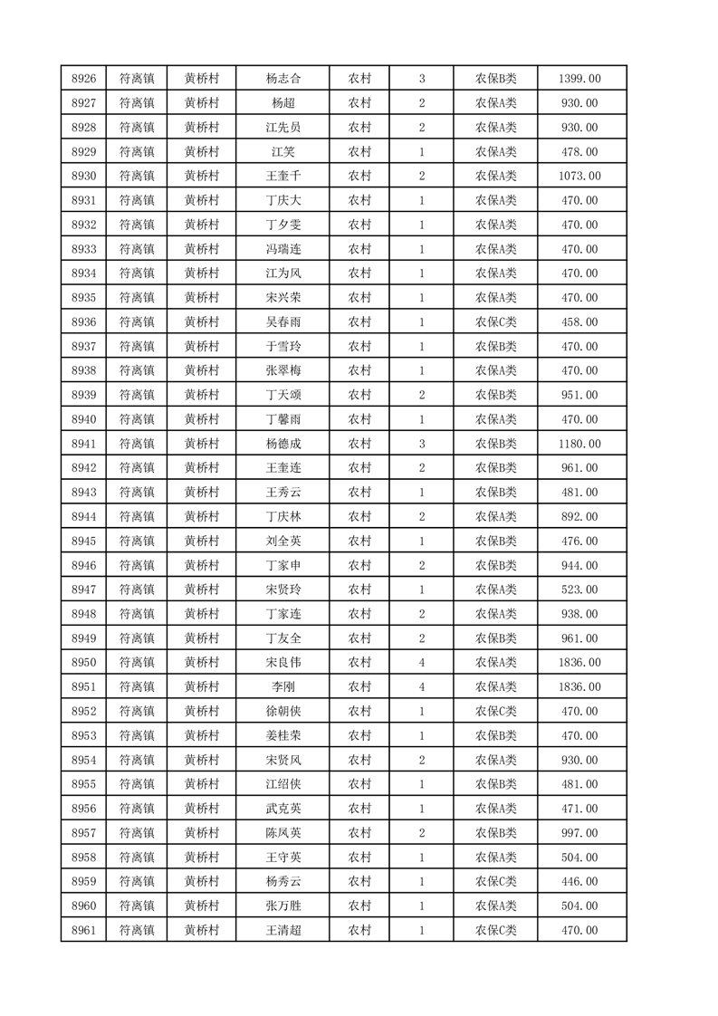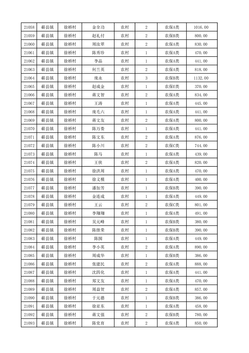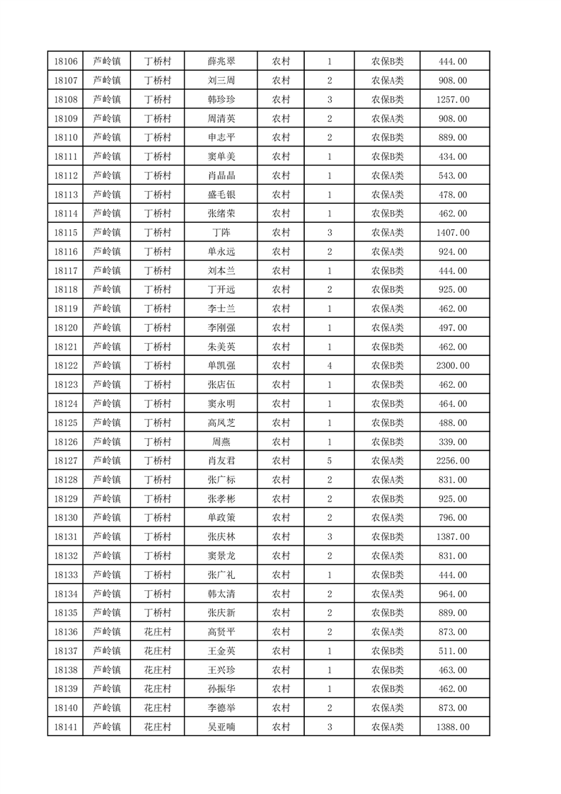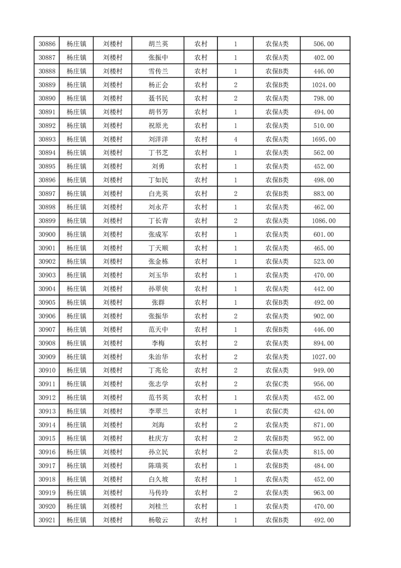 埇桥区2025年12月份农村低保花名册