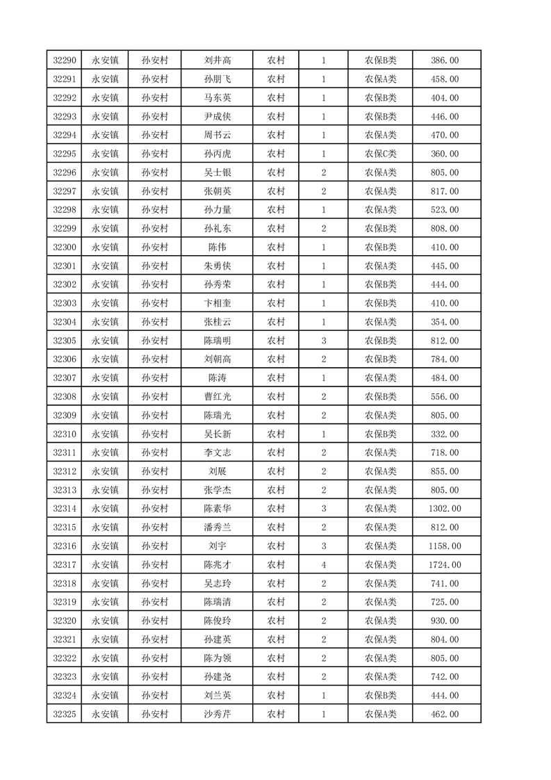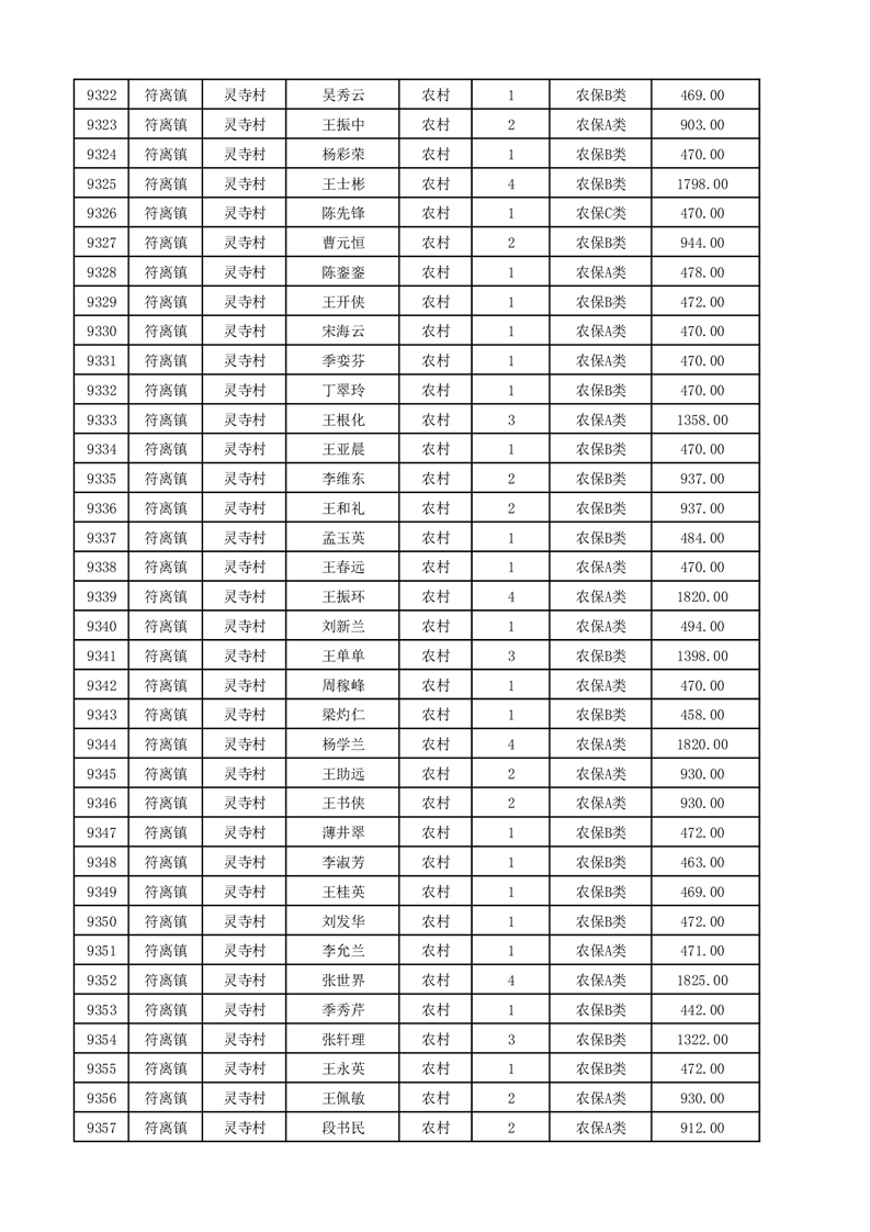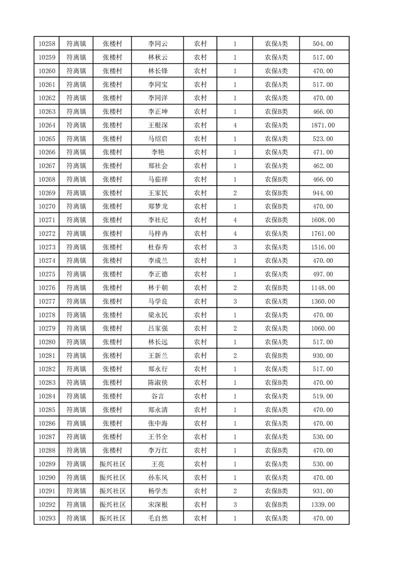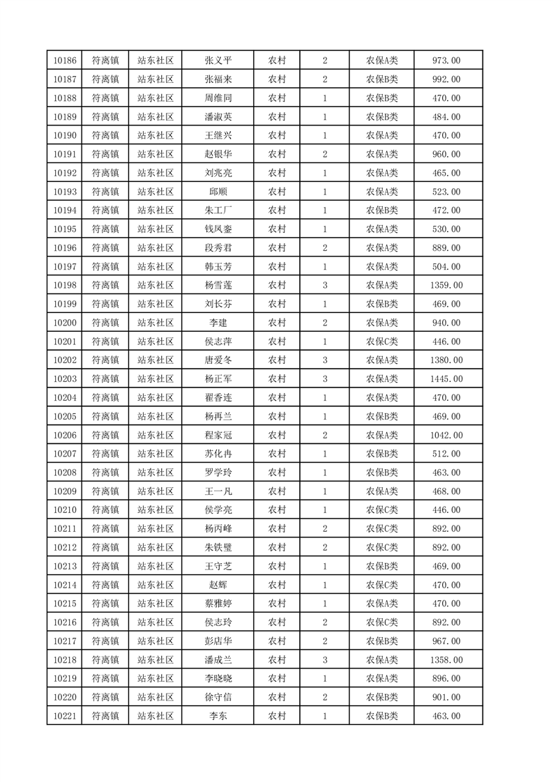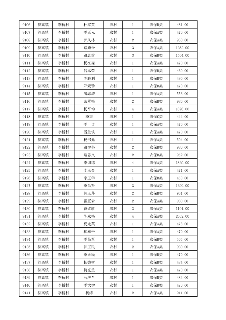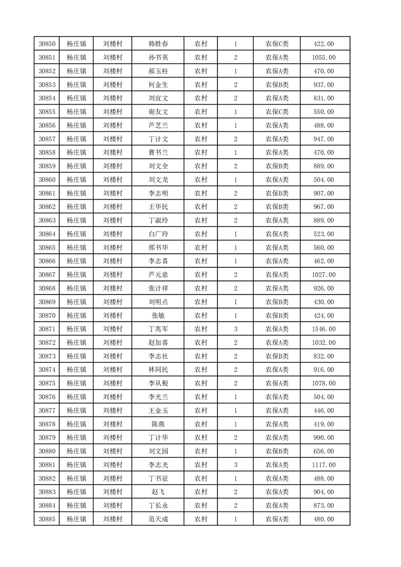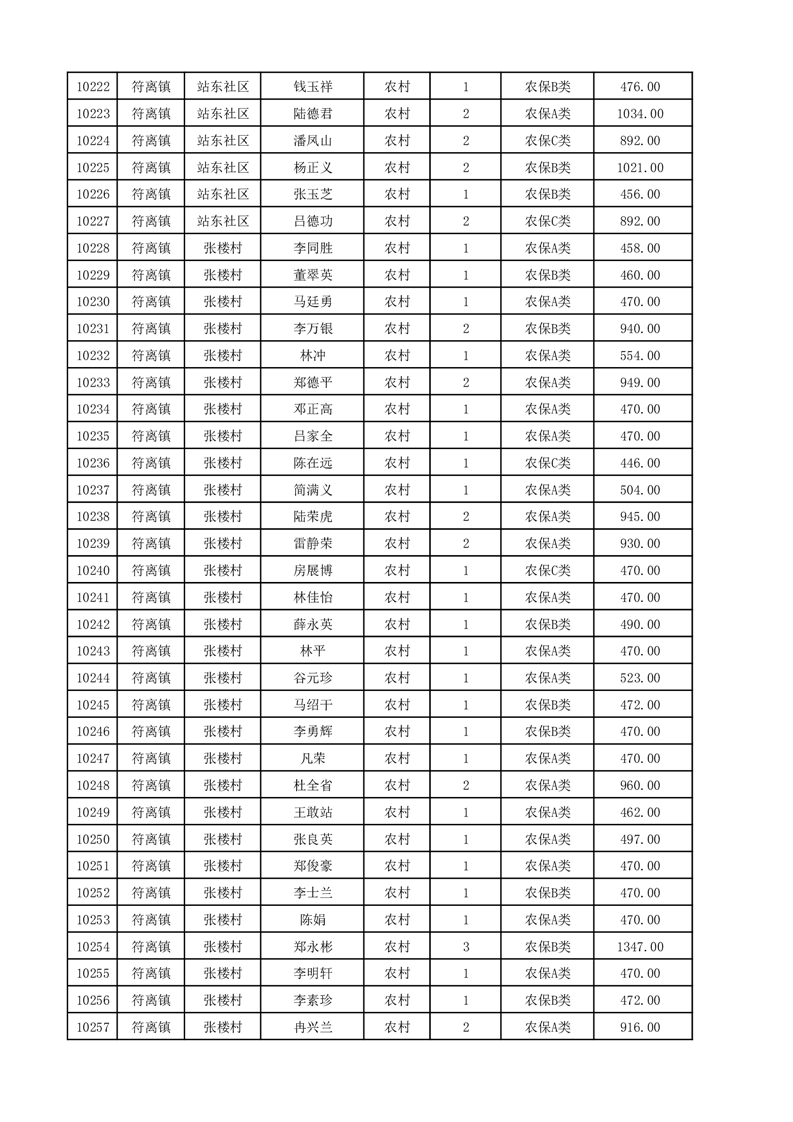 埇桥区2025年12月份农村低保花名册