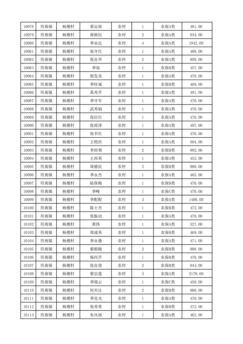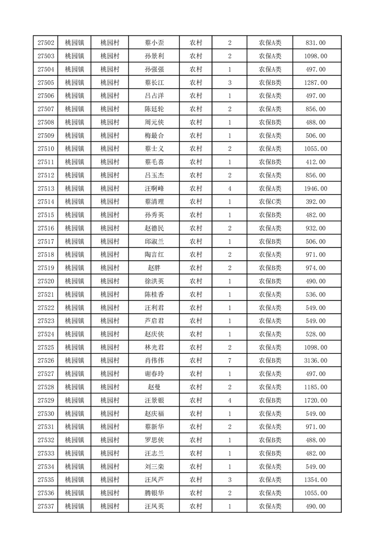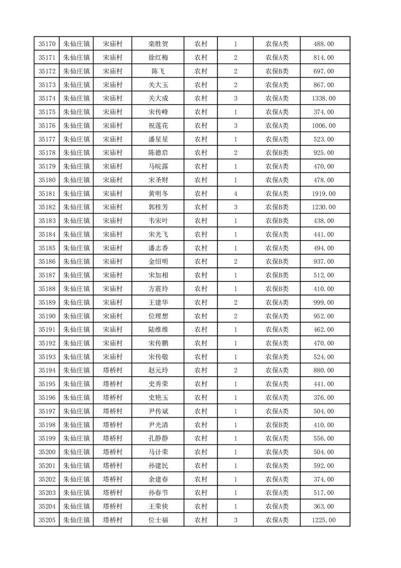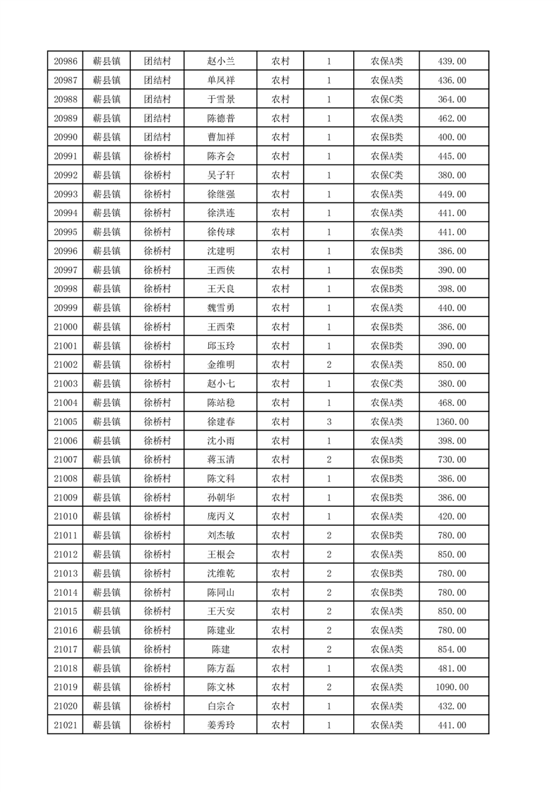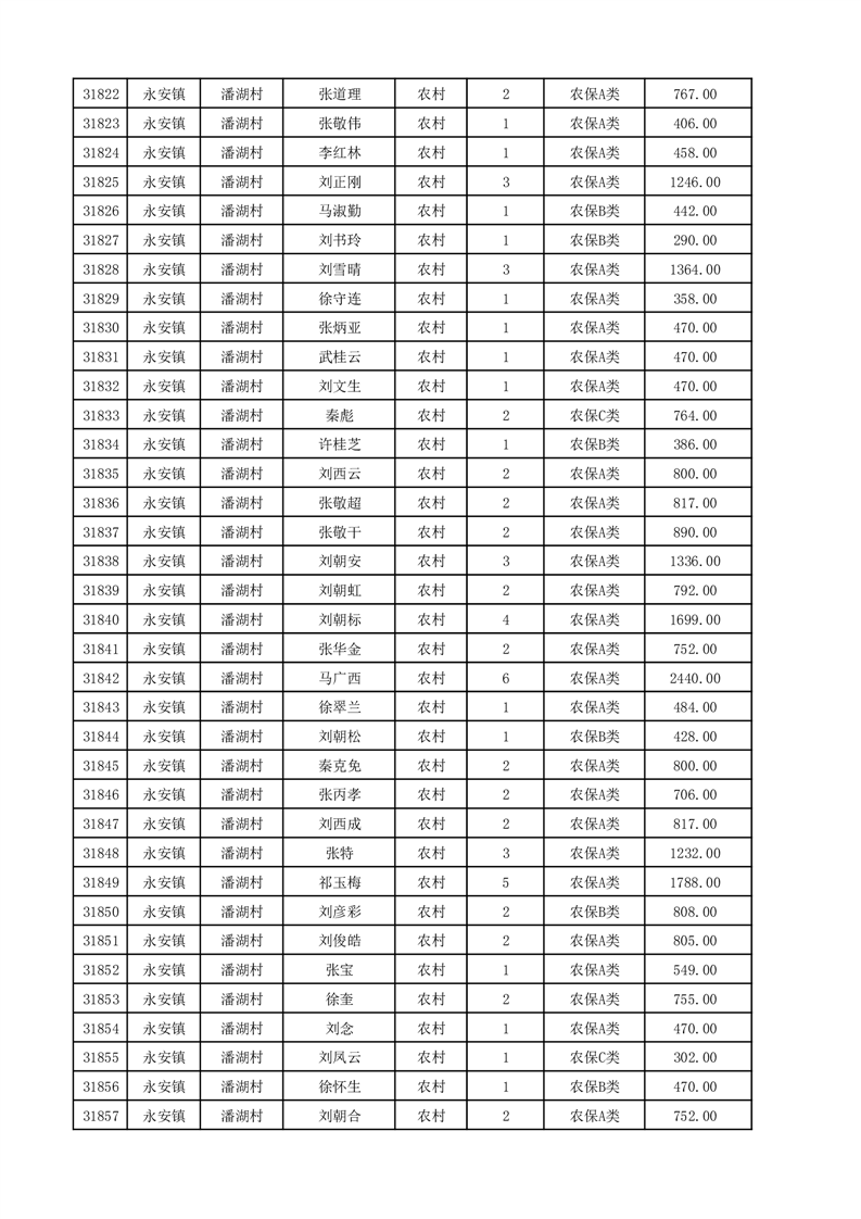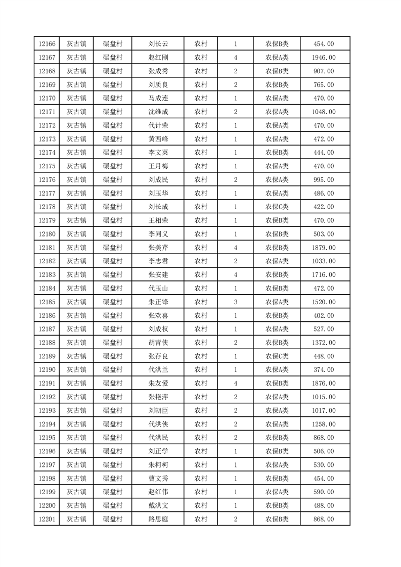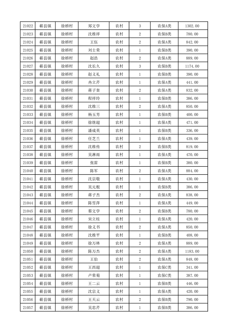 埇桥区2025年12月份农村低保花名册