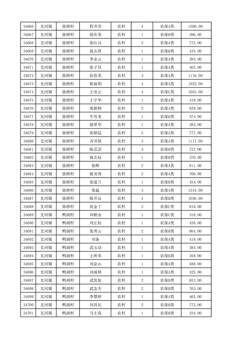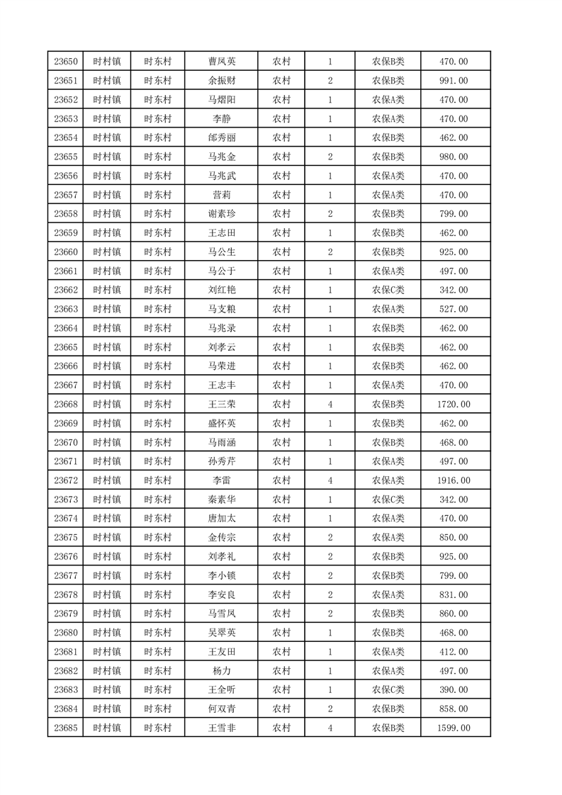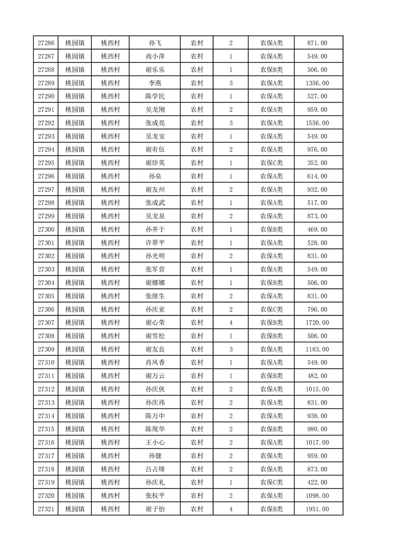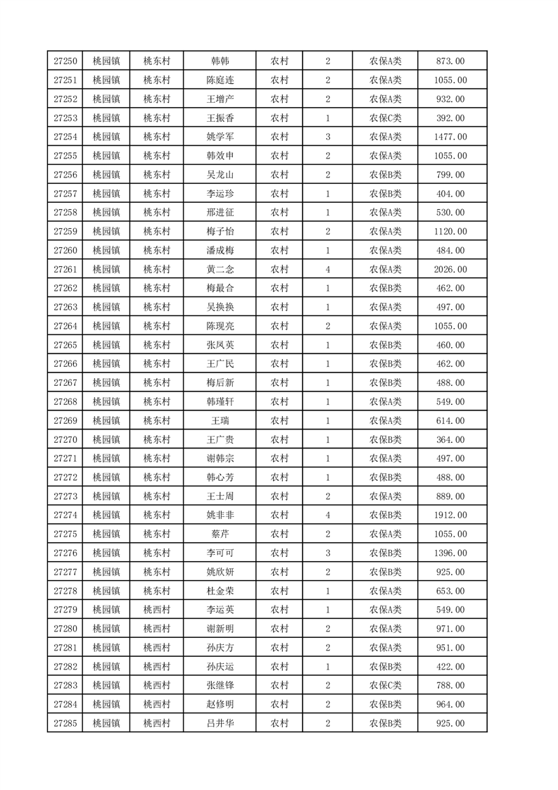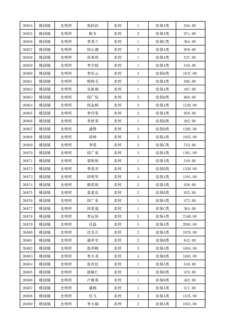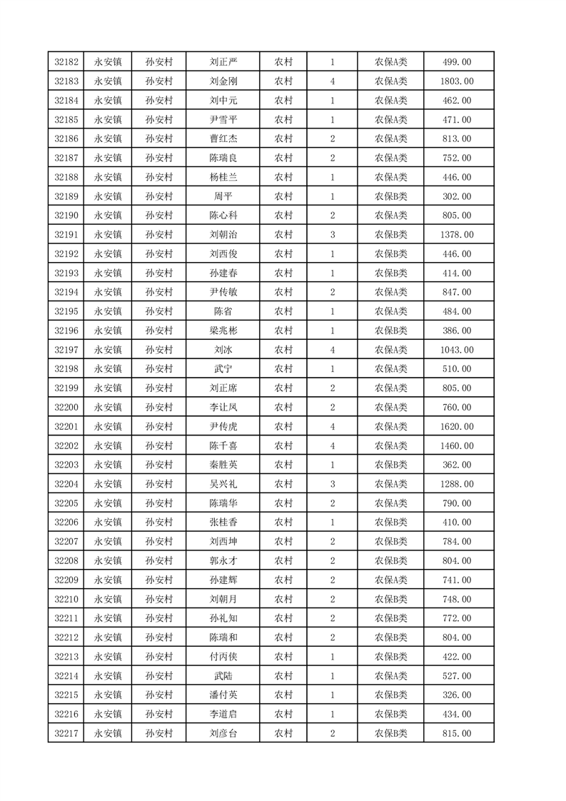 埇桥区2025年12月份农村低保花名册