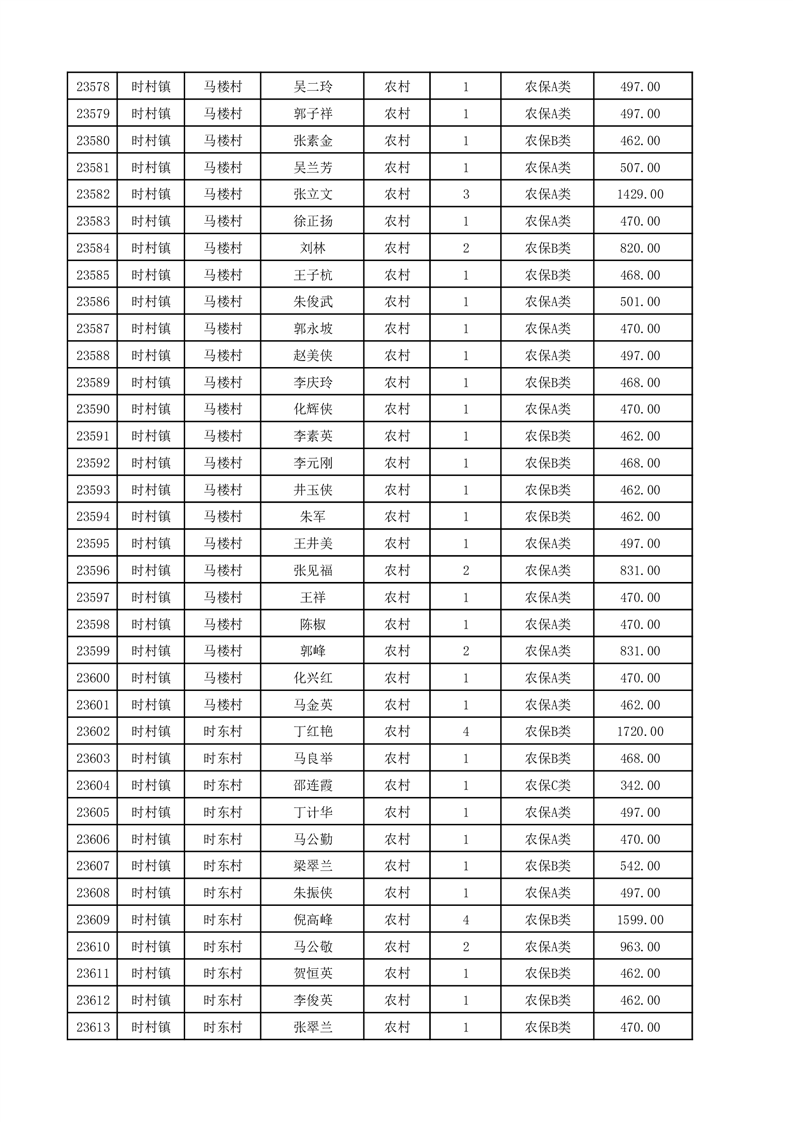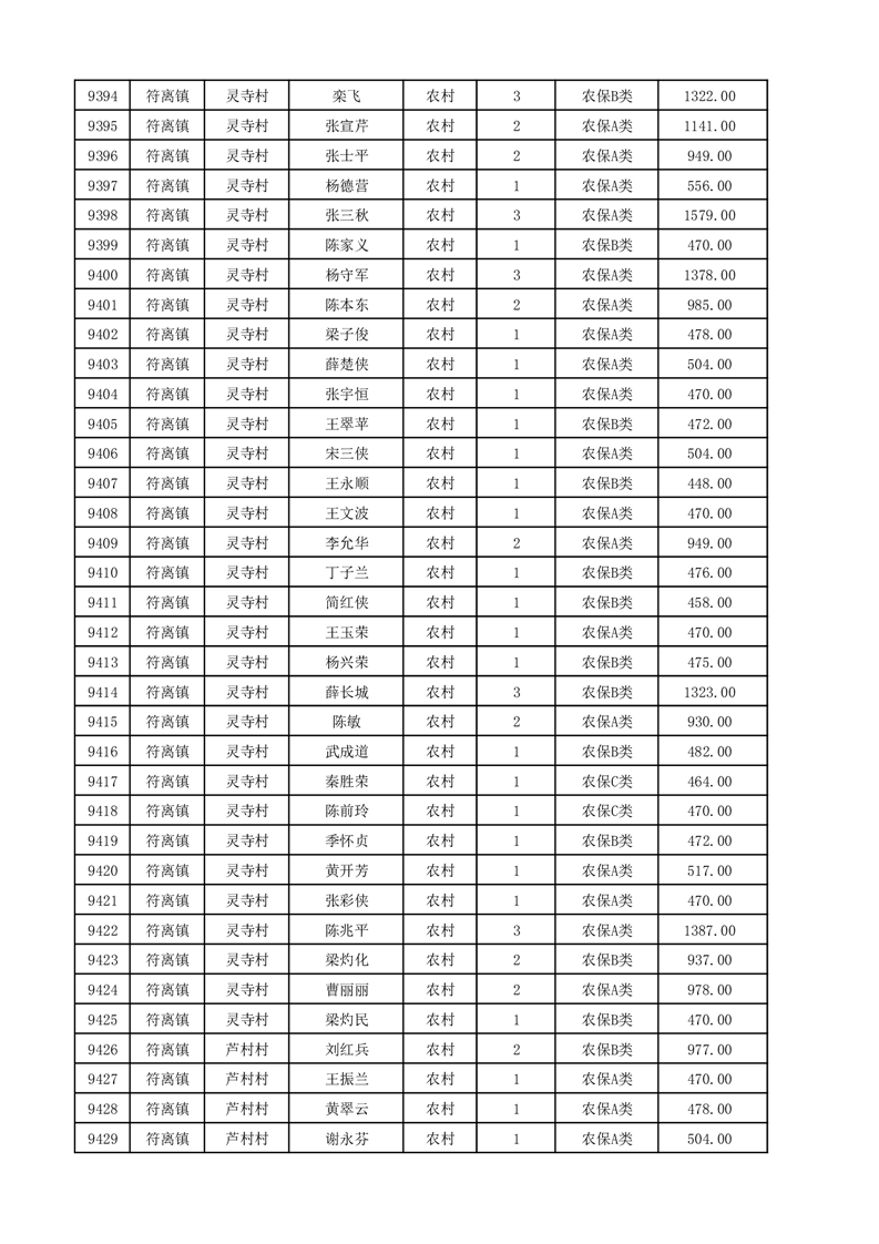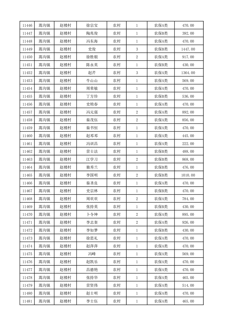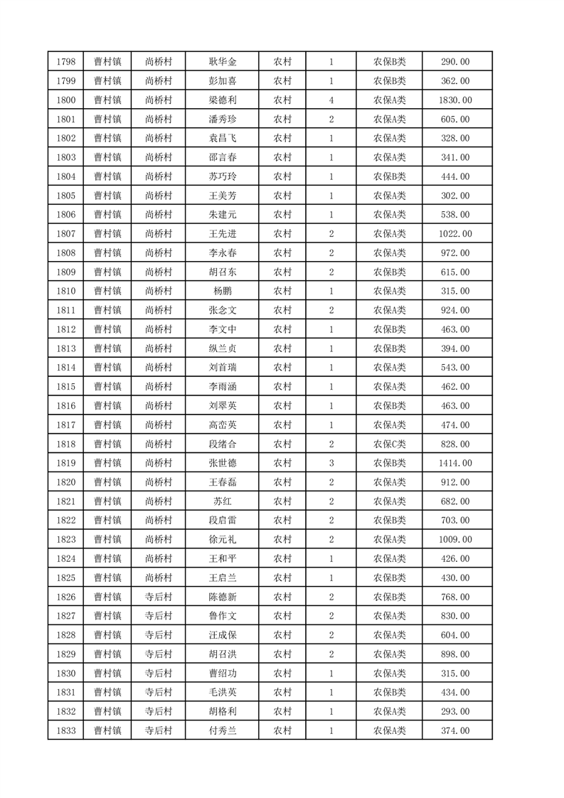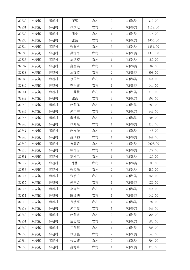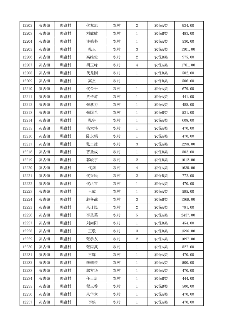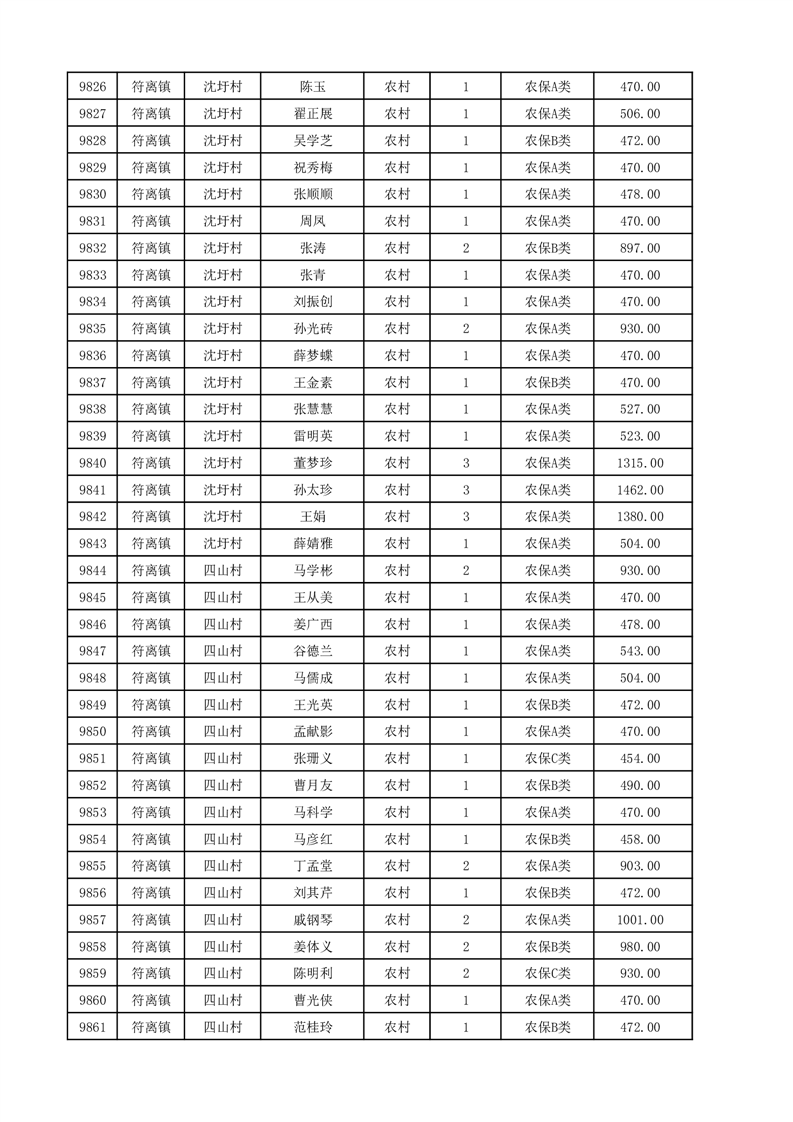 埇桥区2025年12月份农村低保花名册