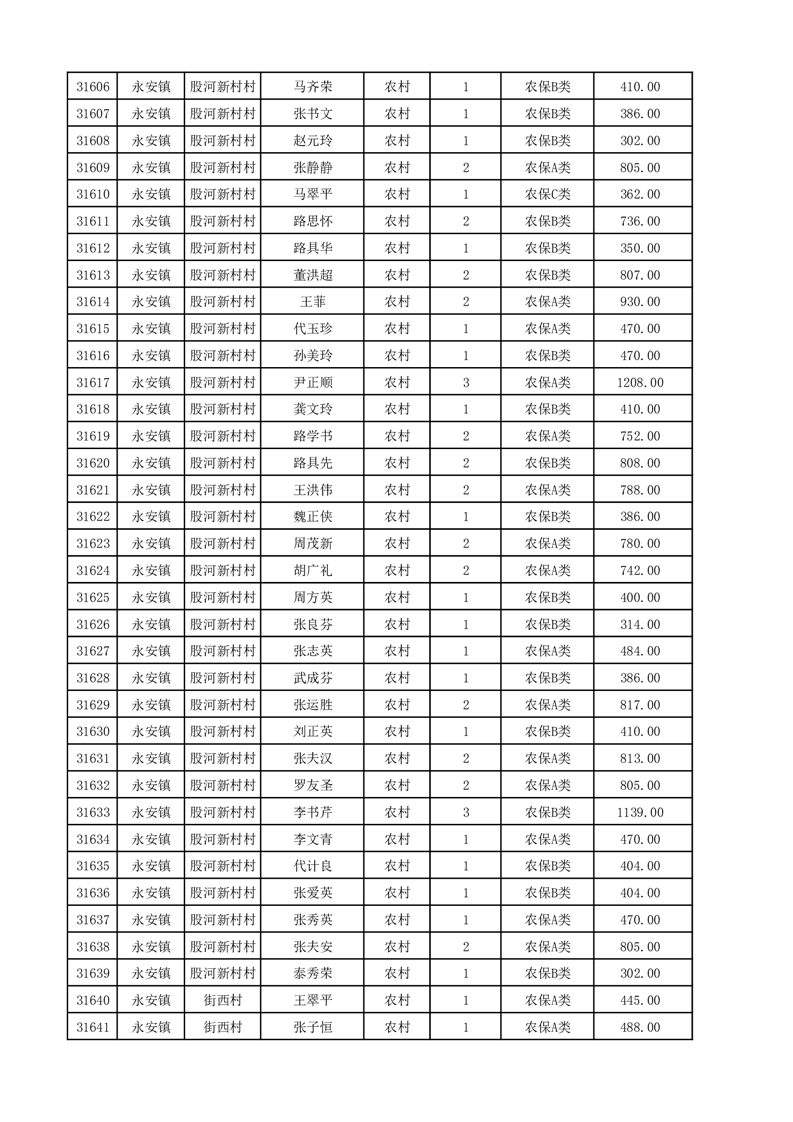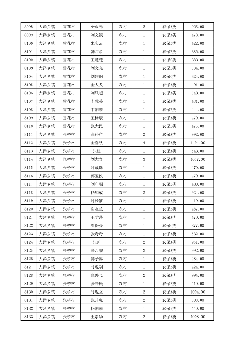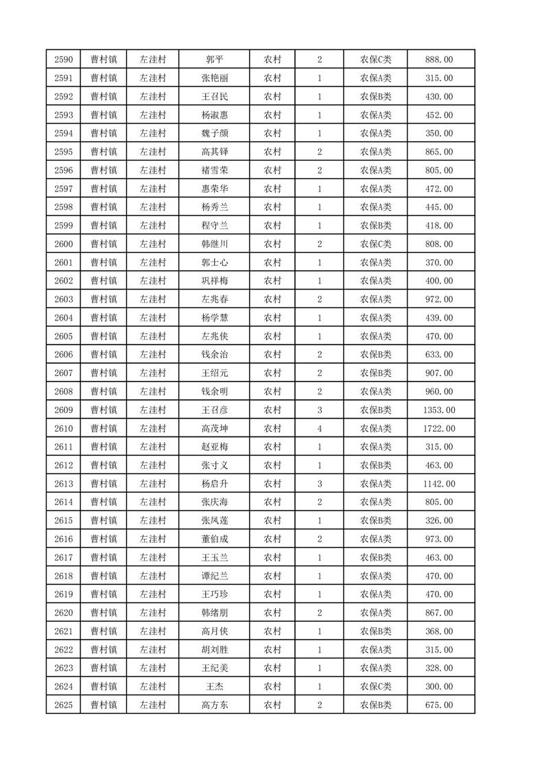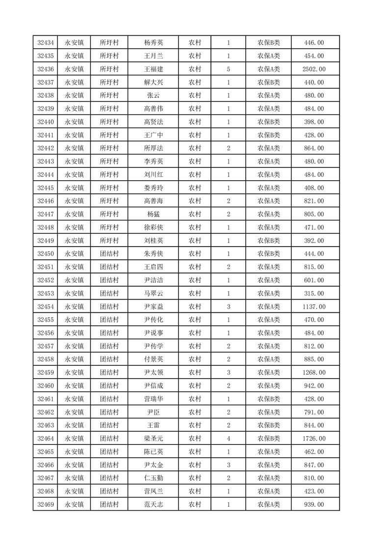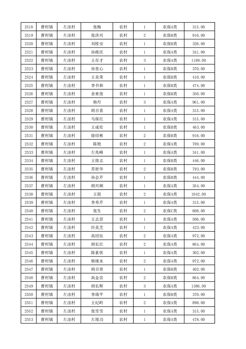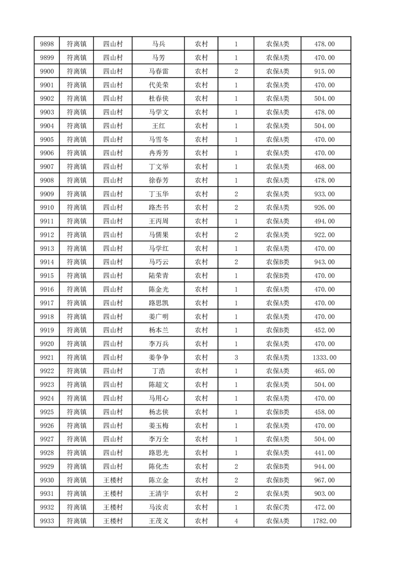 埇桥区2025年12月份农村低保花名册