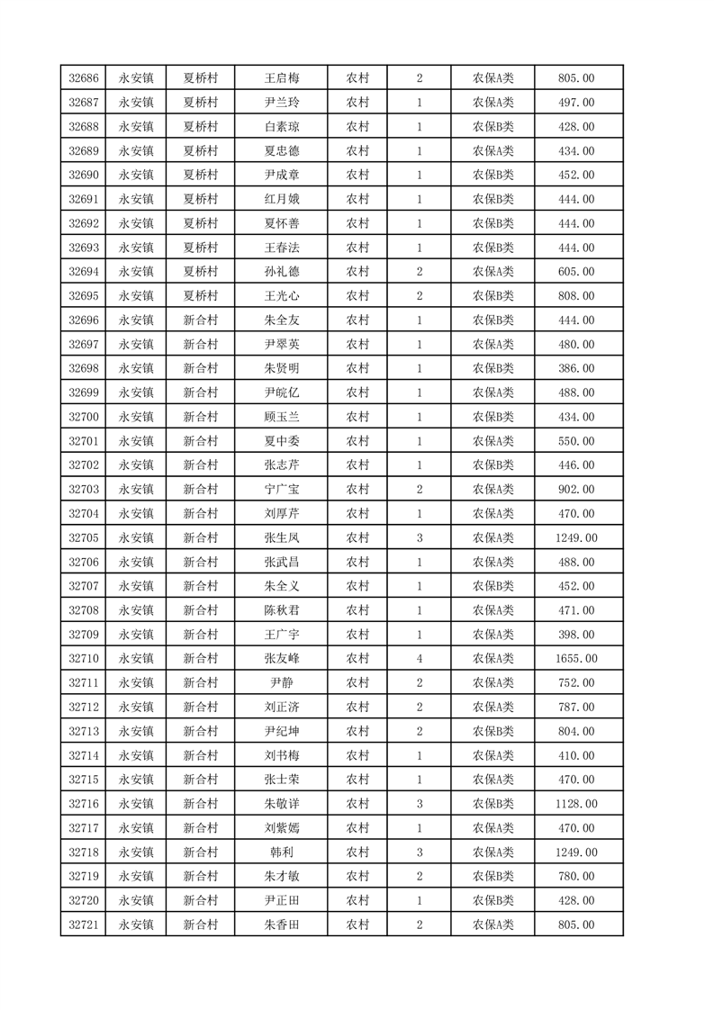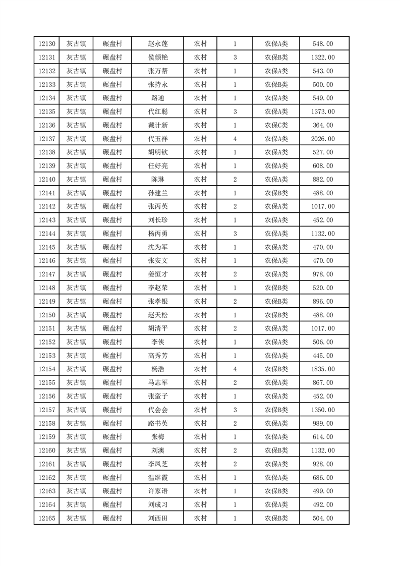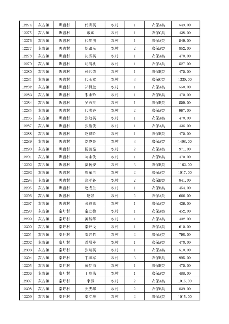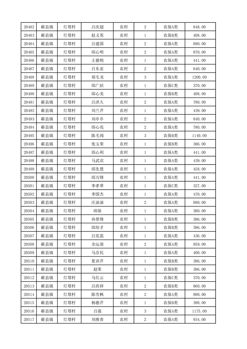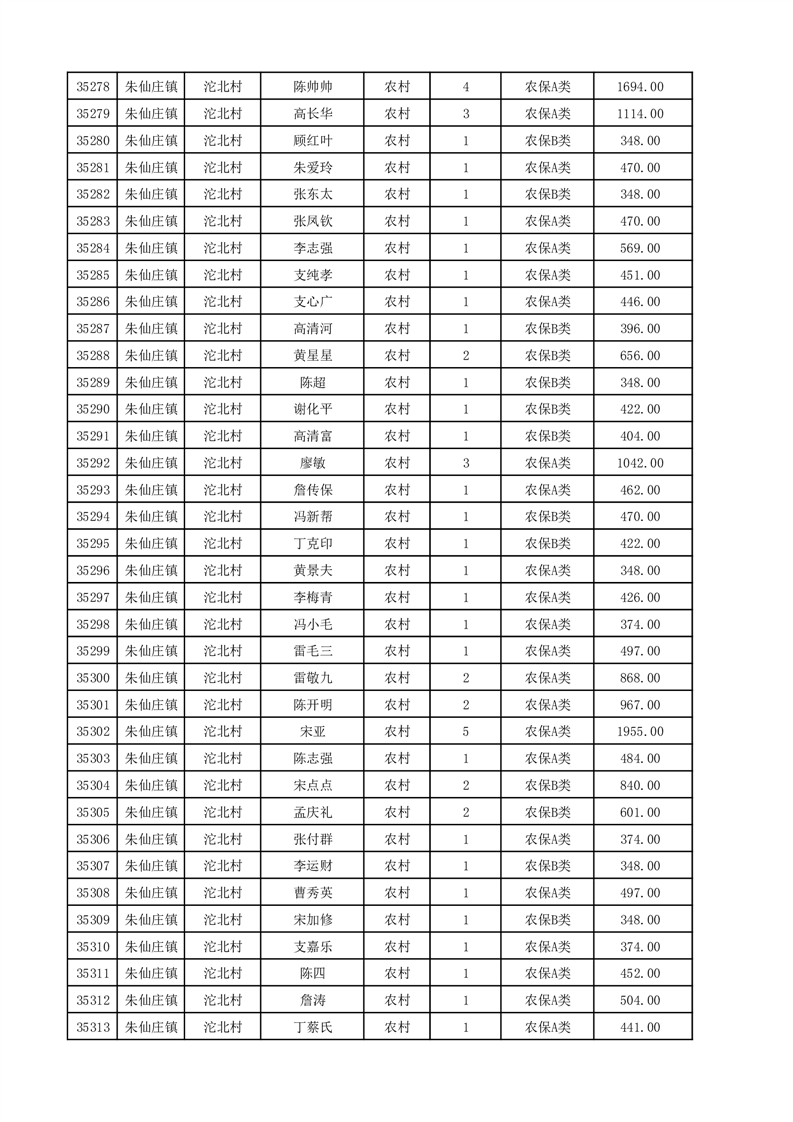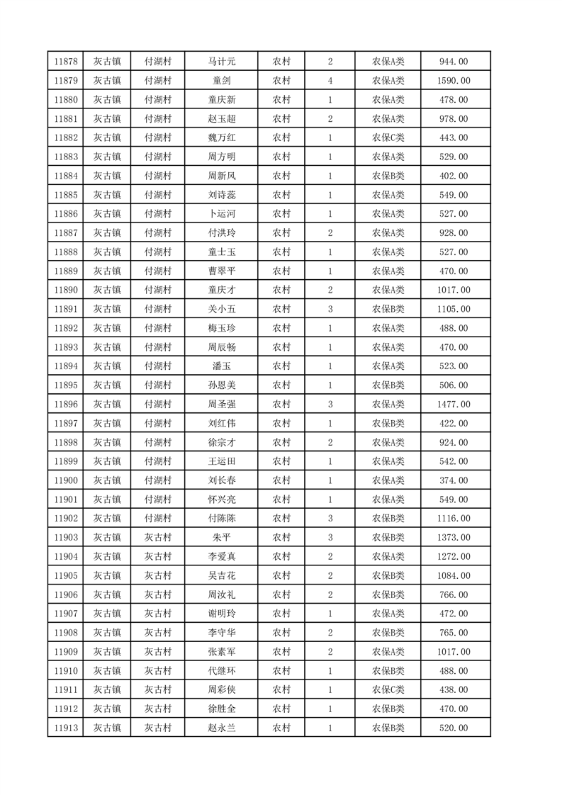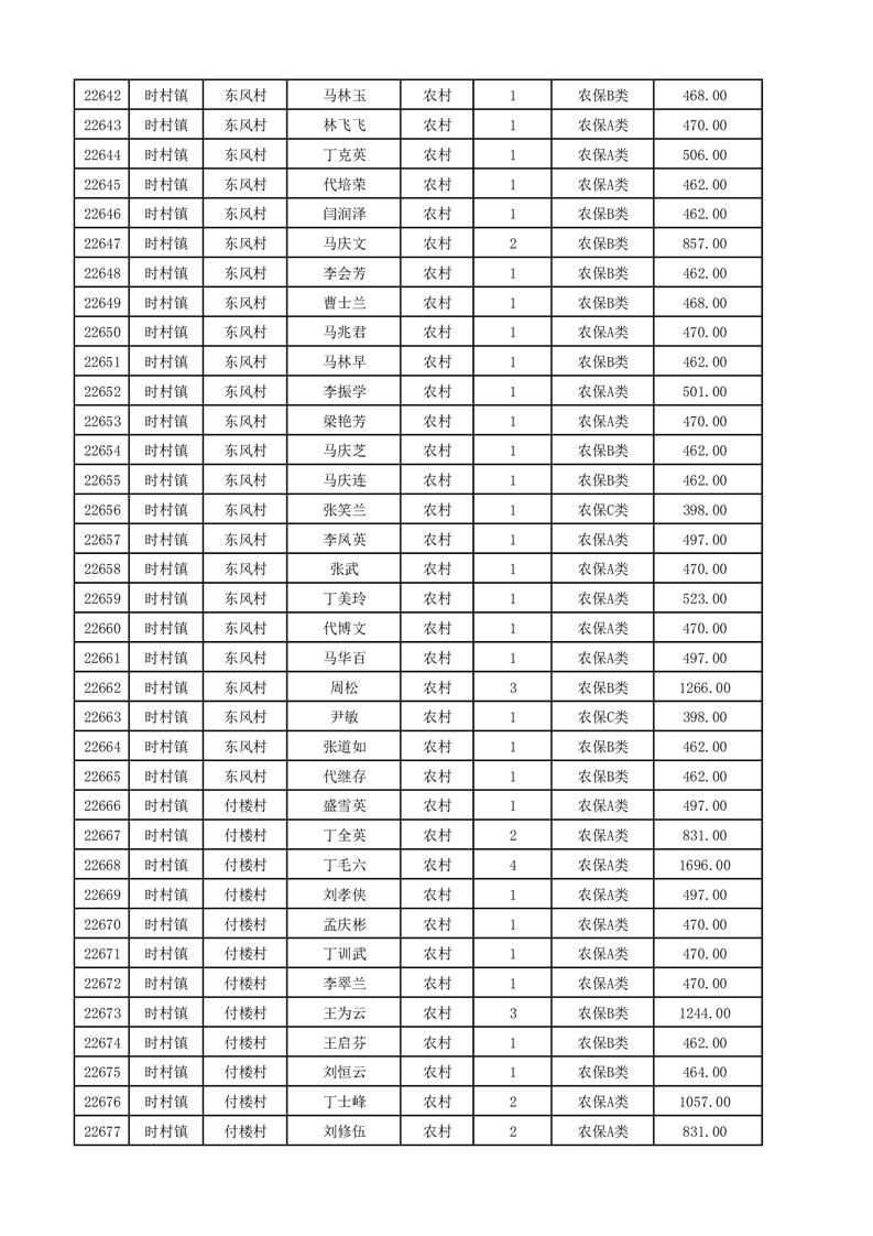埇桥区2025年12月份农村低保花名册