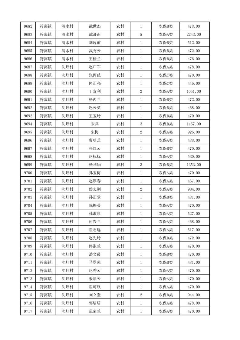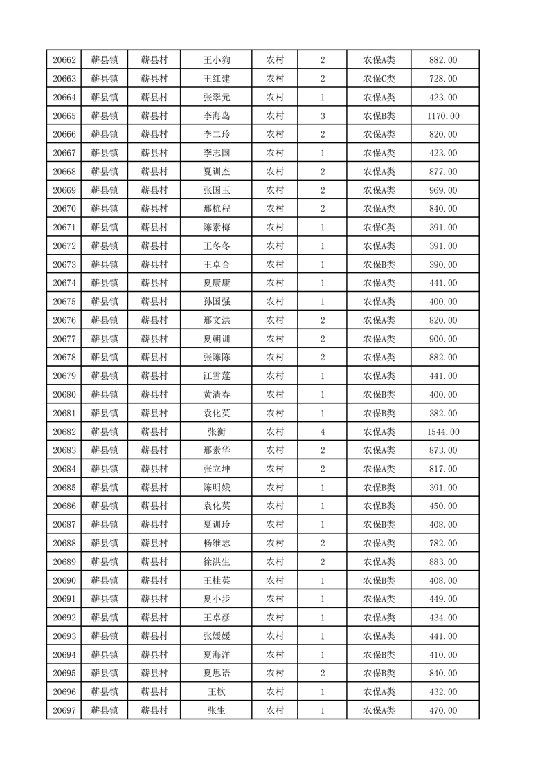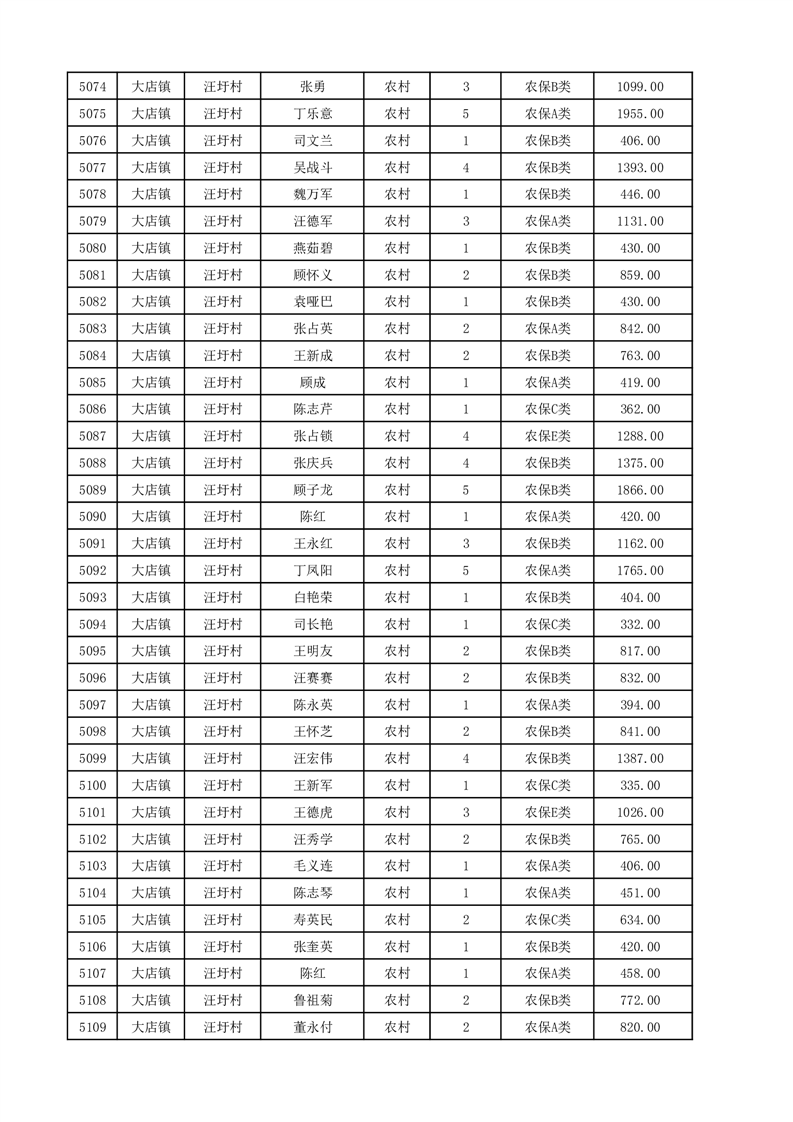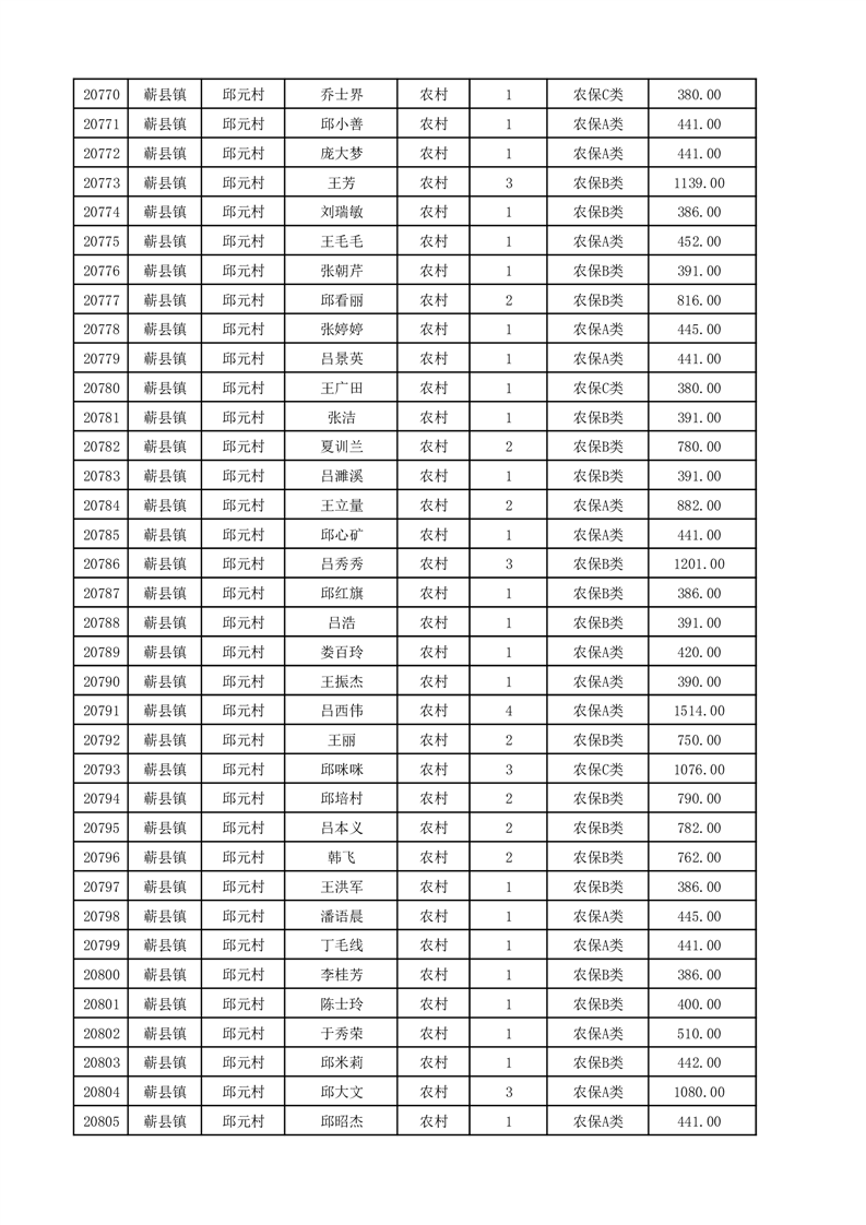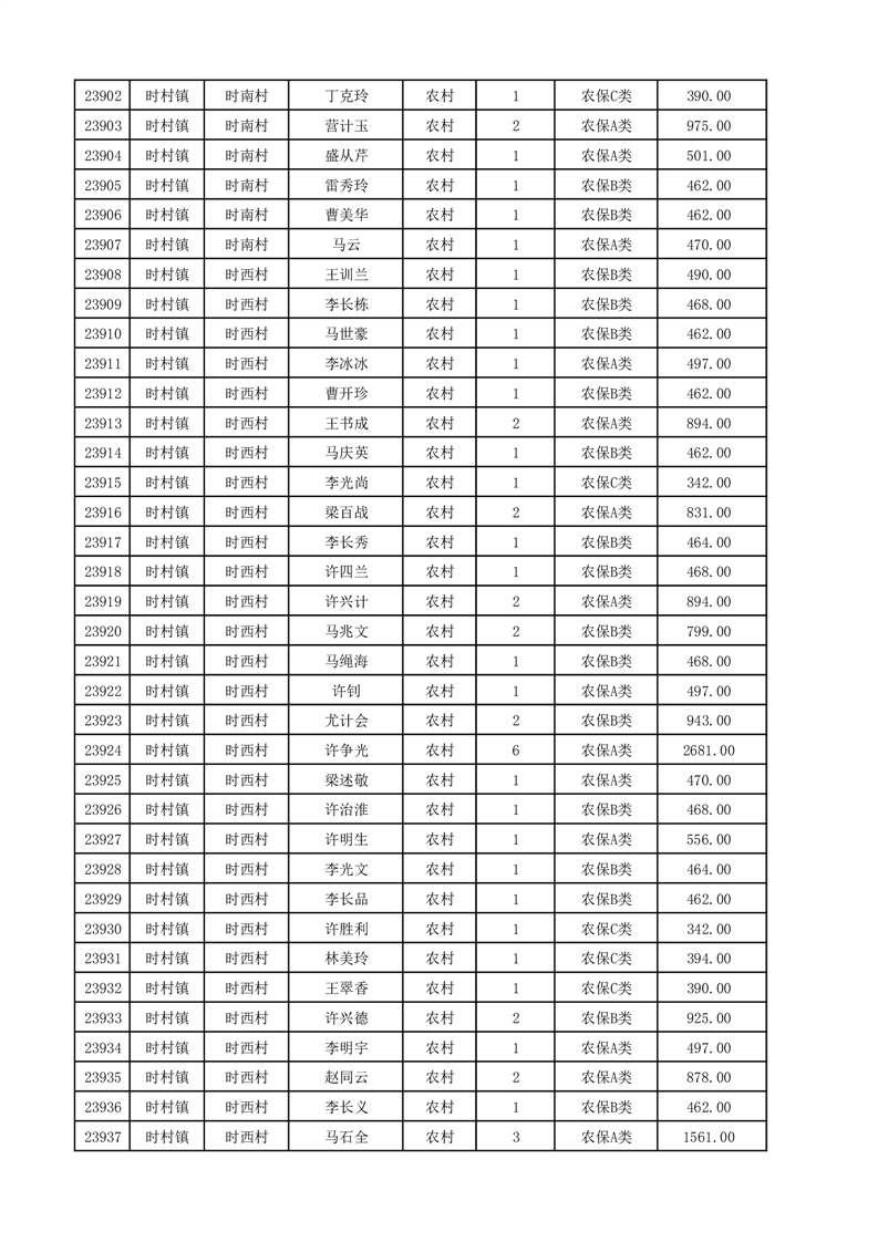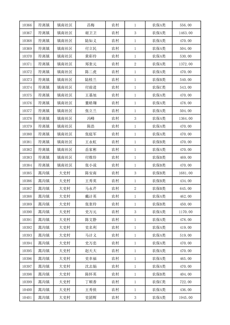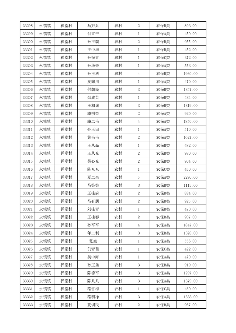埇桥区2025年12月份农村低保花名册