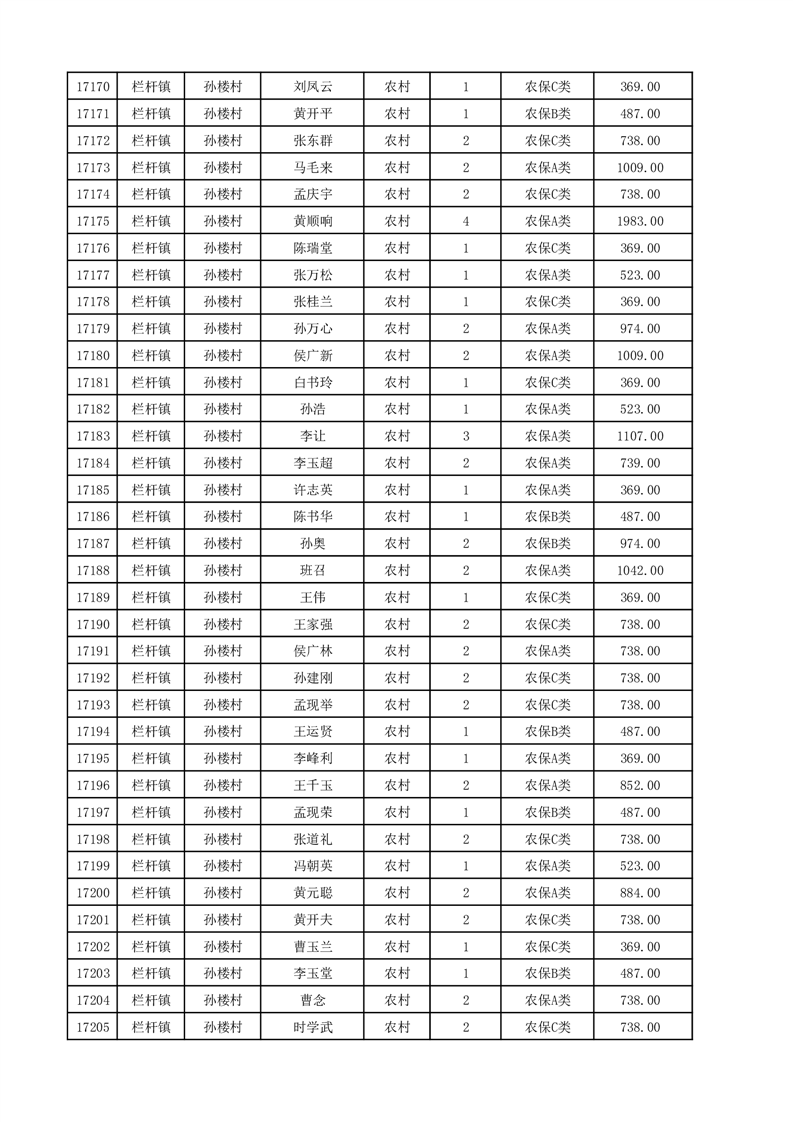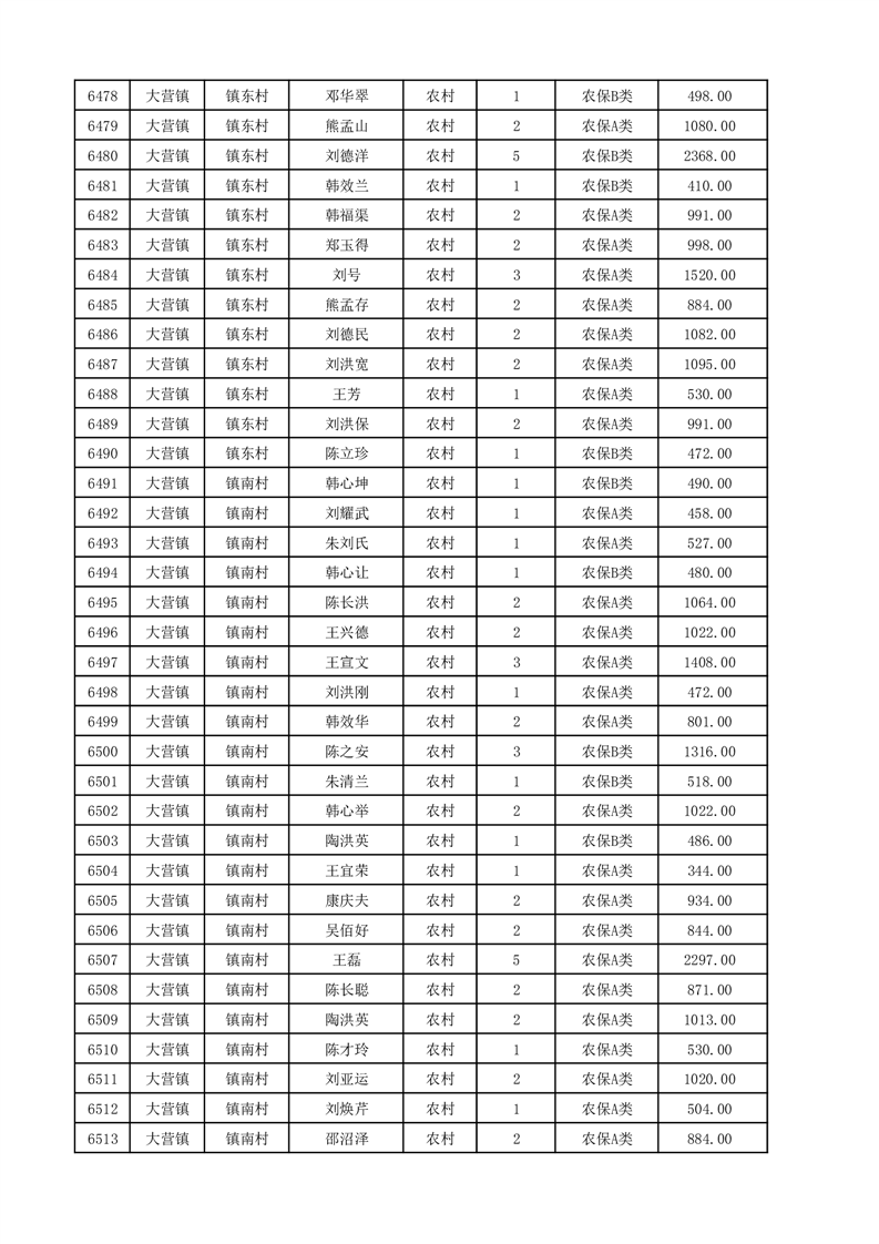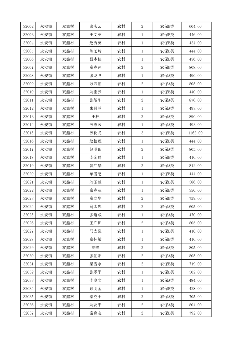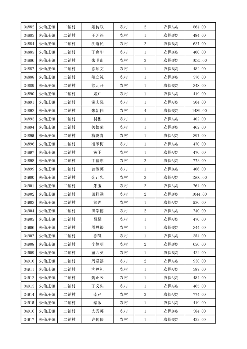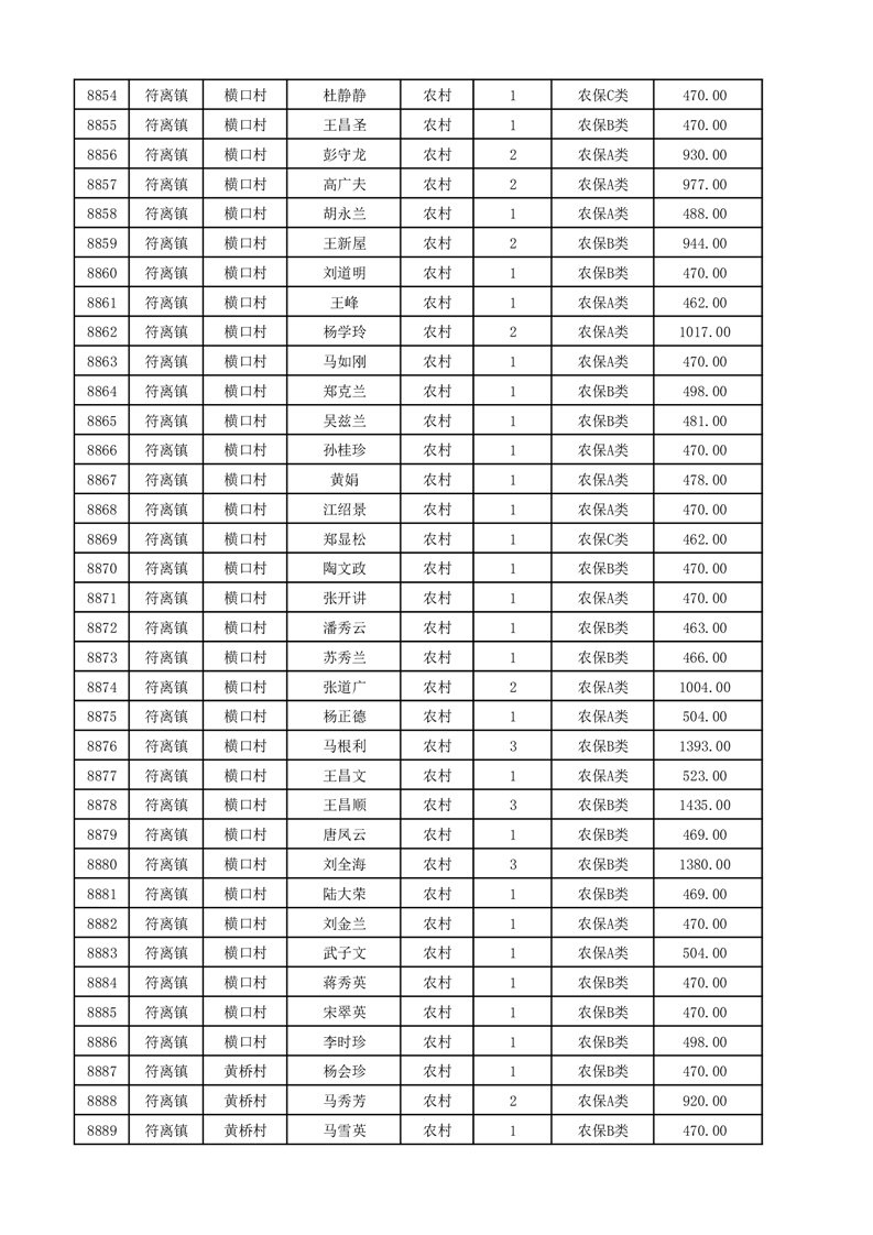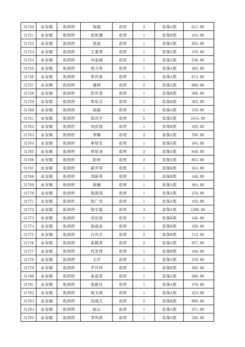 埇桥区2025年12月份农村低保花名册
