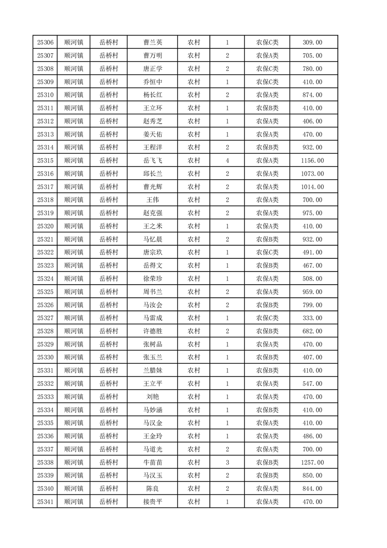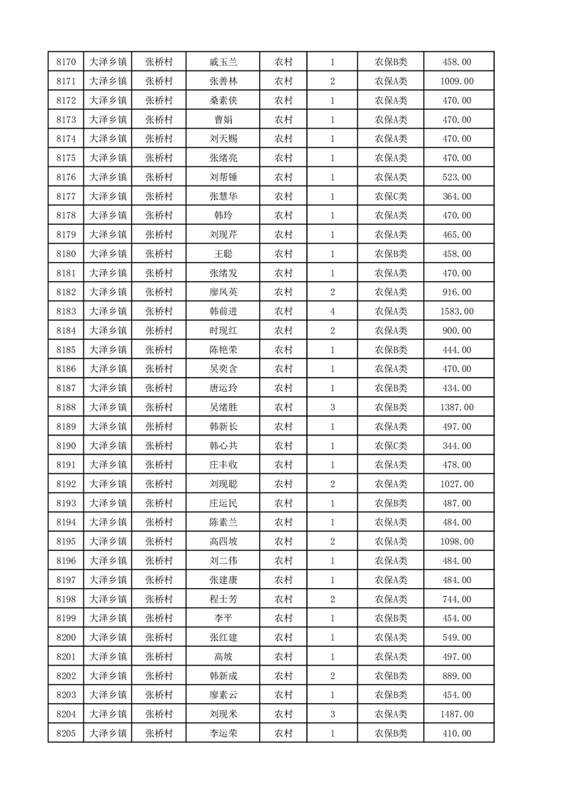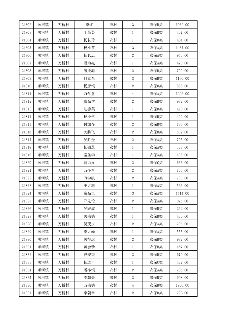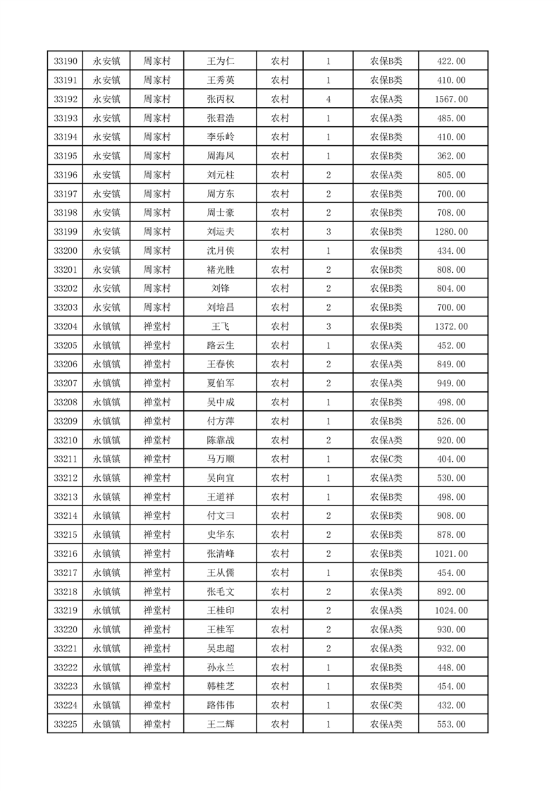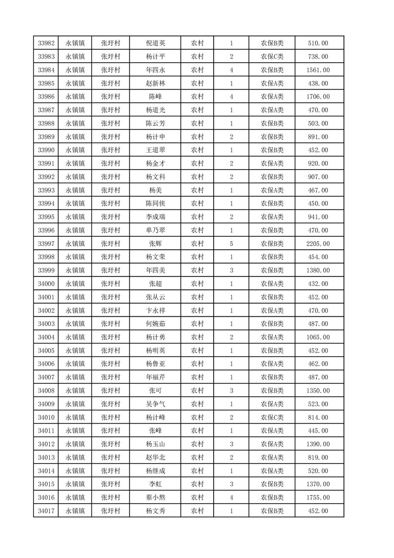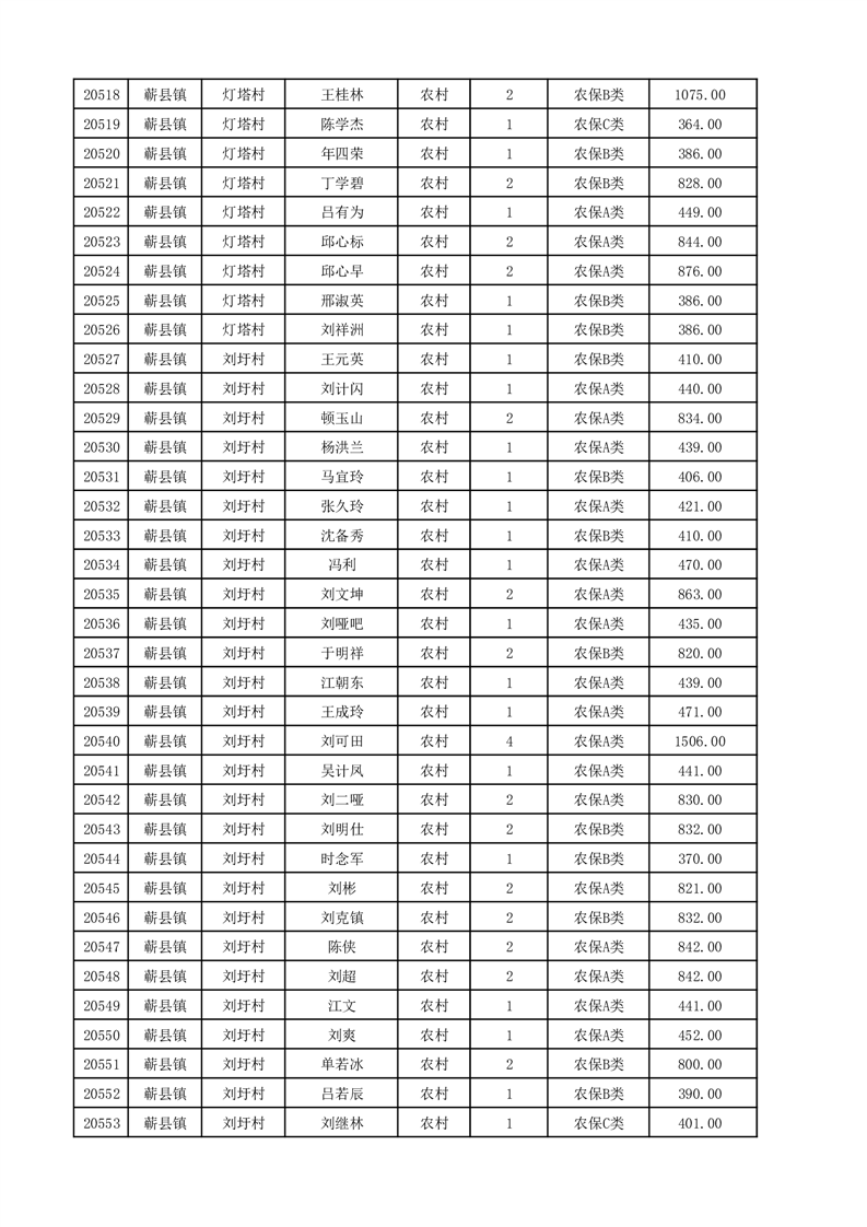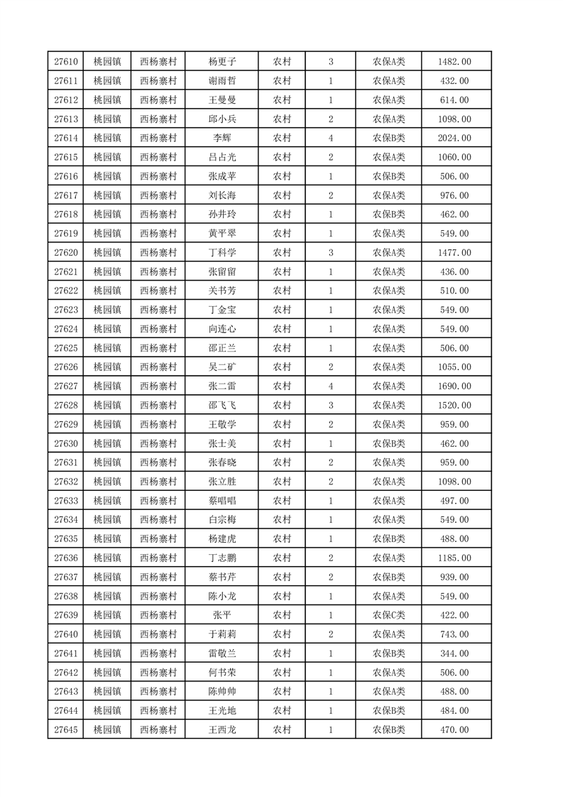 埇桥区2025年12月份农村低保花名册