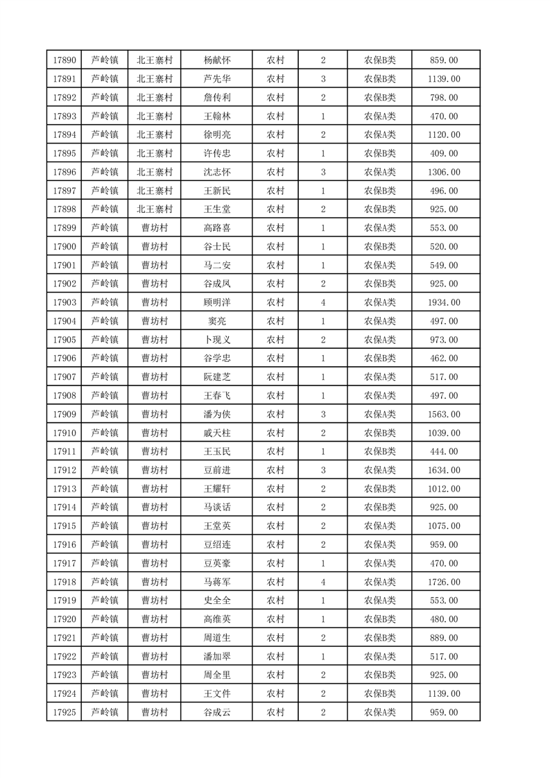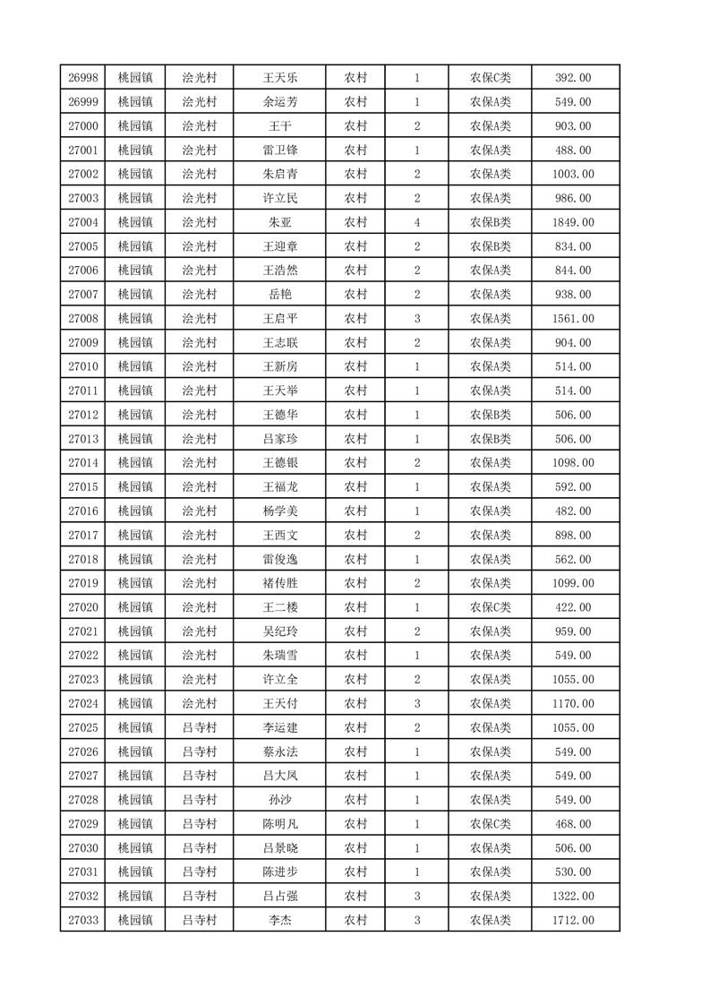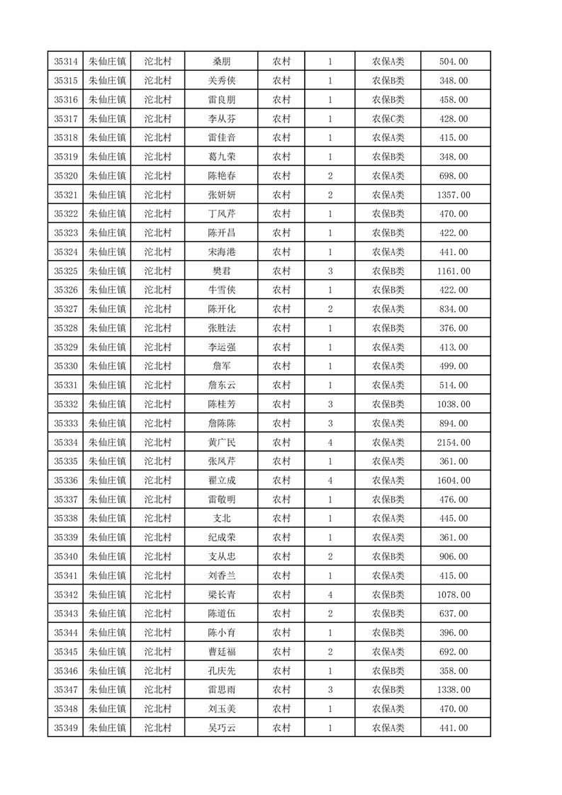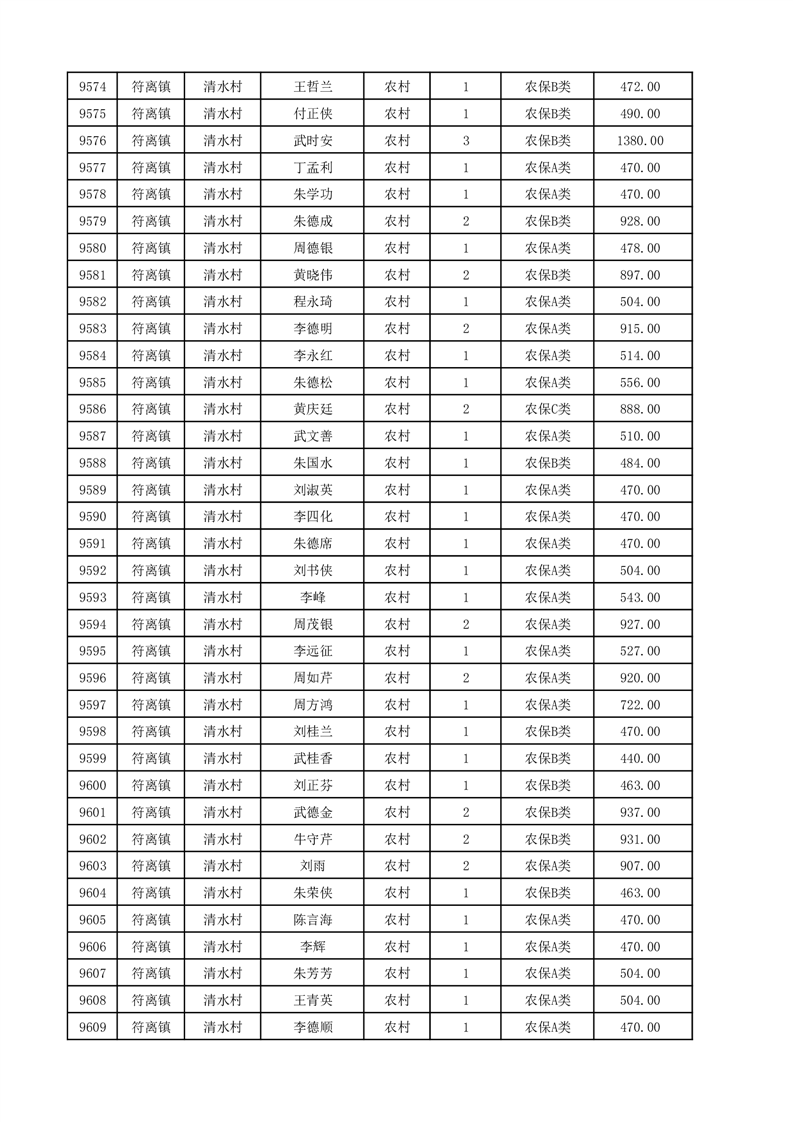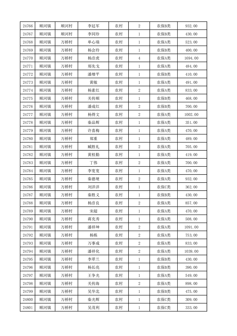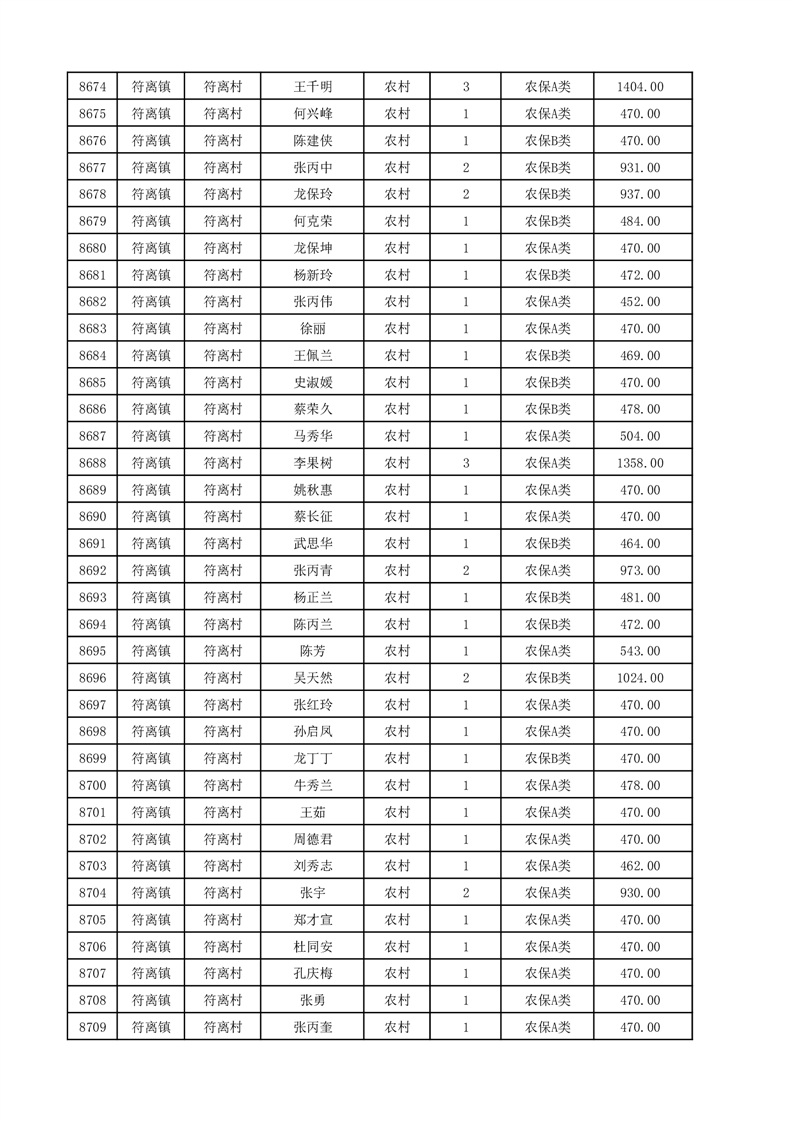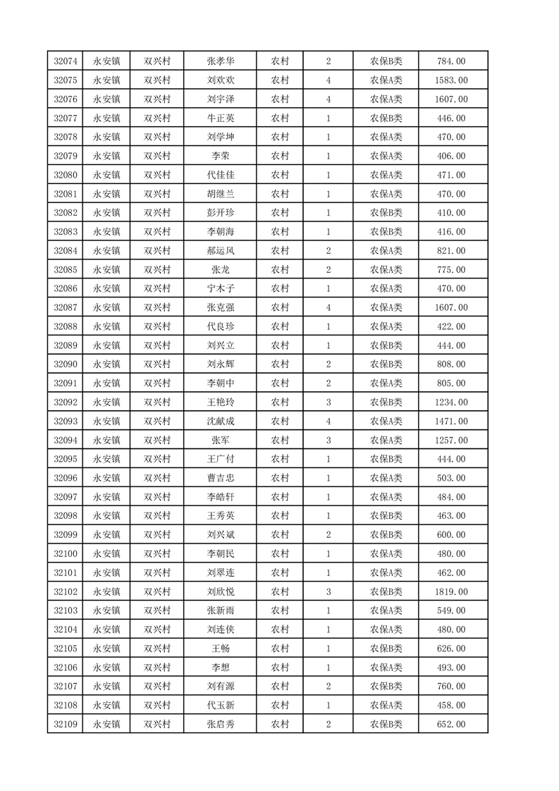 埇桥区2025年12月份农村低保花名册