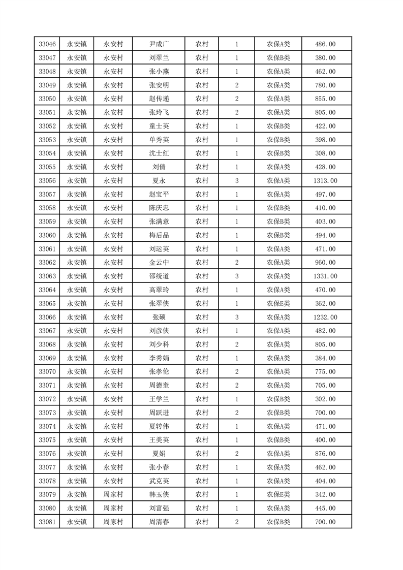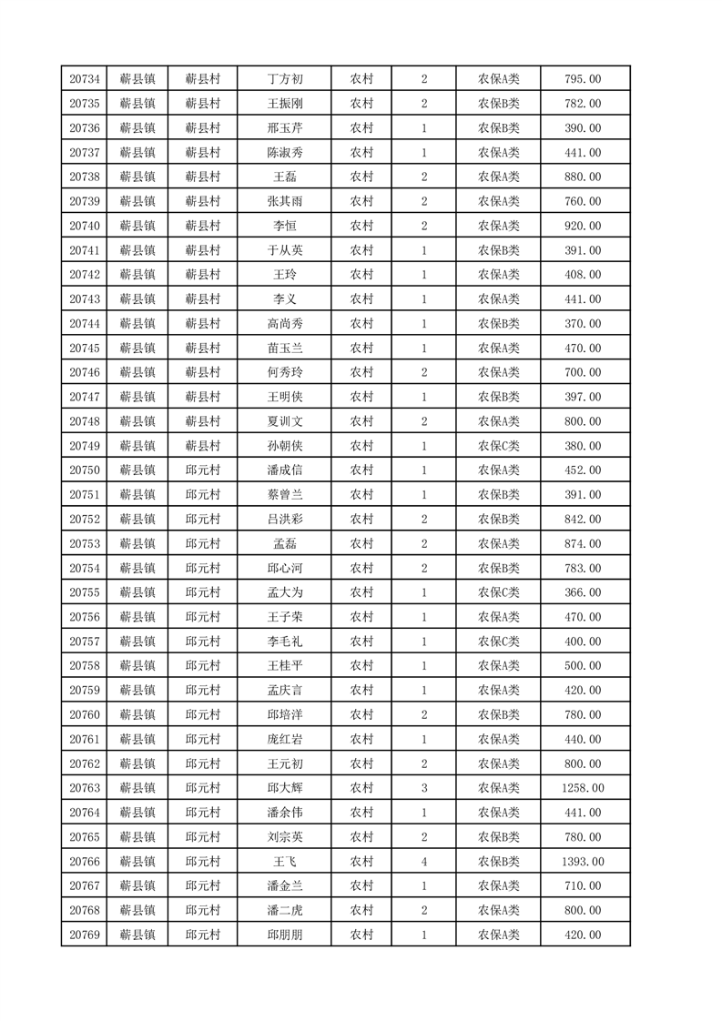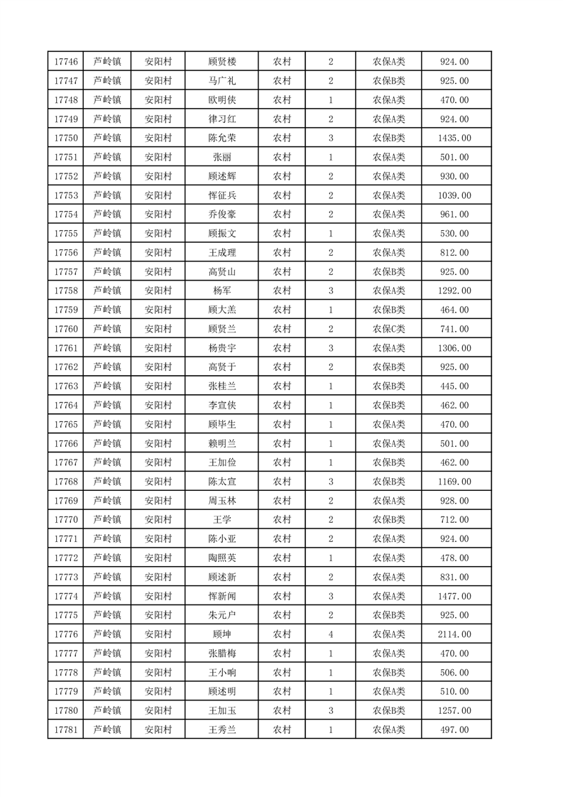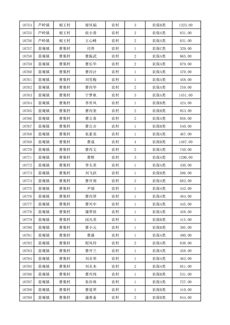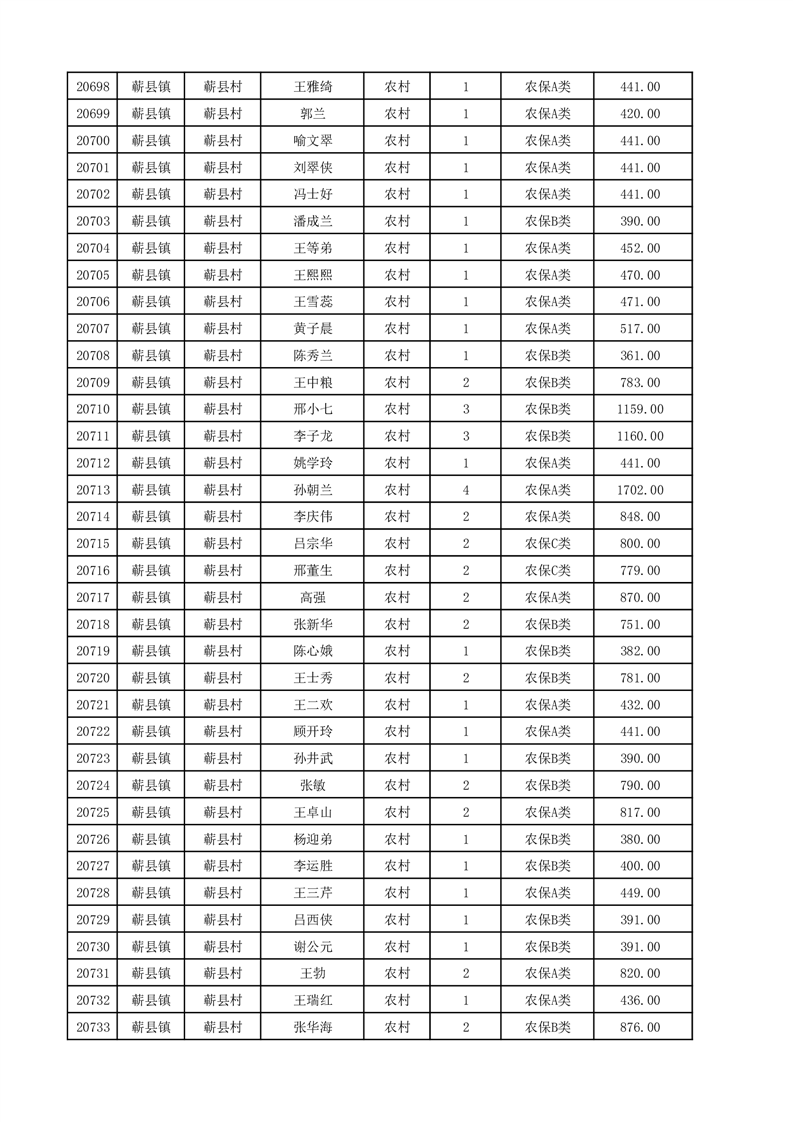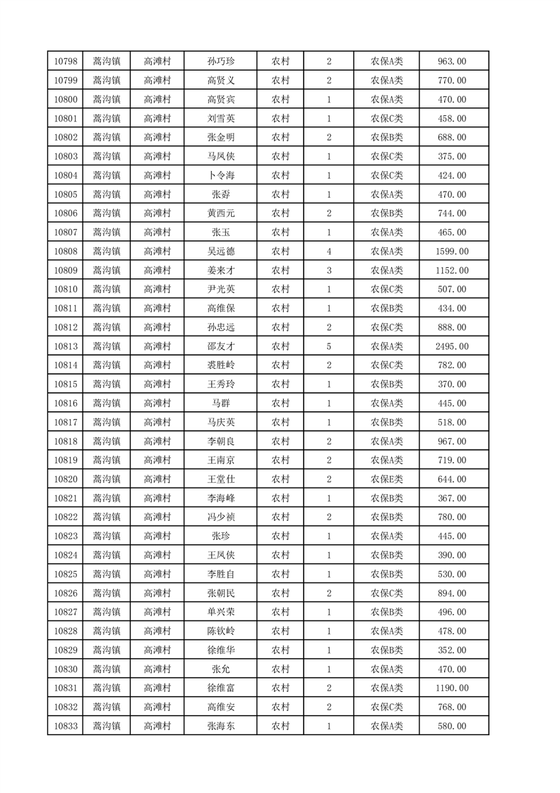 埇桥区2025年12月份农村低保花名册