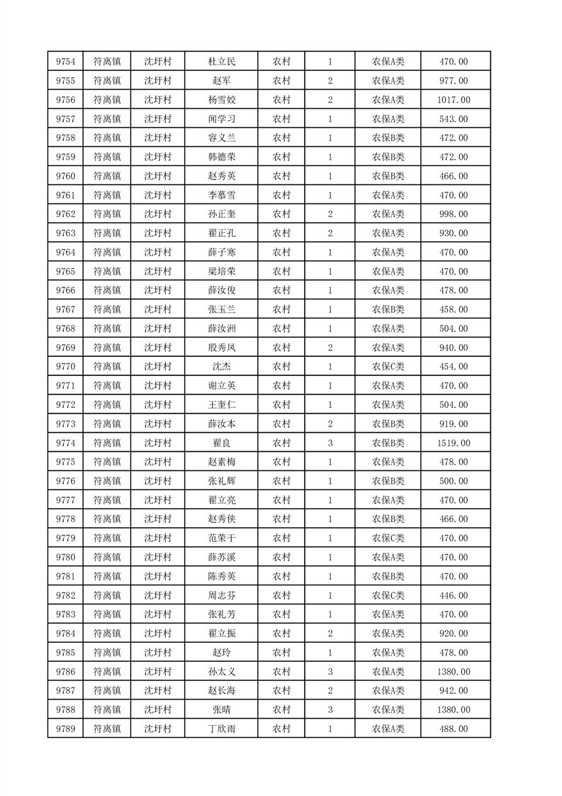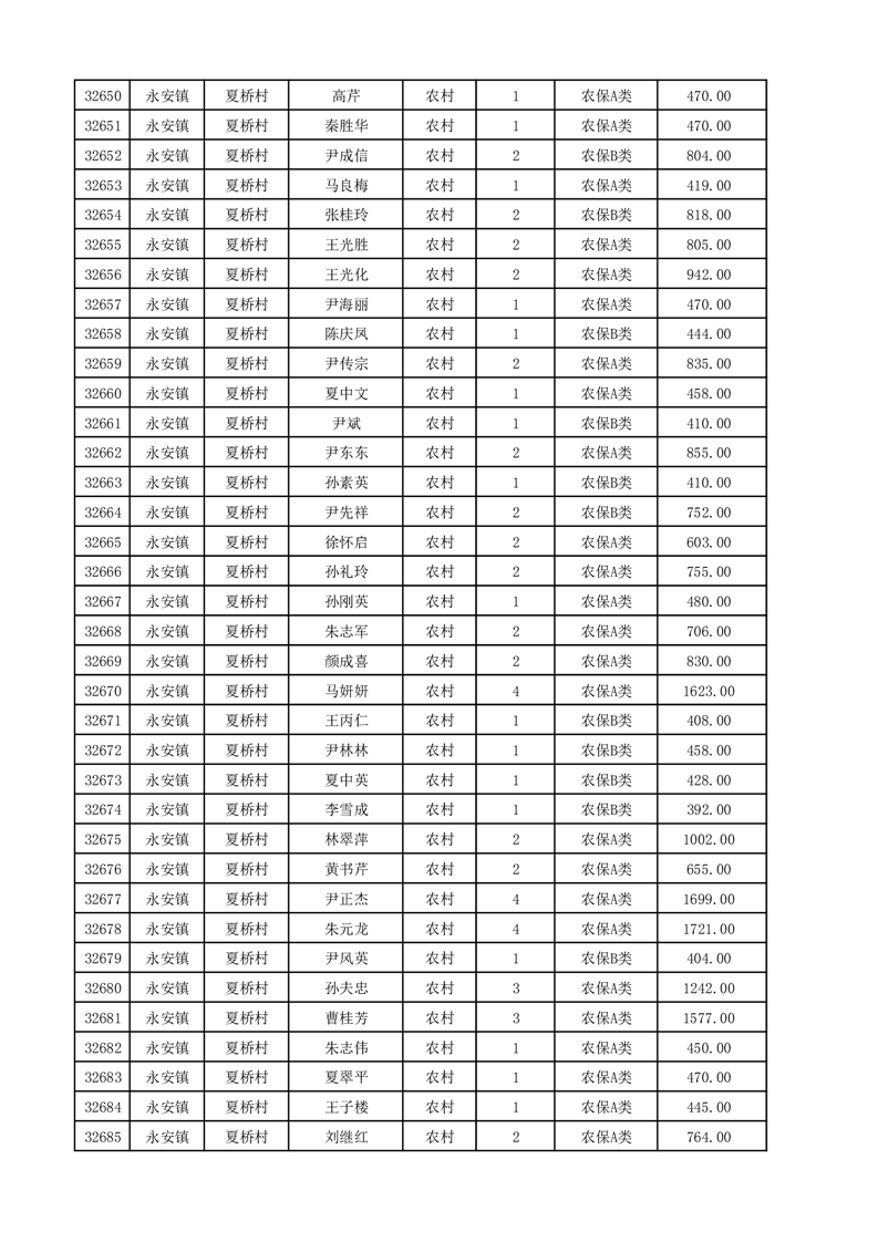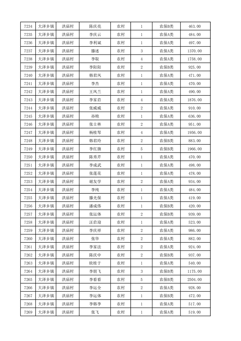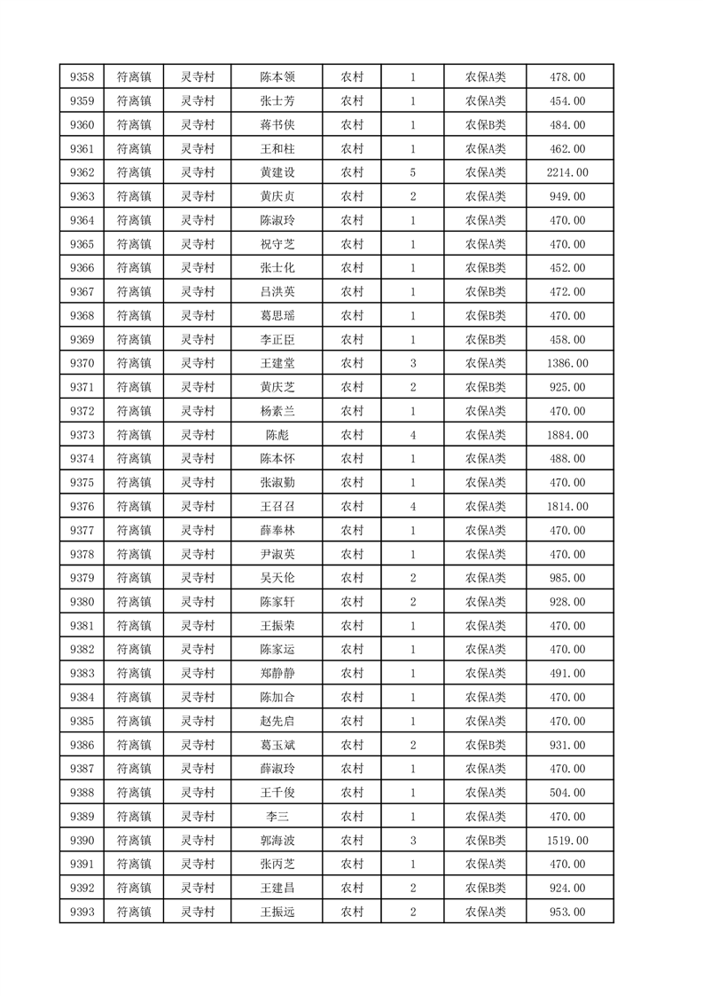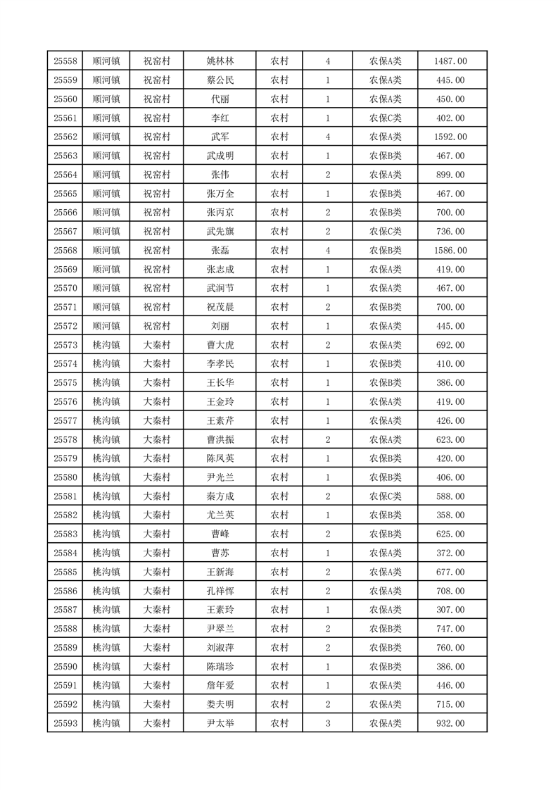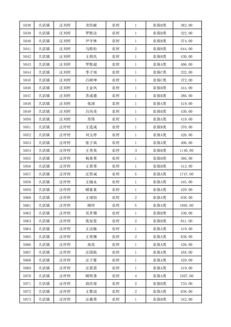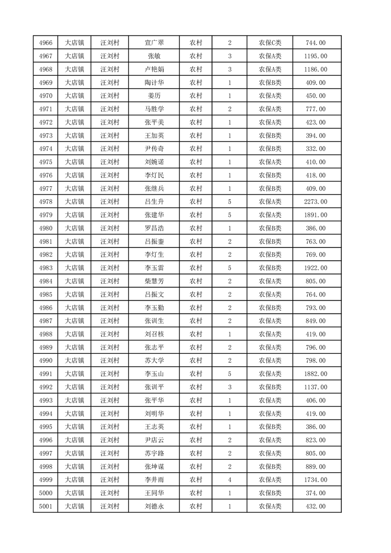 埇桥区2025年12月份农村低保花名册