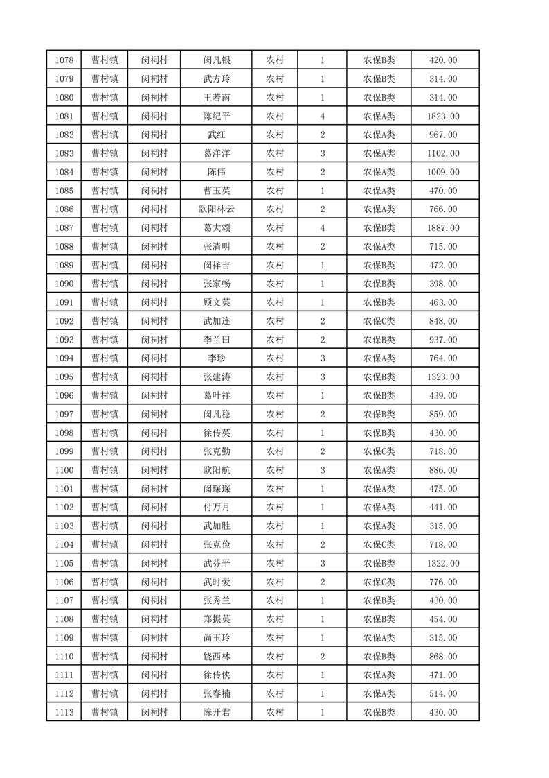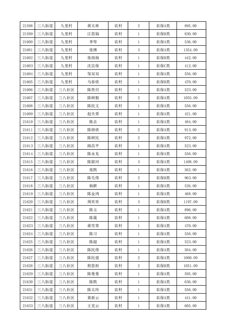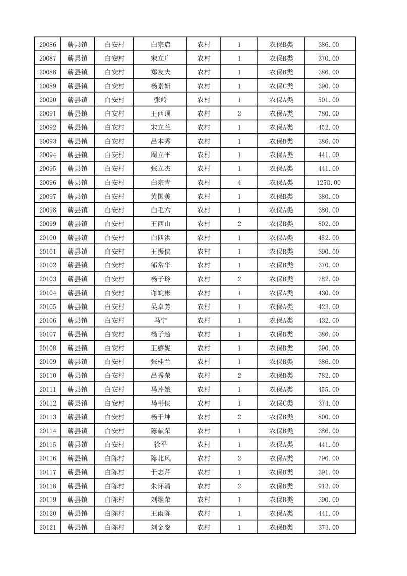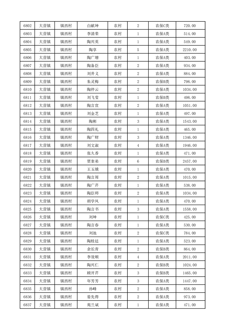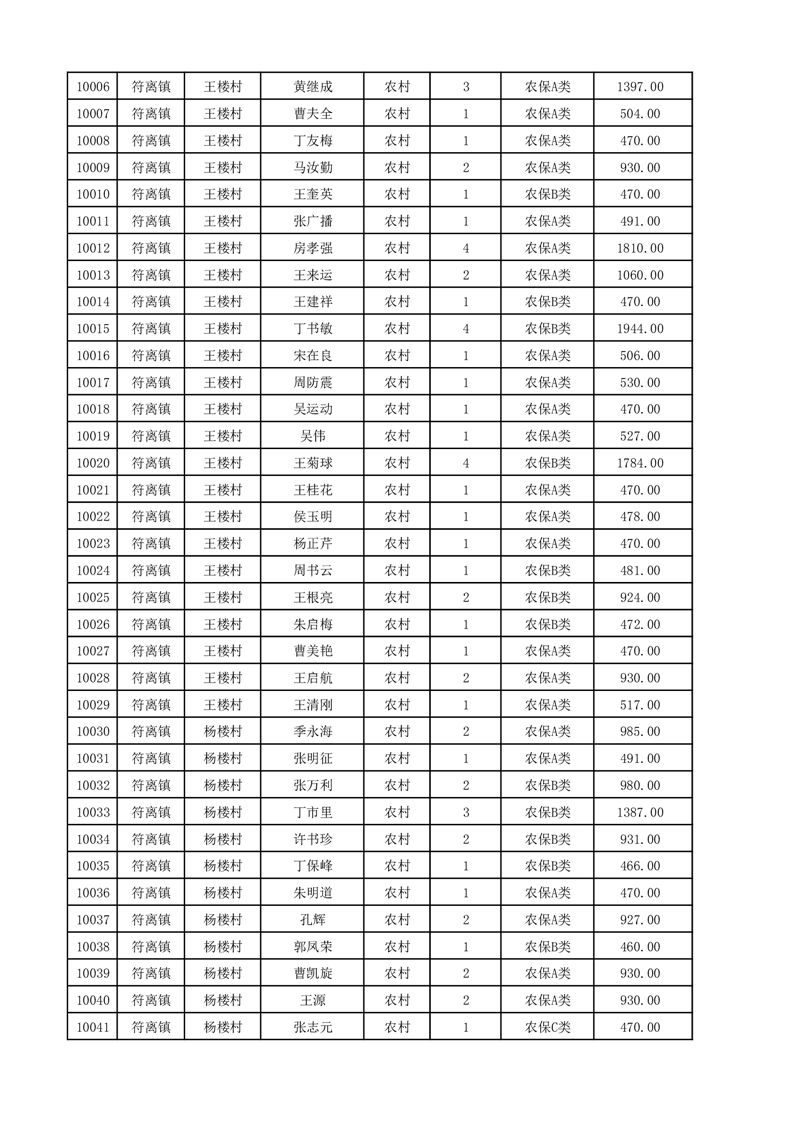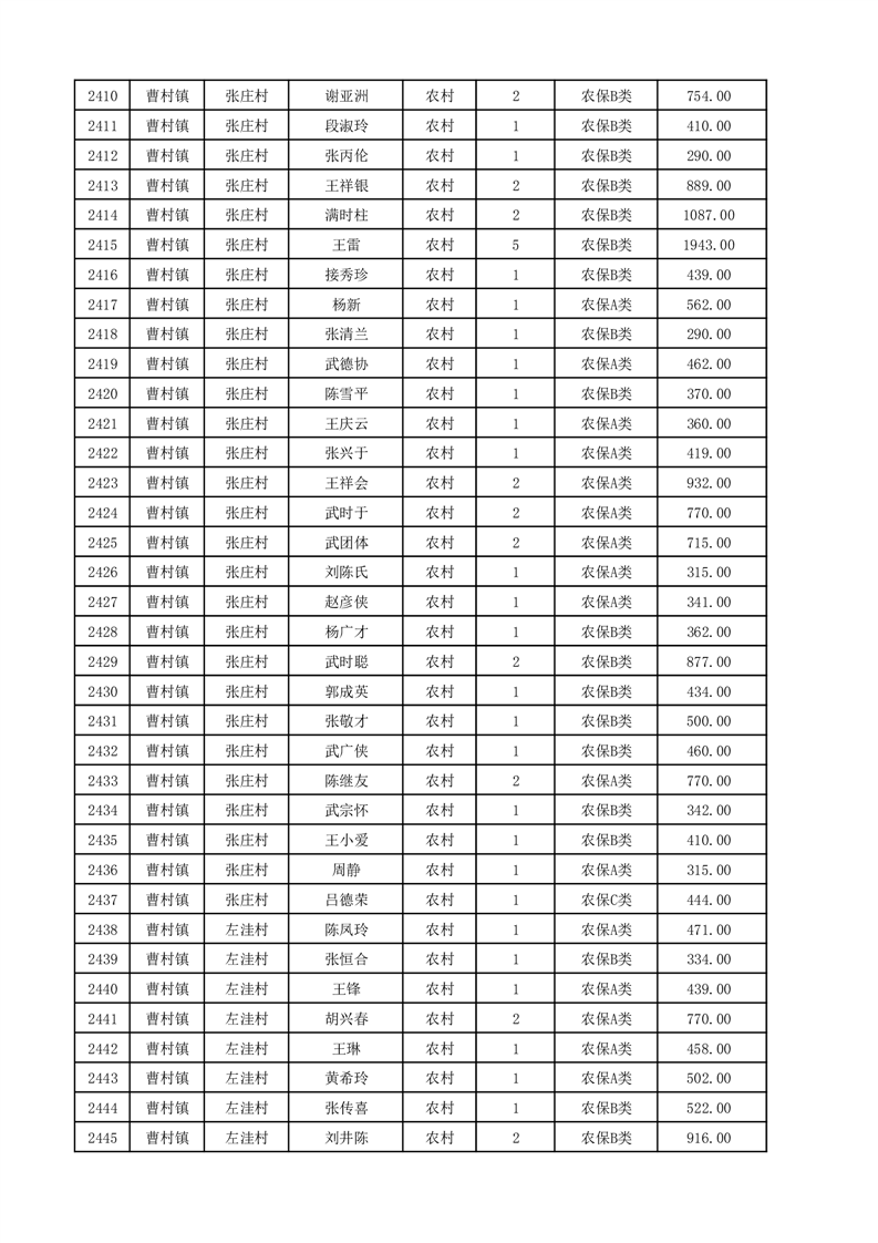 埇桥区2025年12月份农村低保花名册