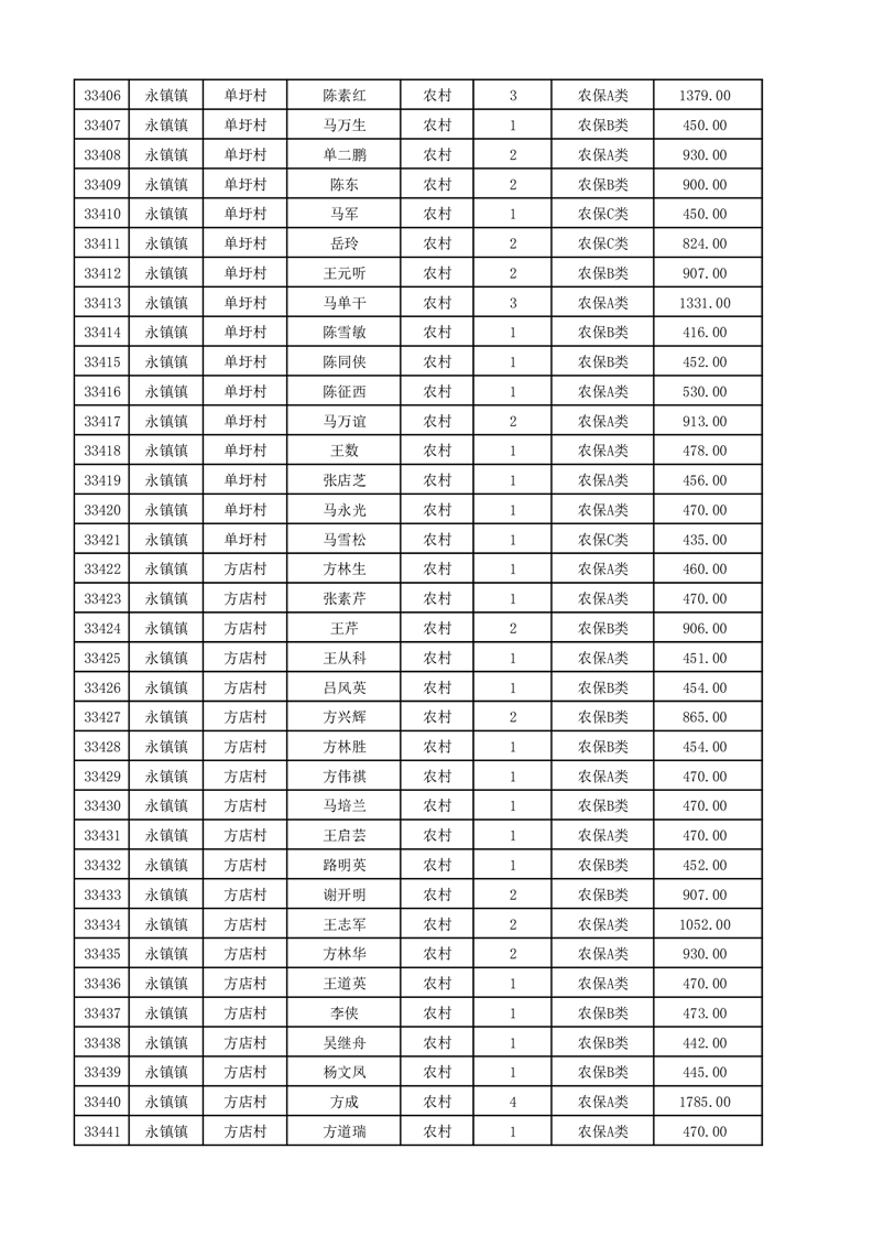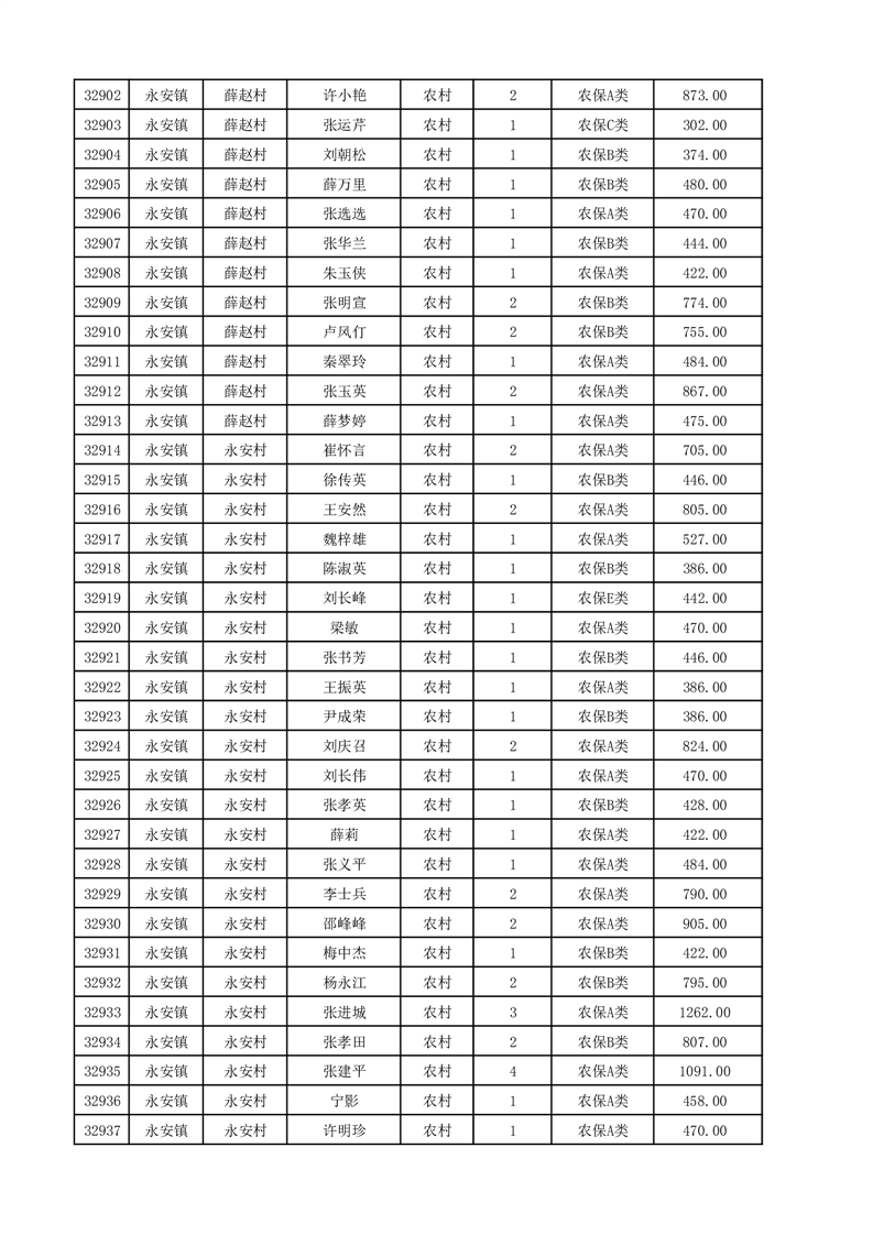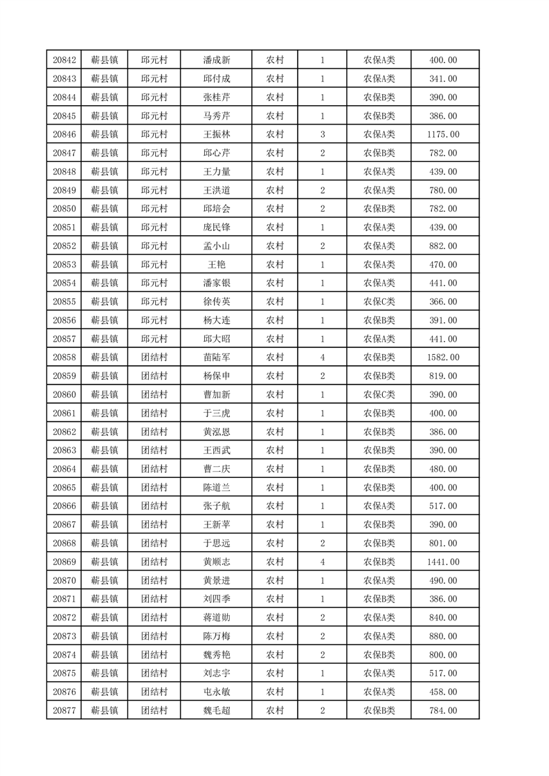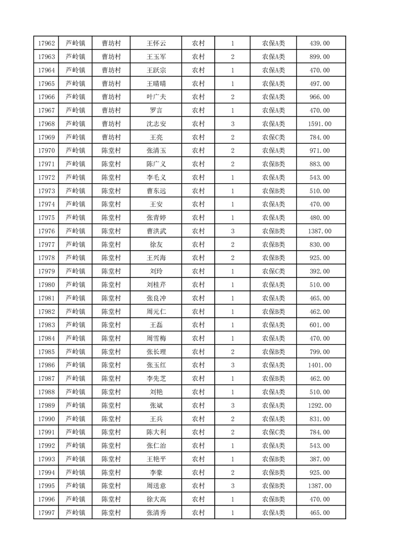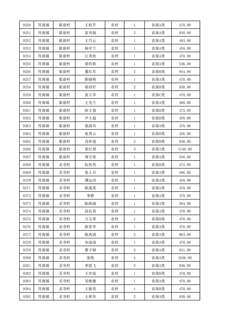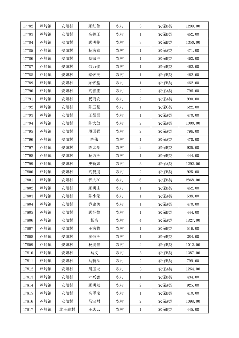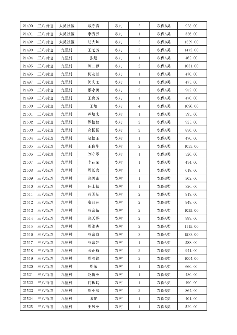 埇桥区2025年12月份农村低保花名册