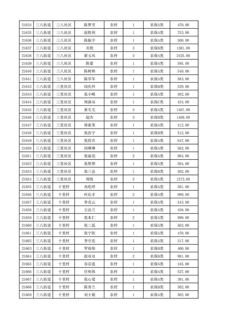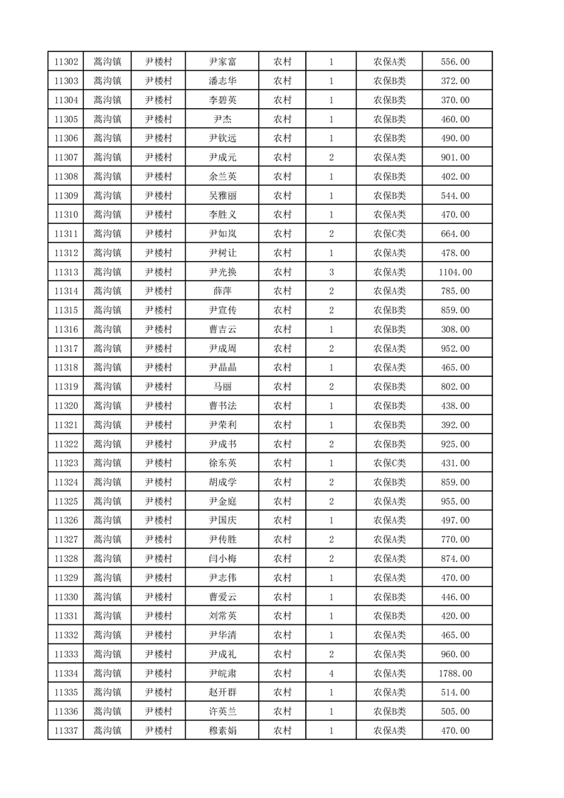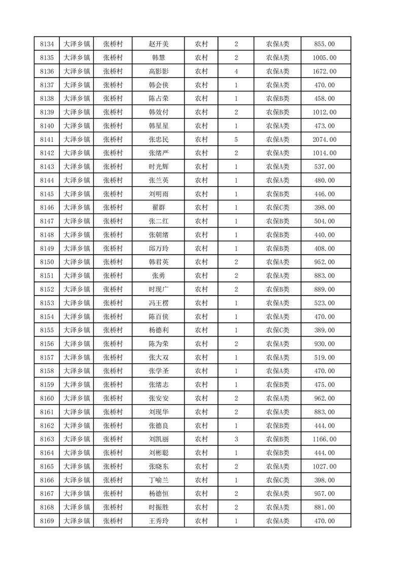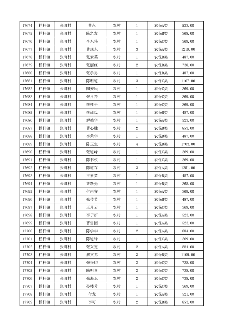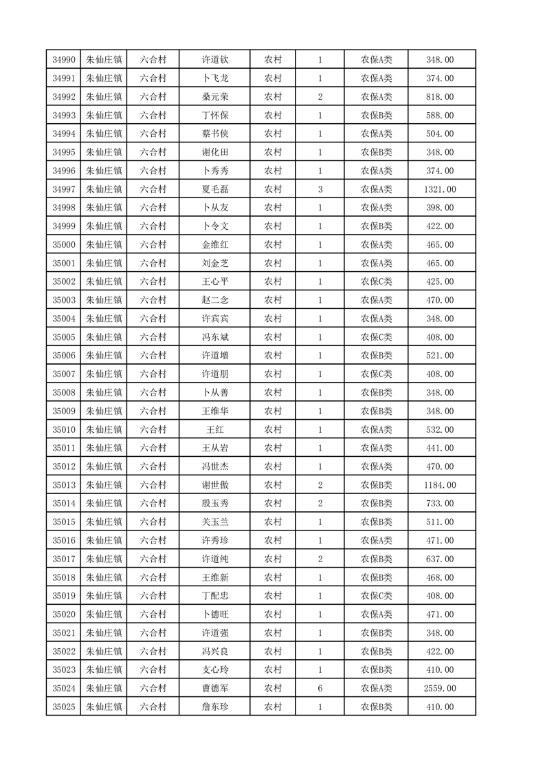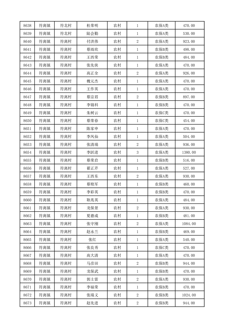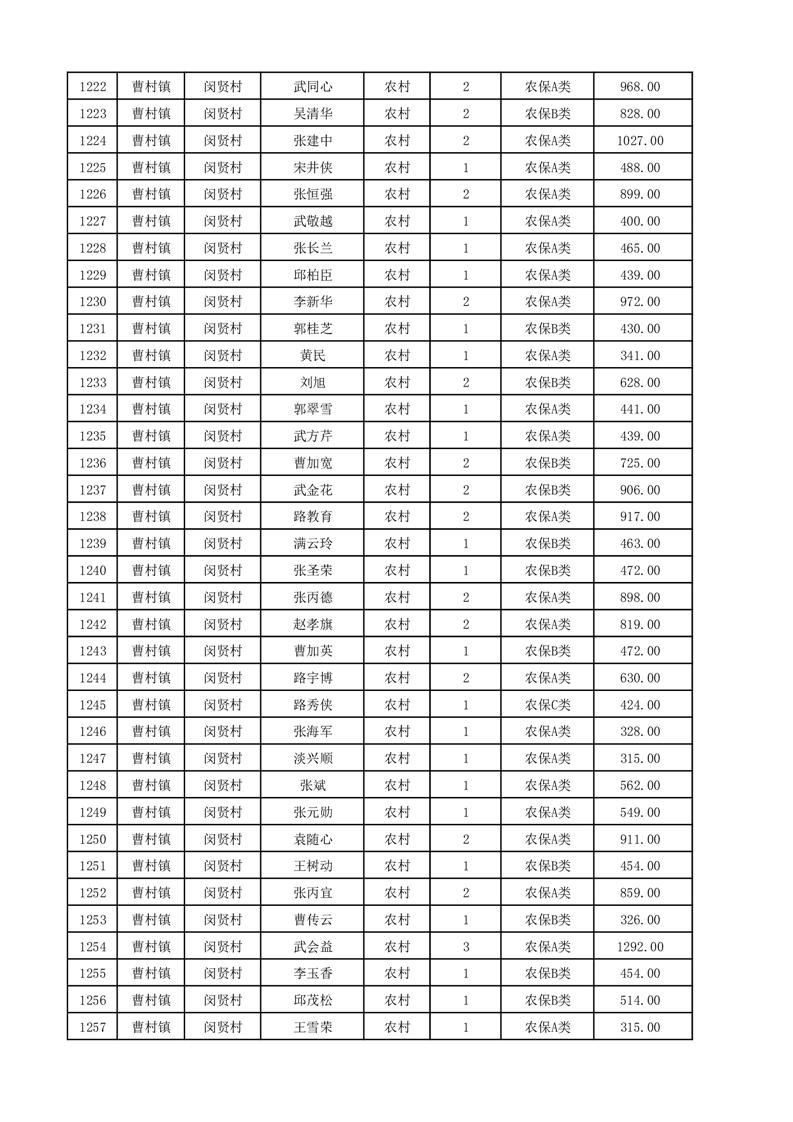 埇桥区2025年12月份农村低保花名册