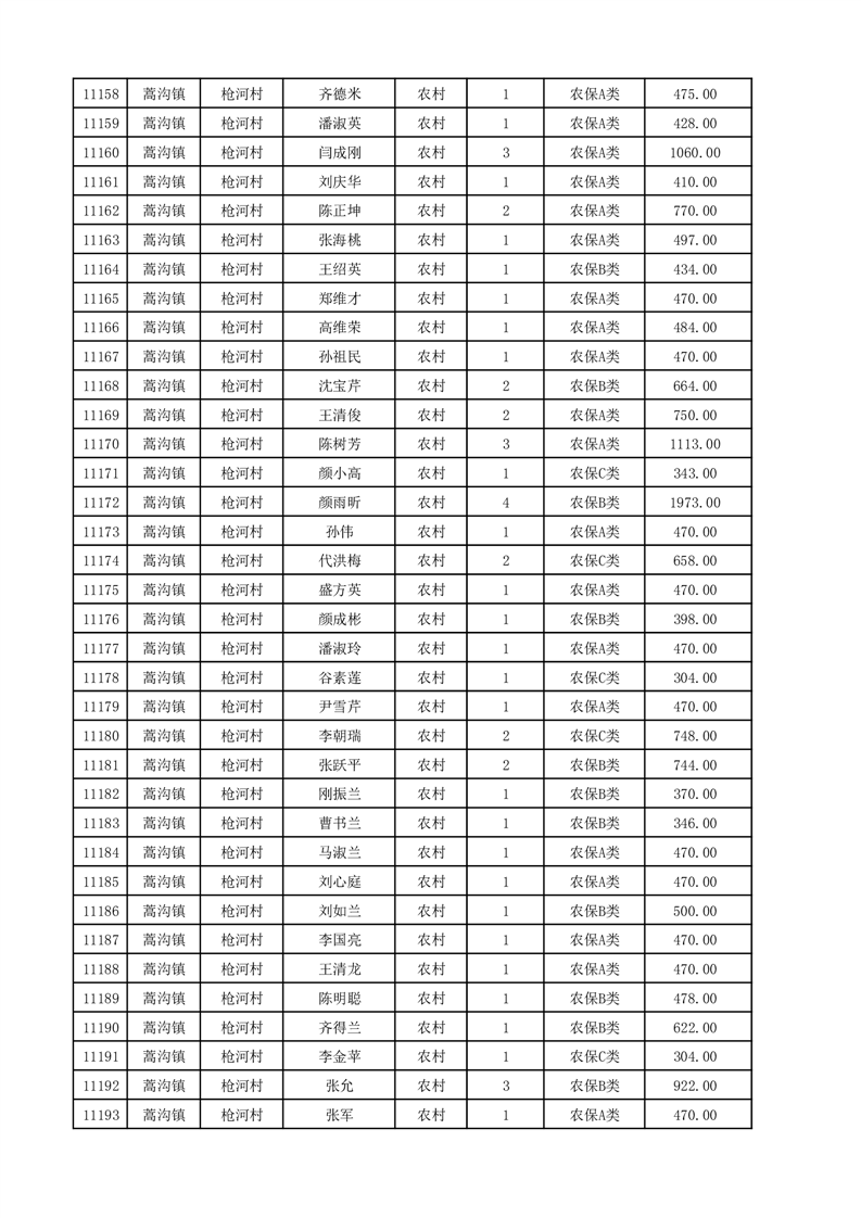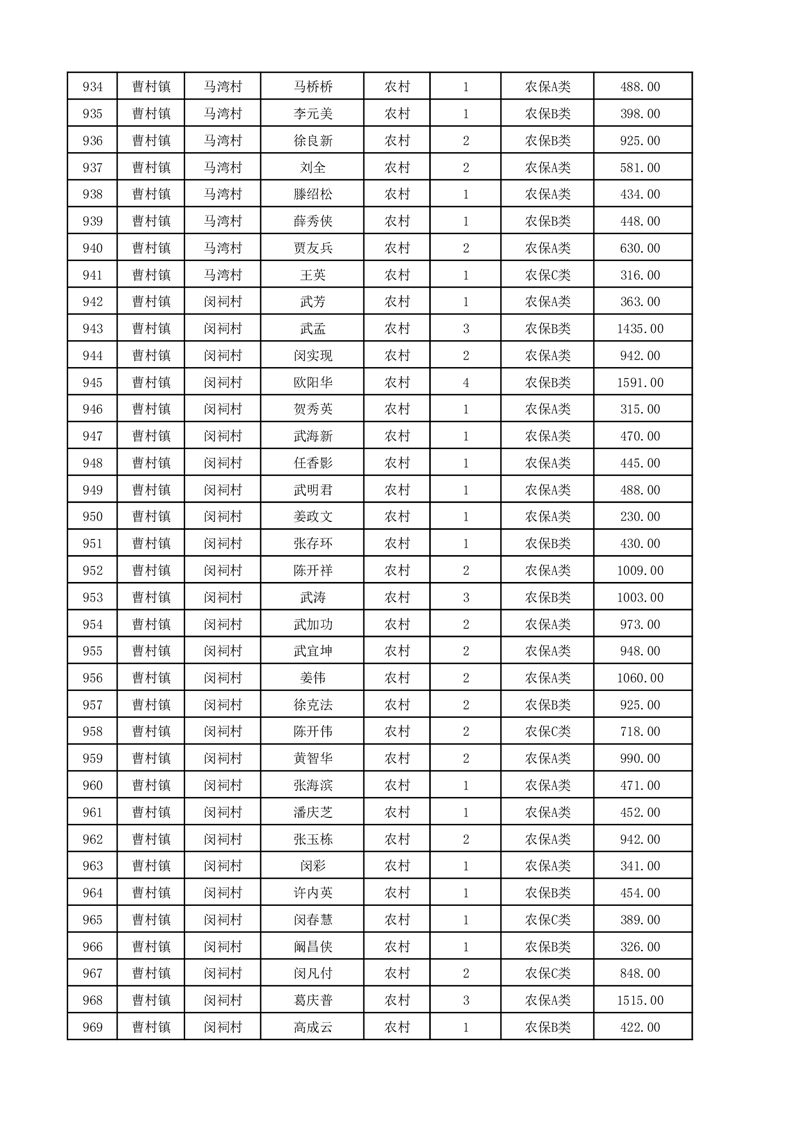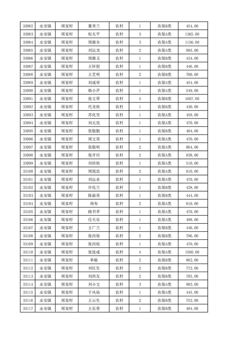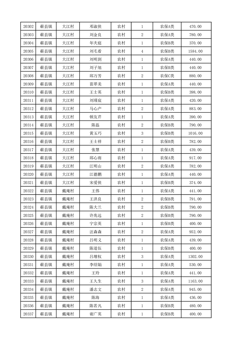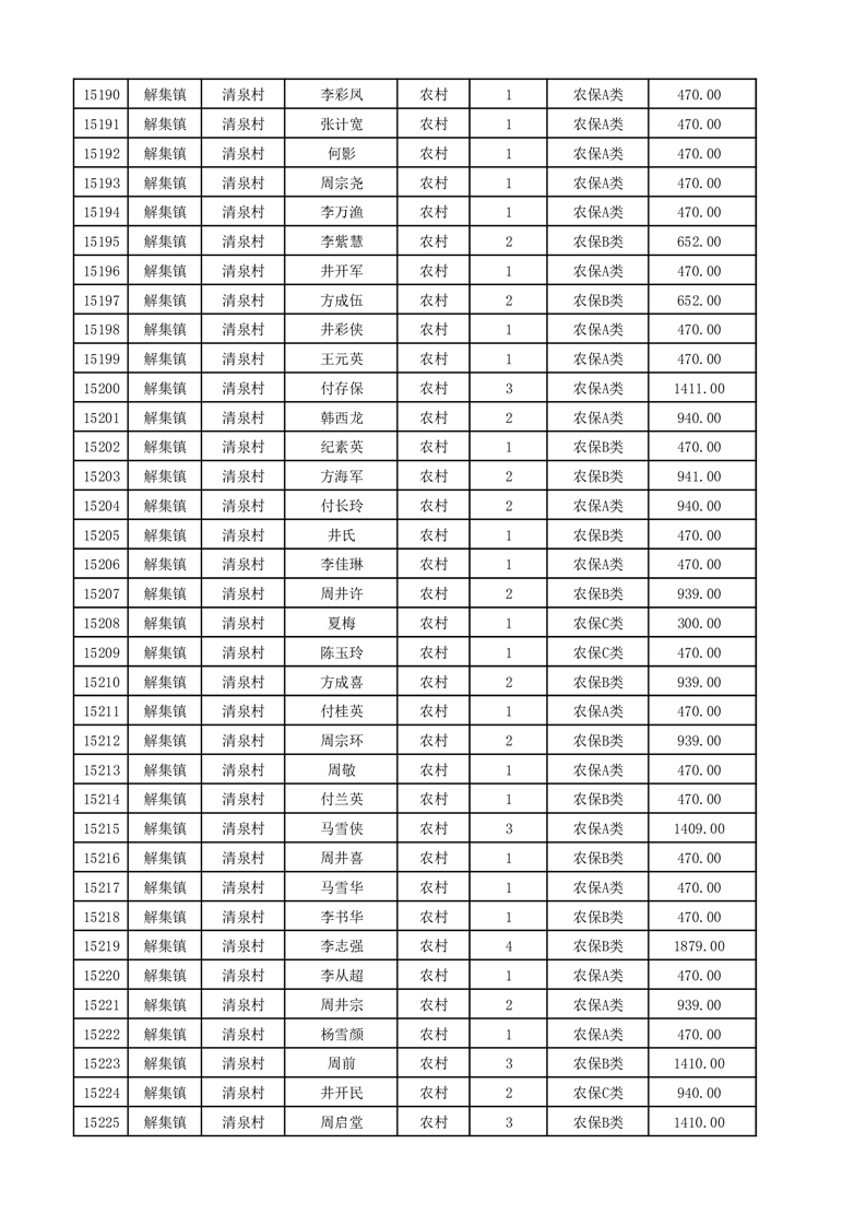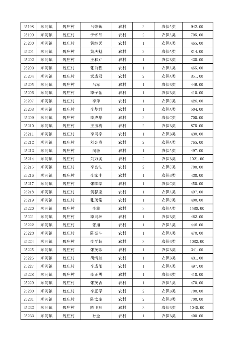 埇桥区2025年12月份农村低保花名册