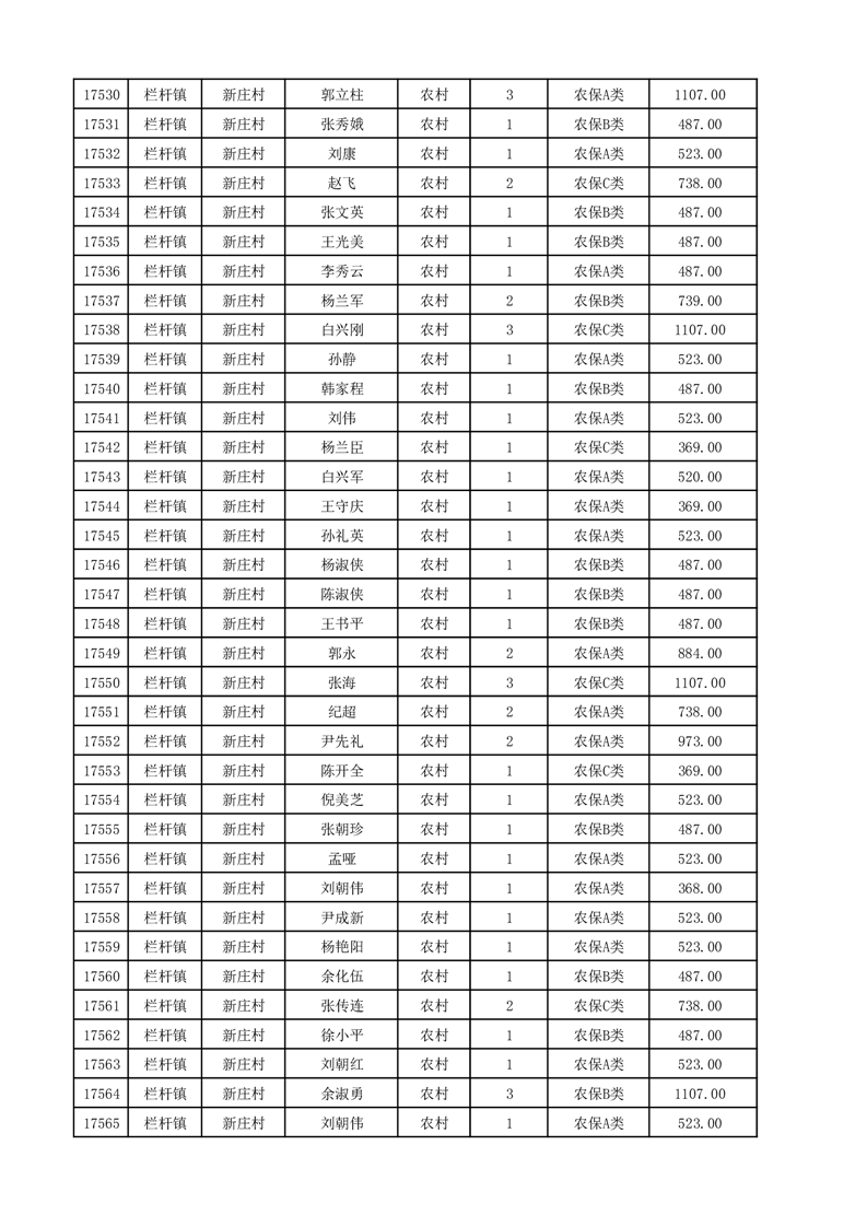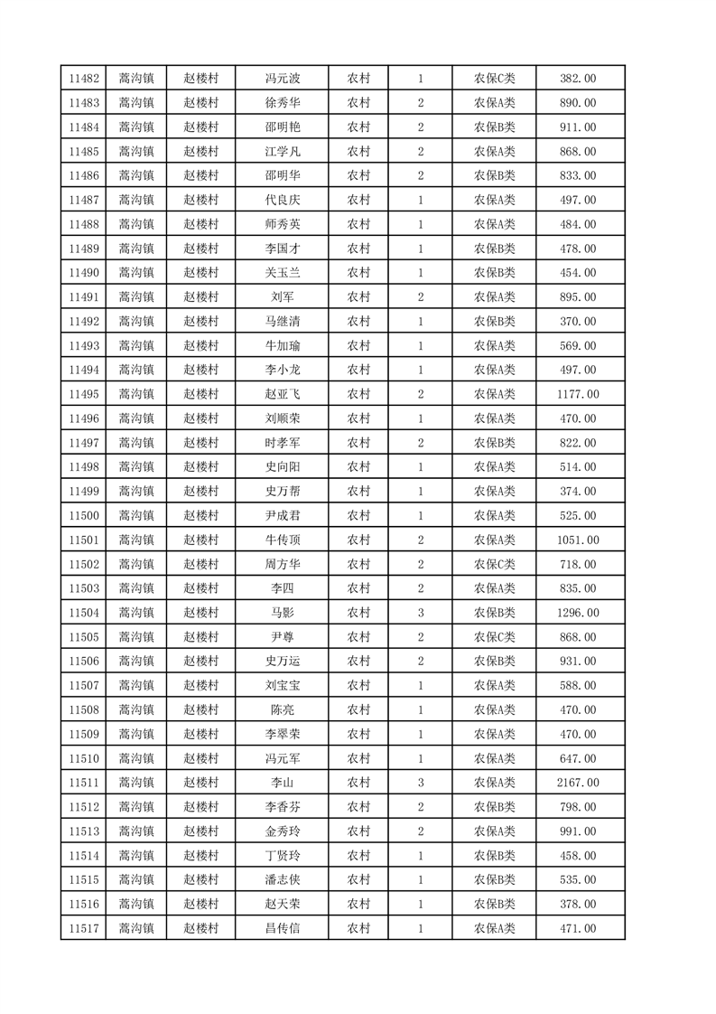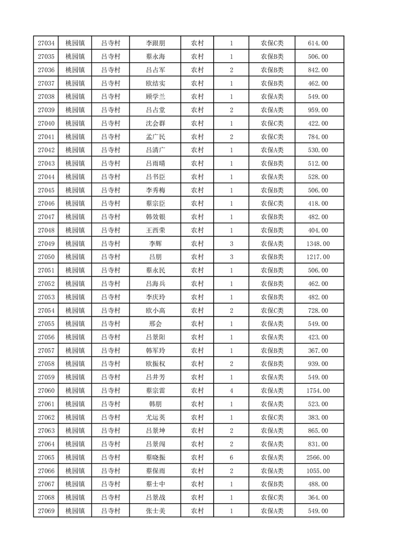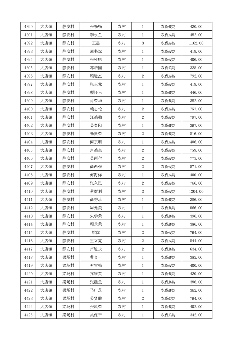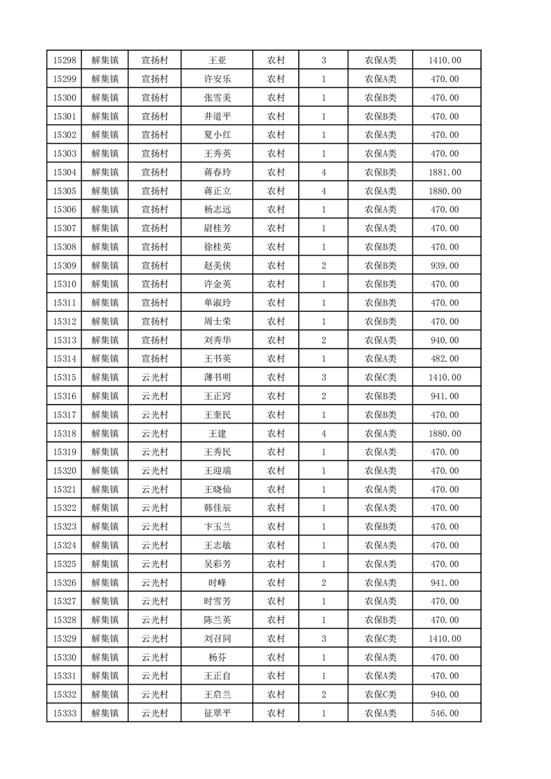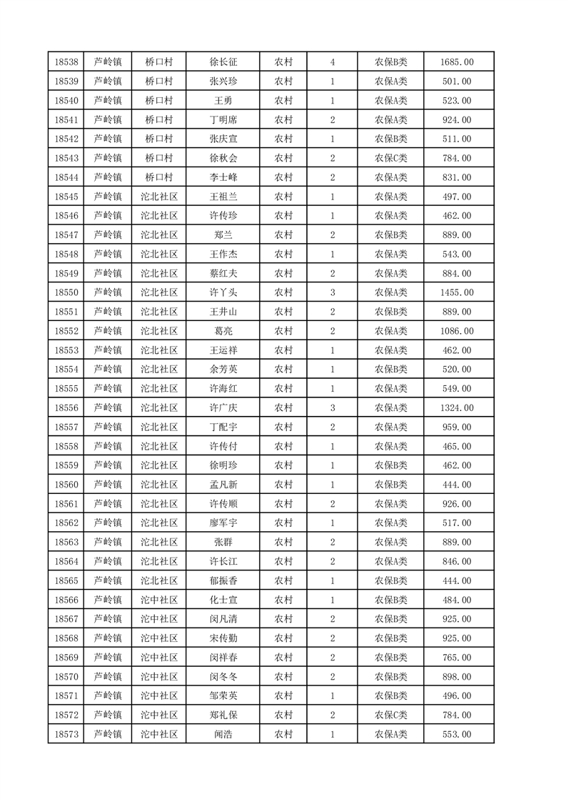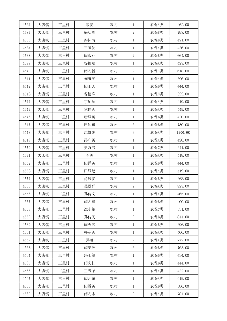 埇桥区2025年12月份农村低保花名册