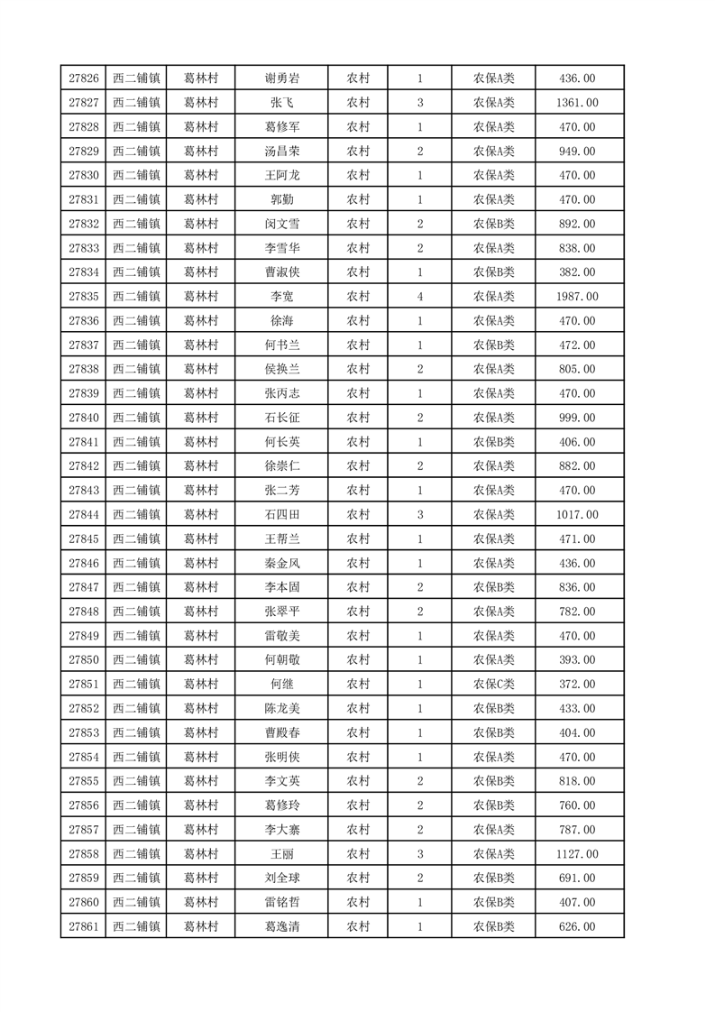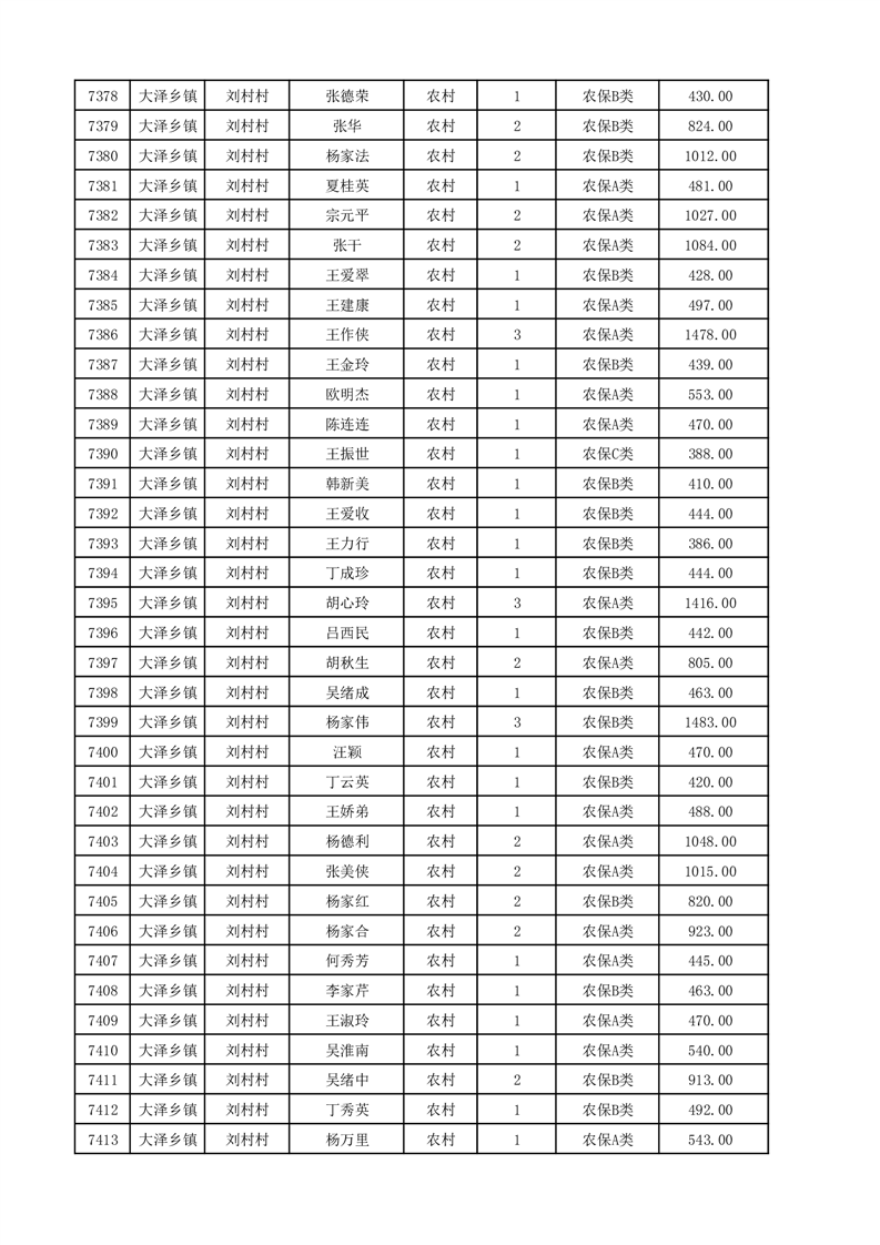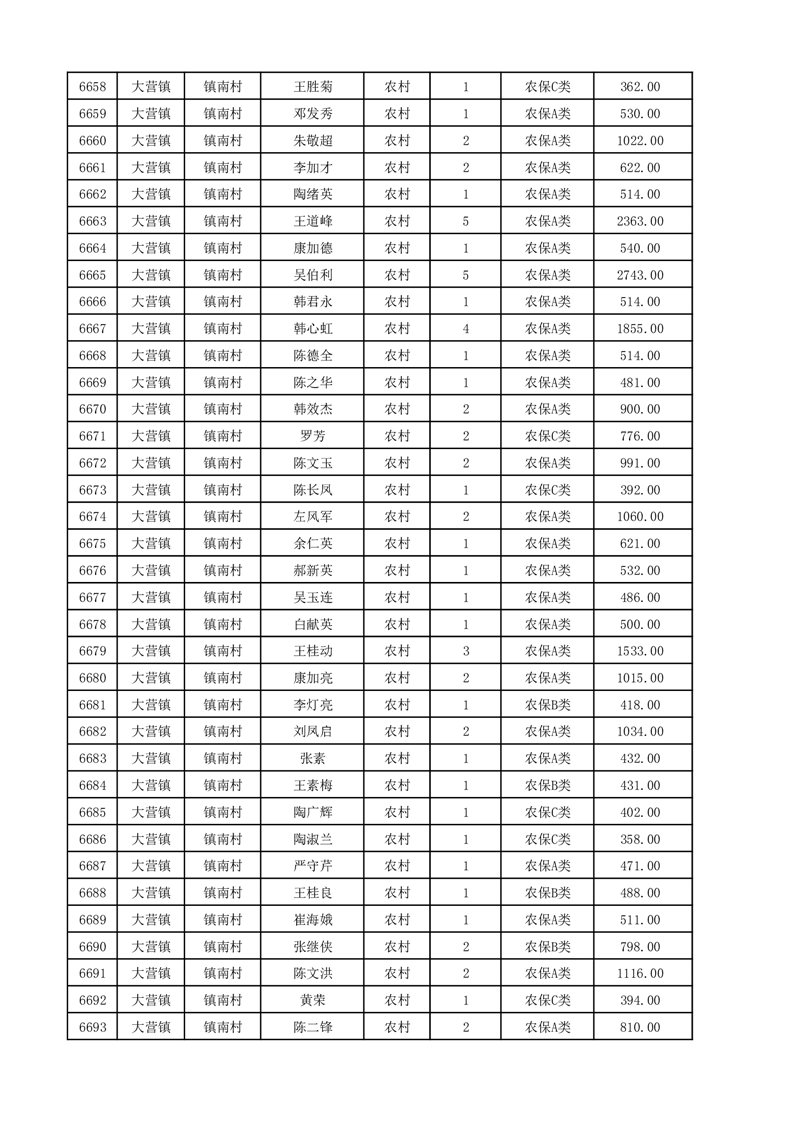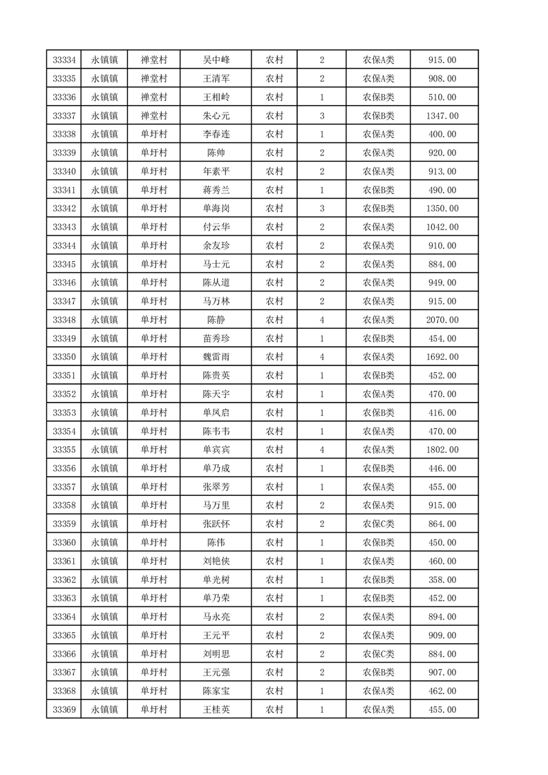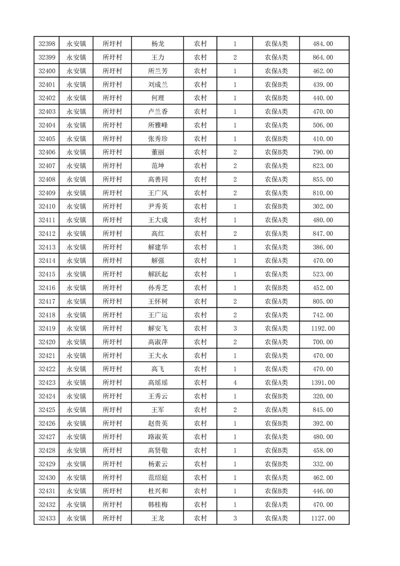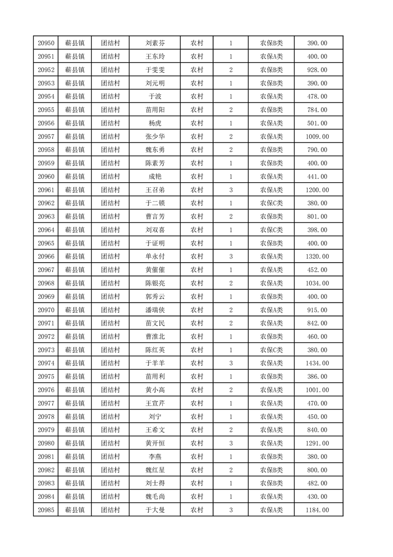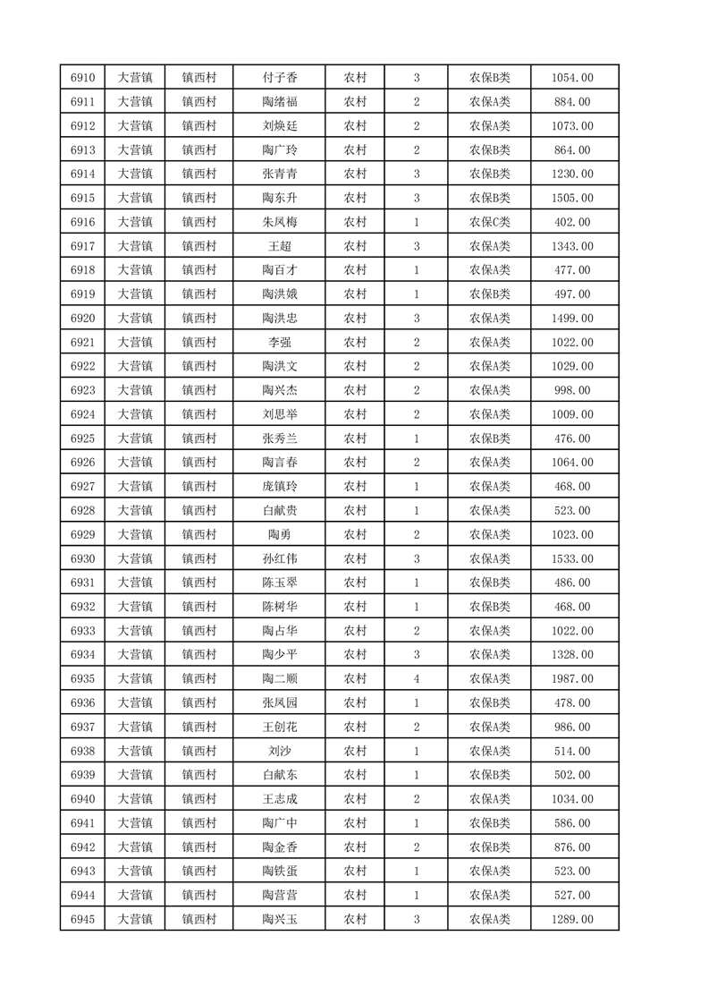 埇桥区2025年12月份农村低保花名册