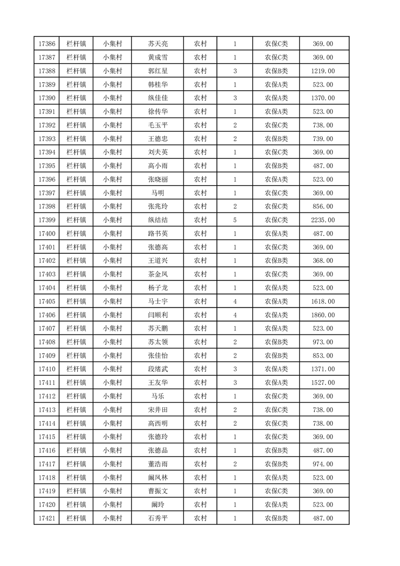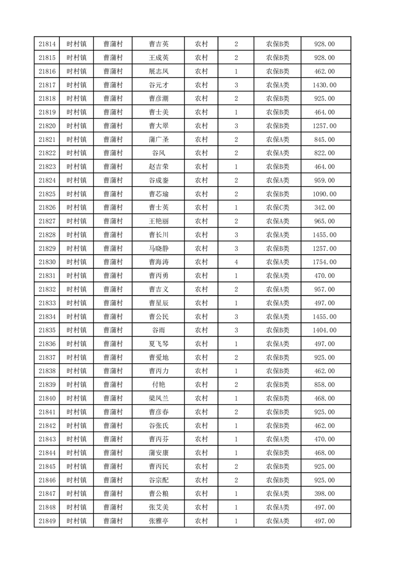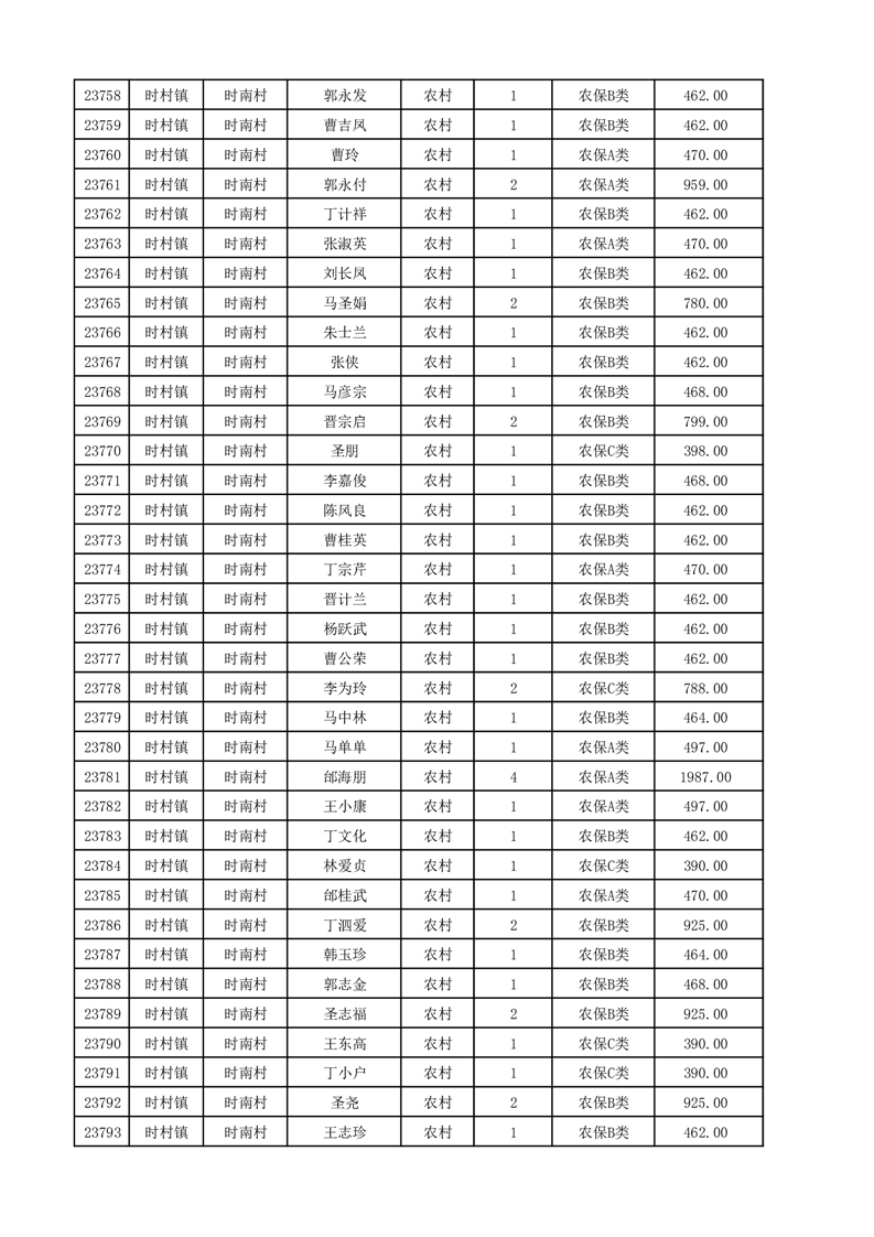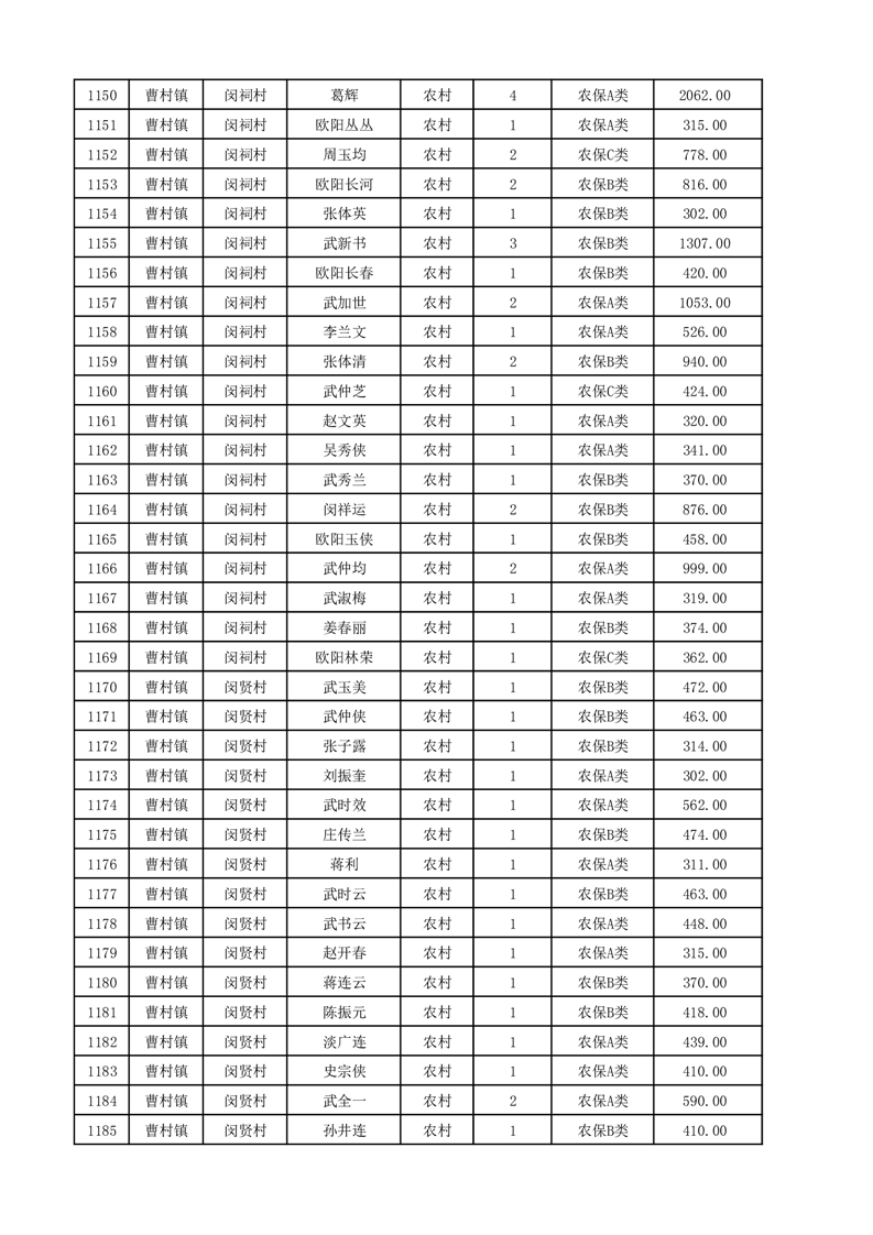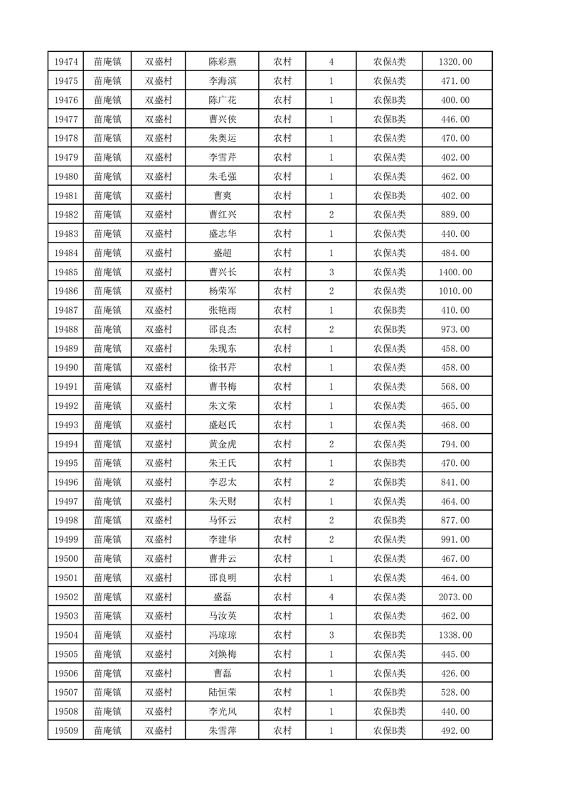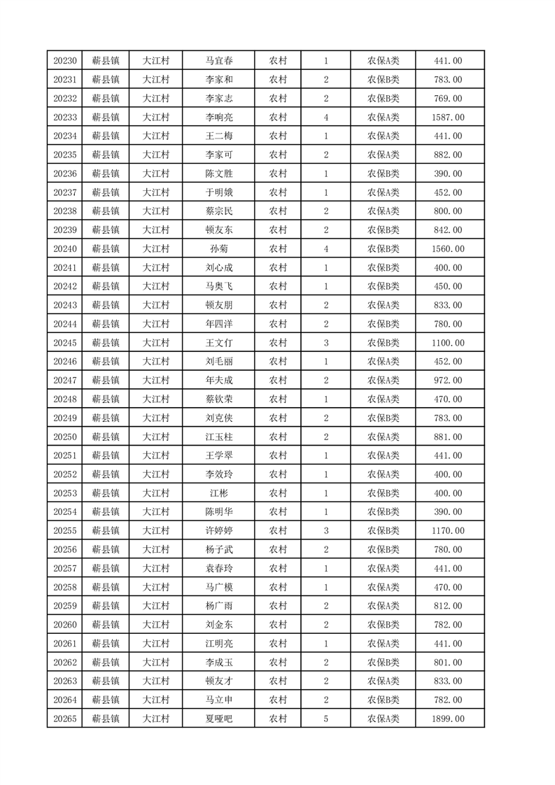 埇桥区2025年12月份农村低保花名册