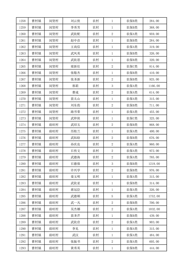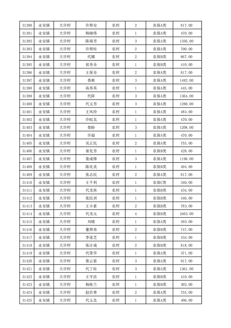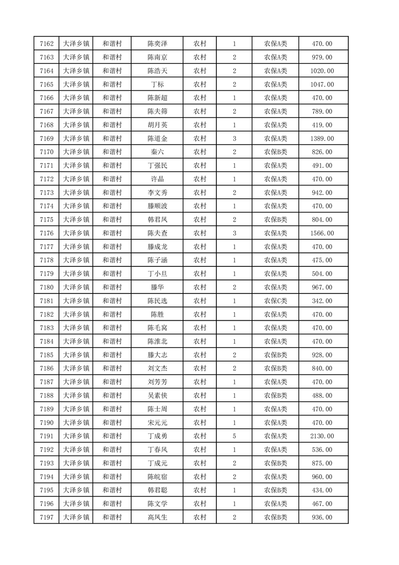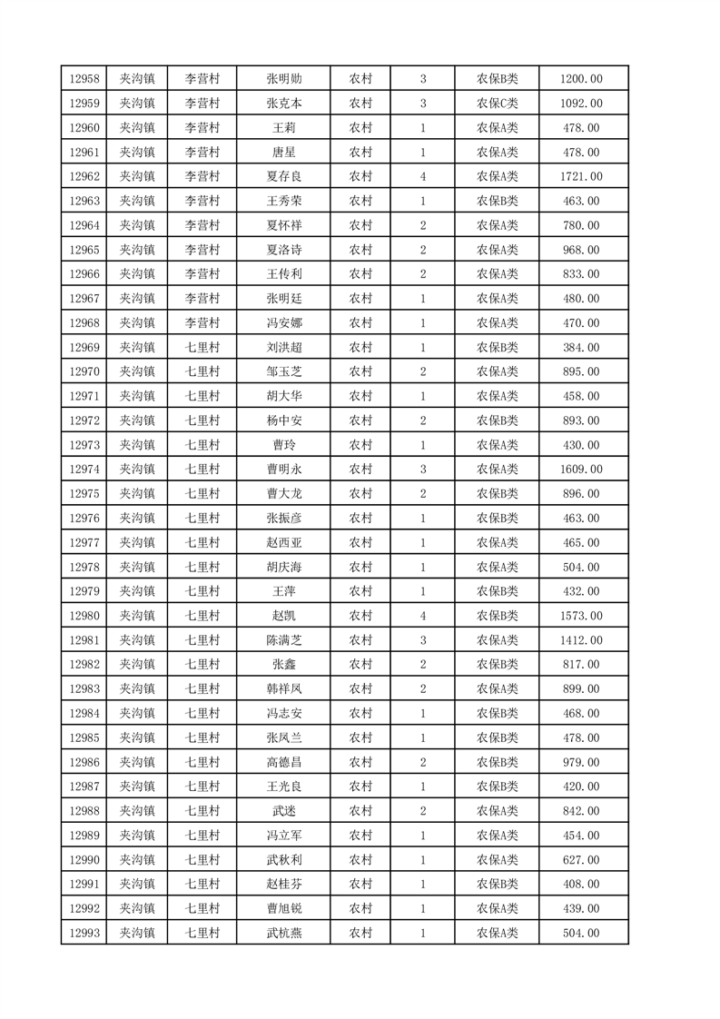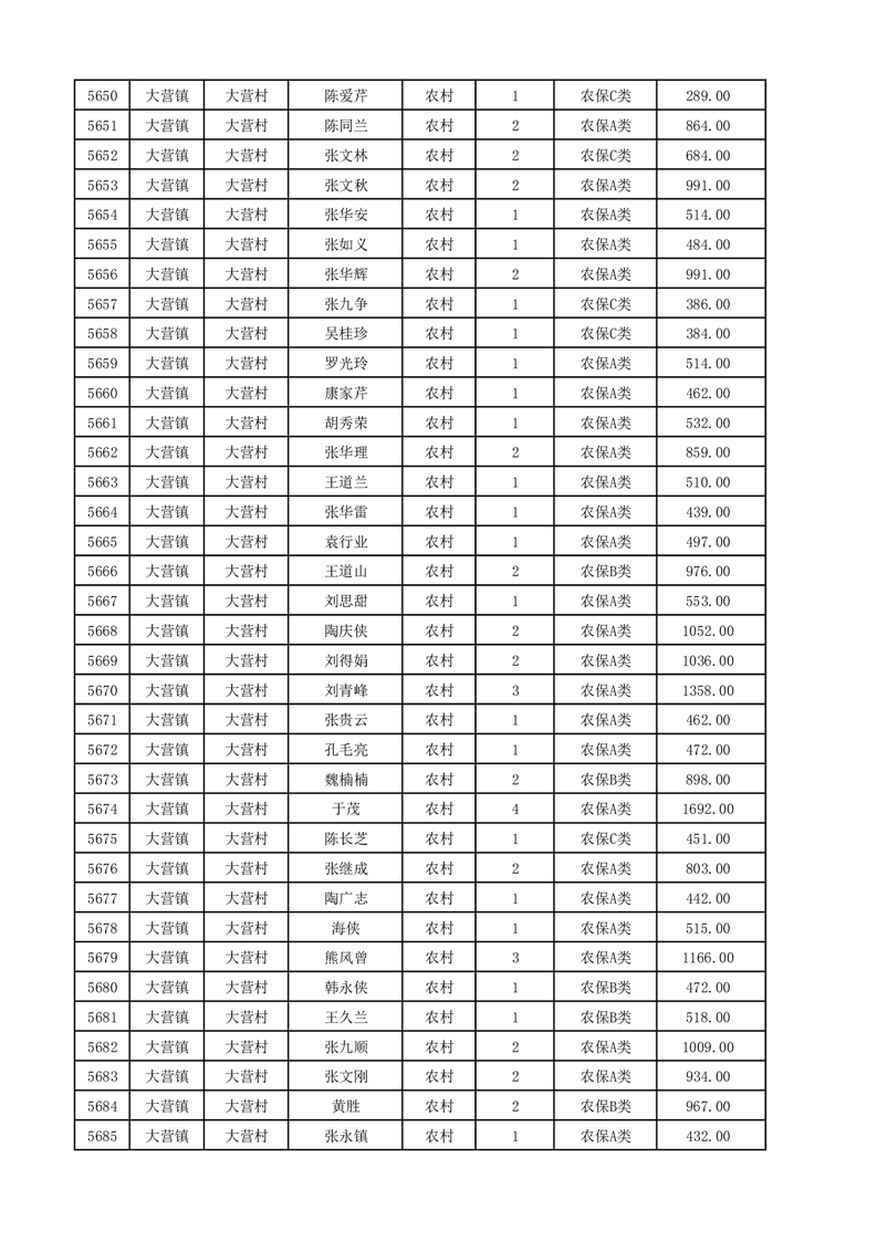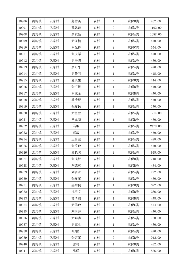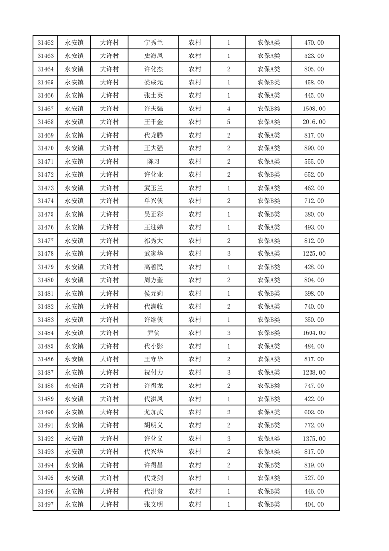 埇桥区2025年12月份农村低保花名册