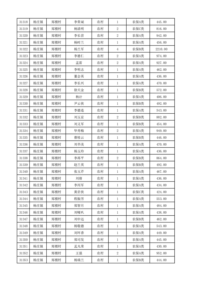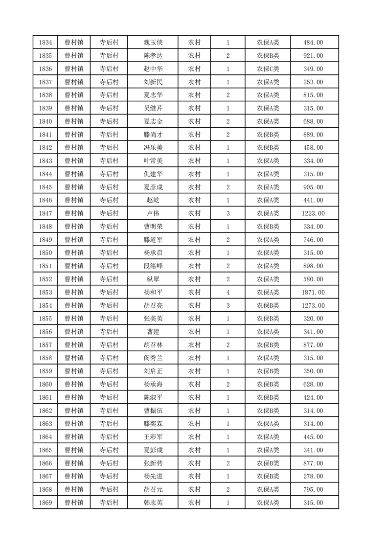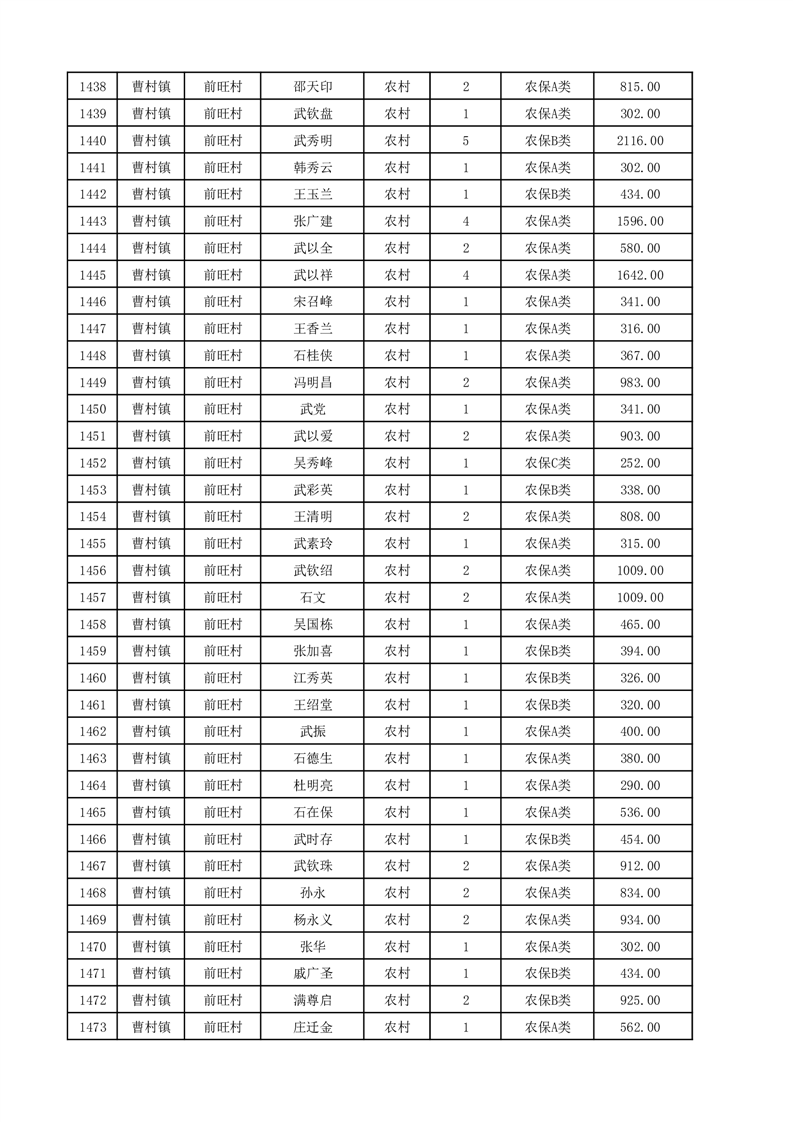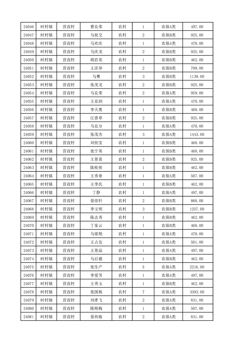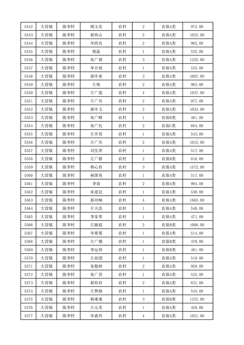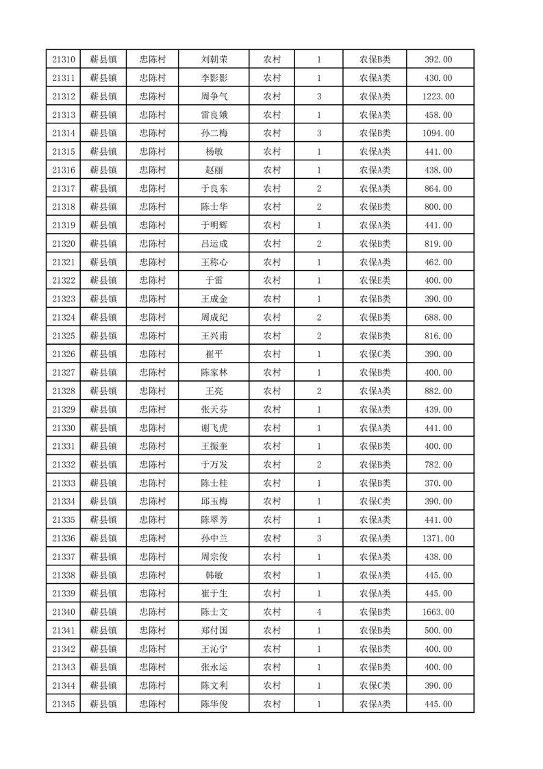 埇桥区2025年12月份农村低保花名册