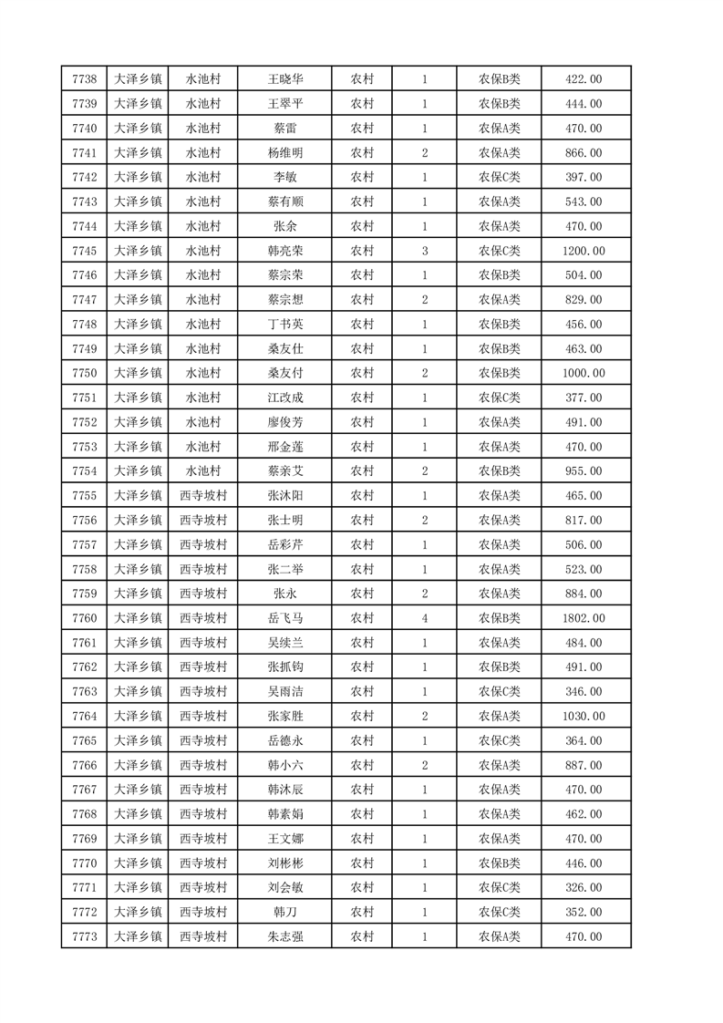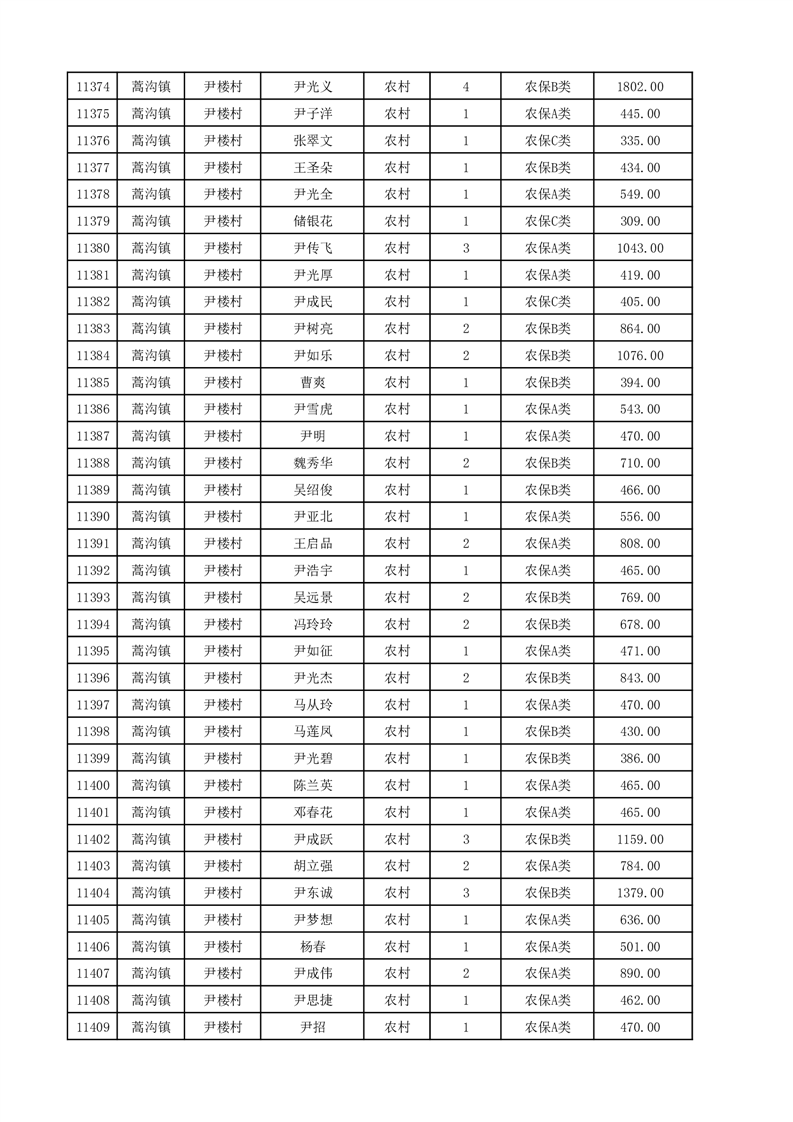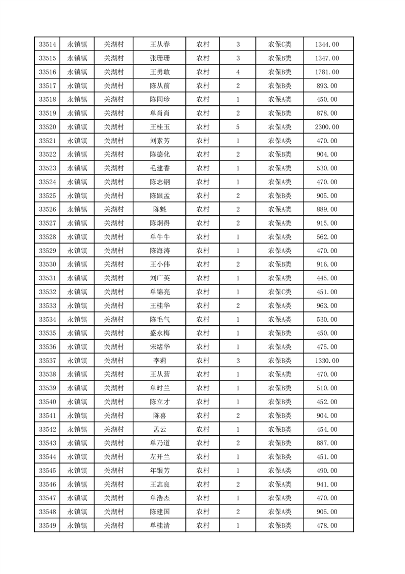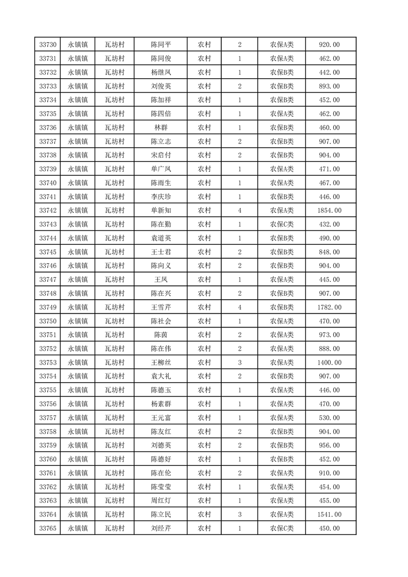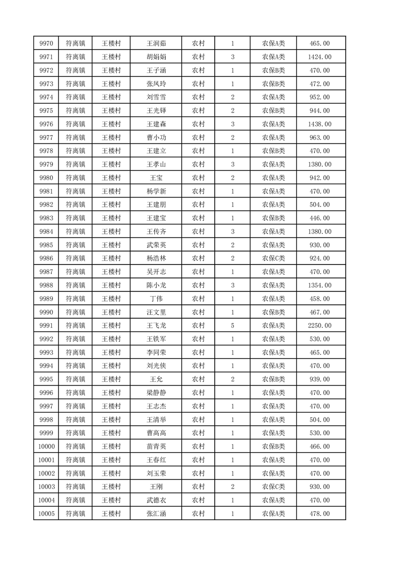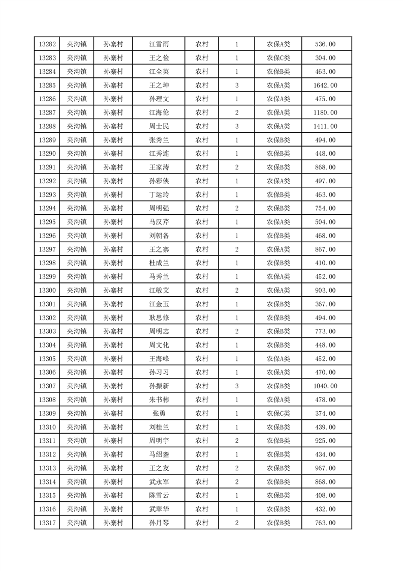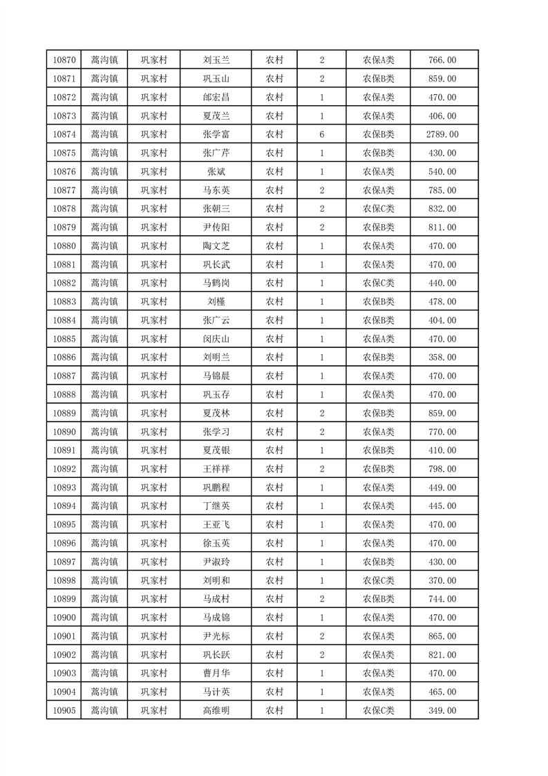 埇桥区2025年12月份农村低保花名册