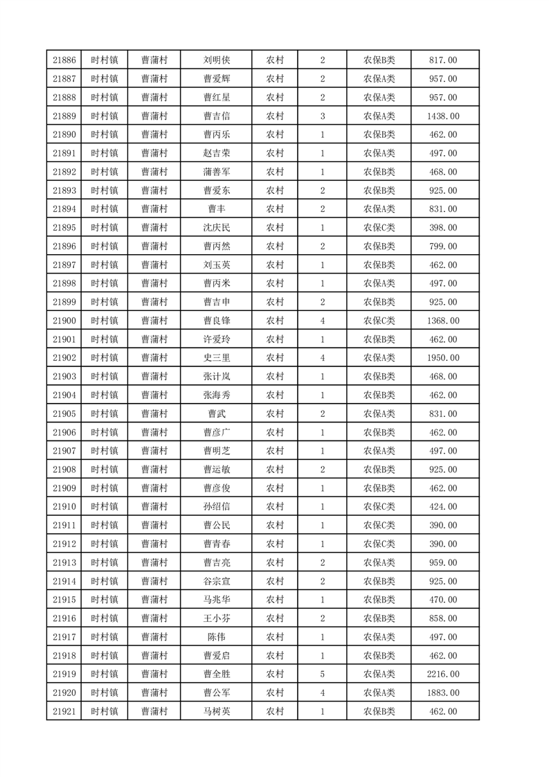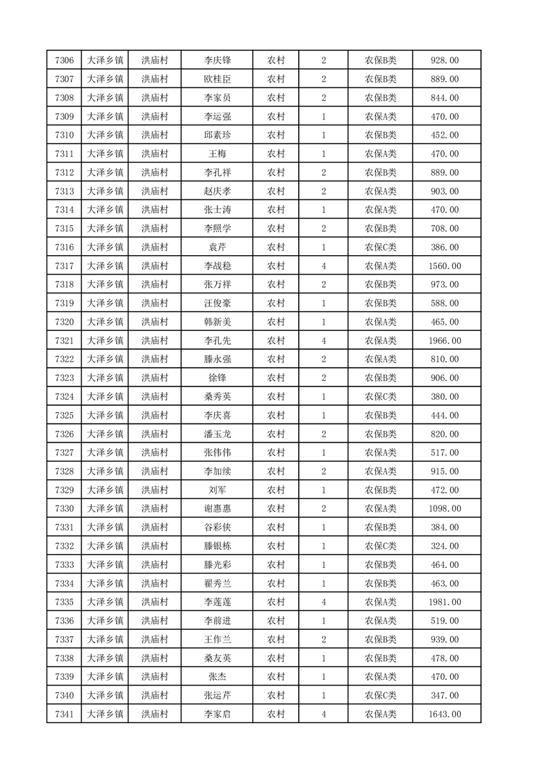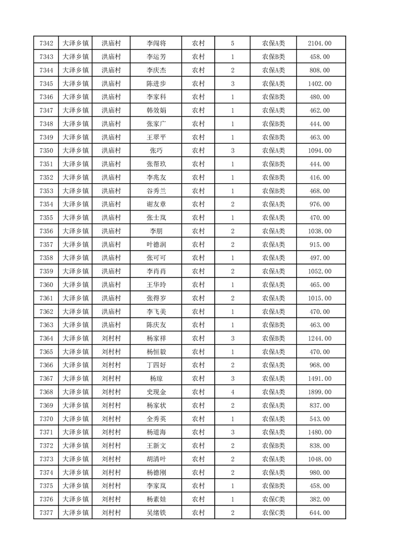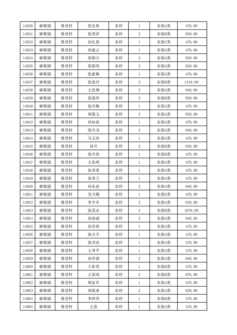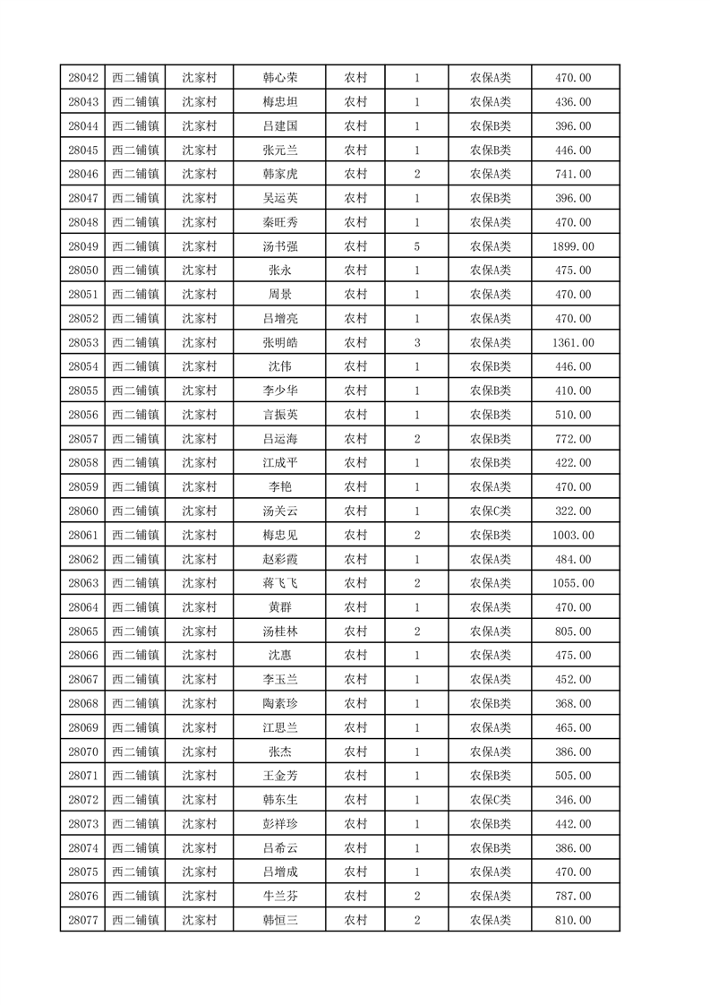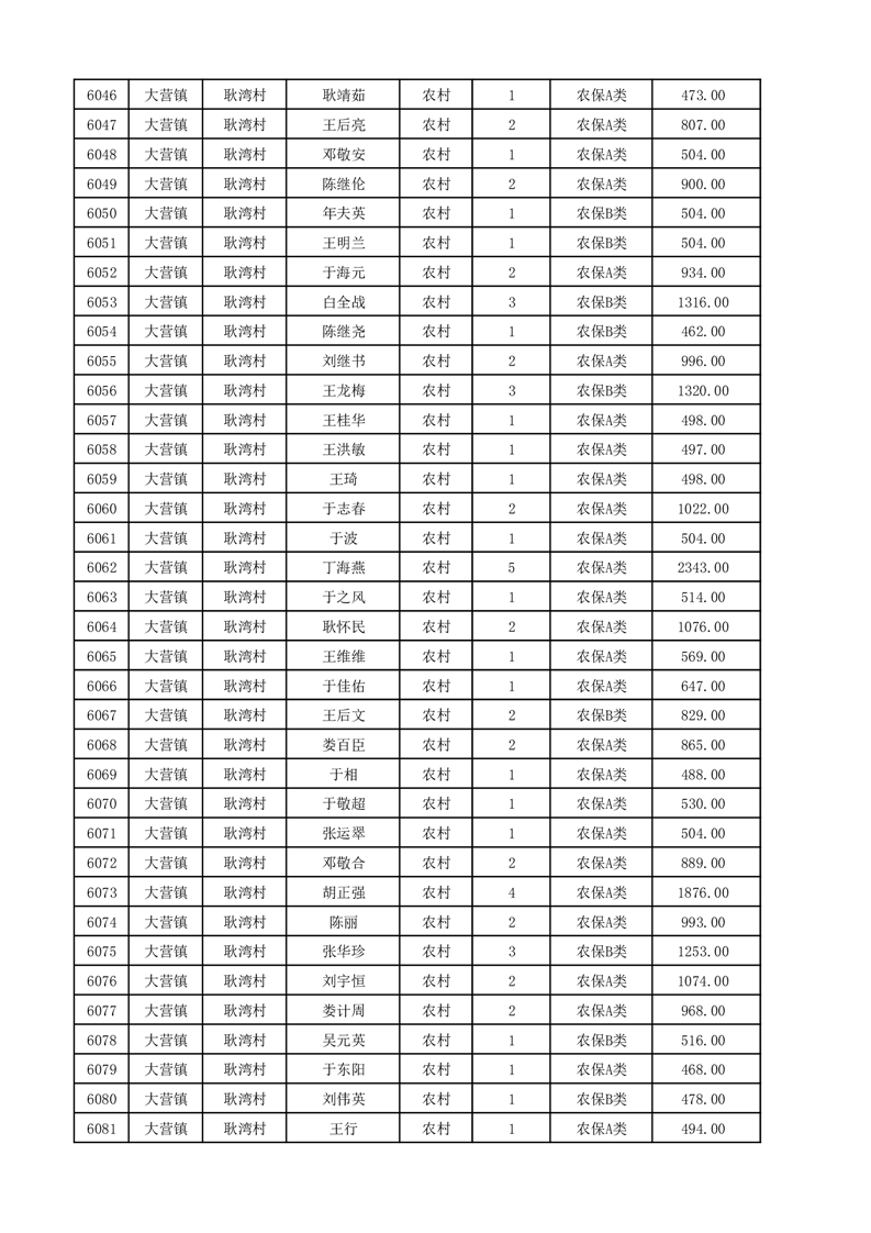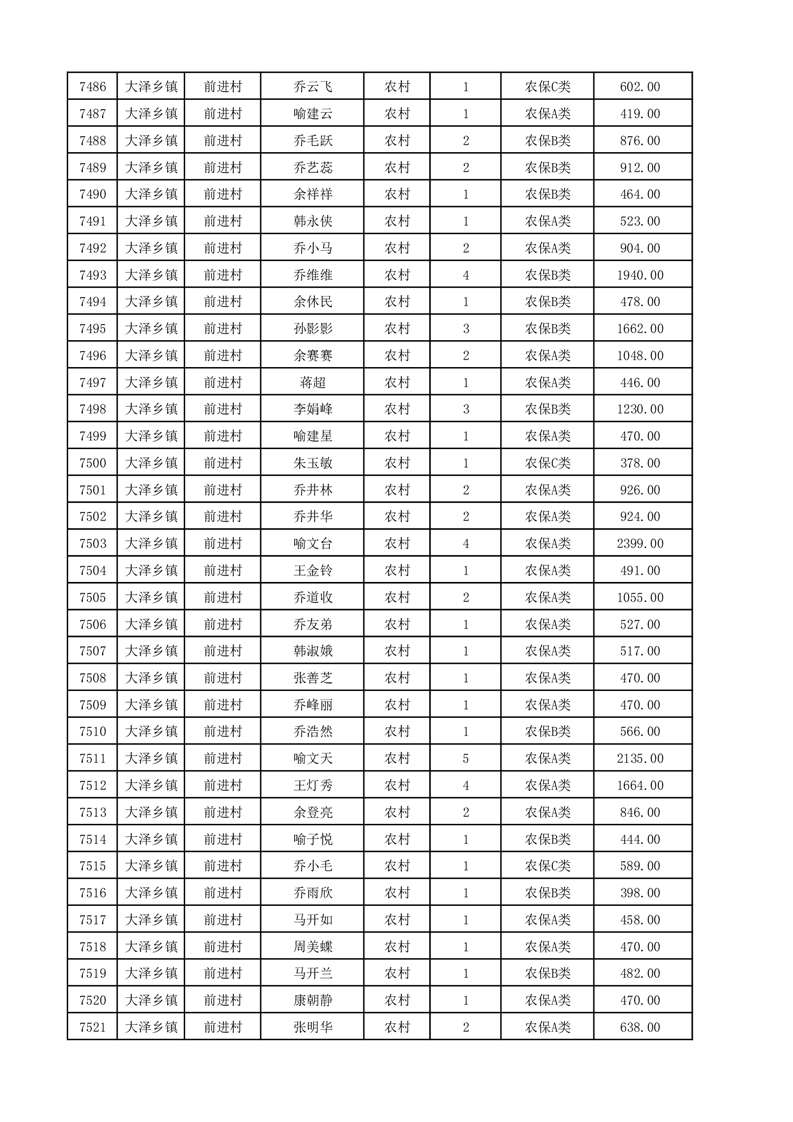 埇桥区2025年12月份农村低保花名册