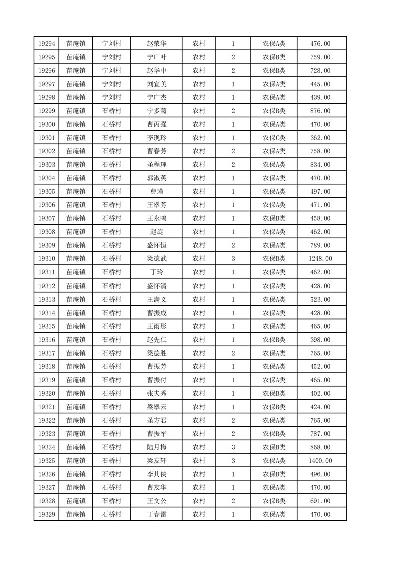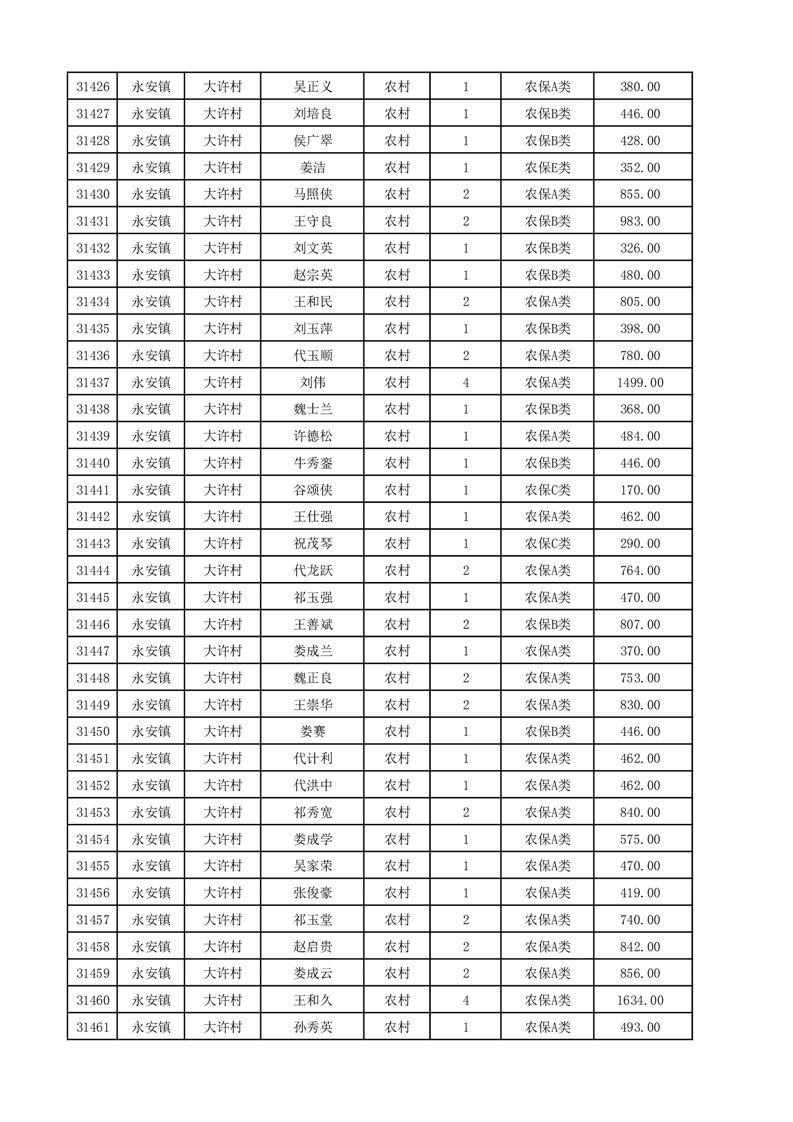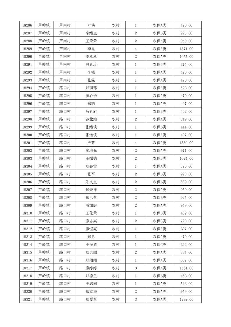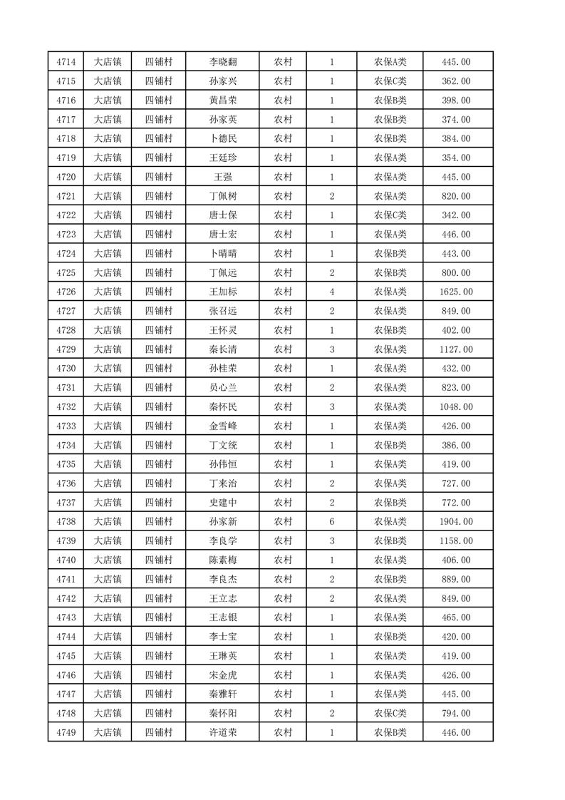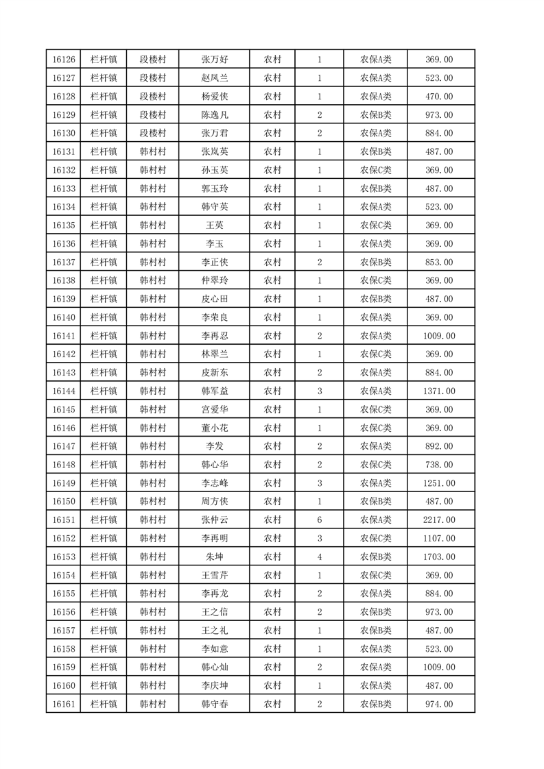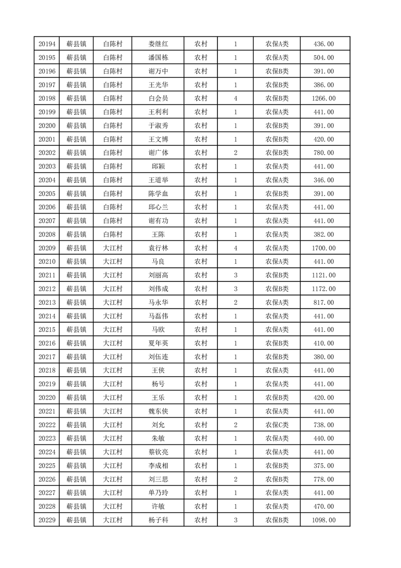 埇桥区2025年12月份农村低保花名册