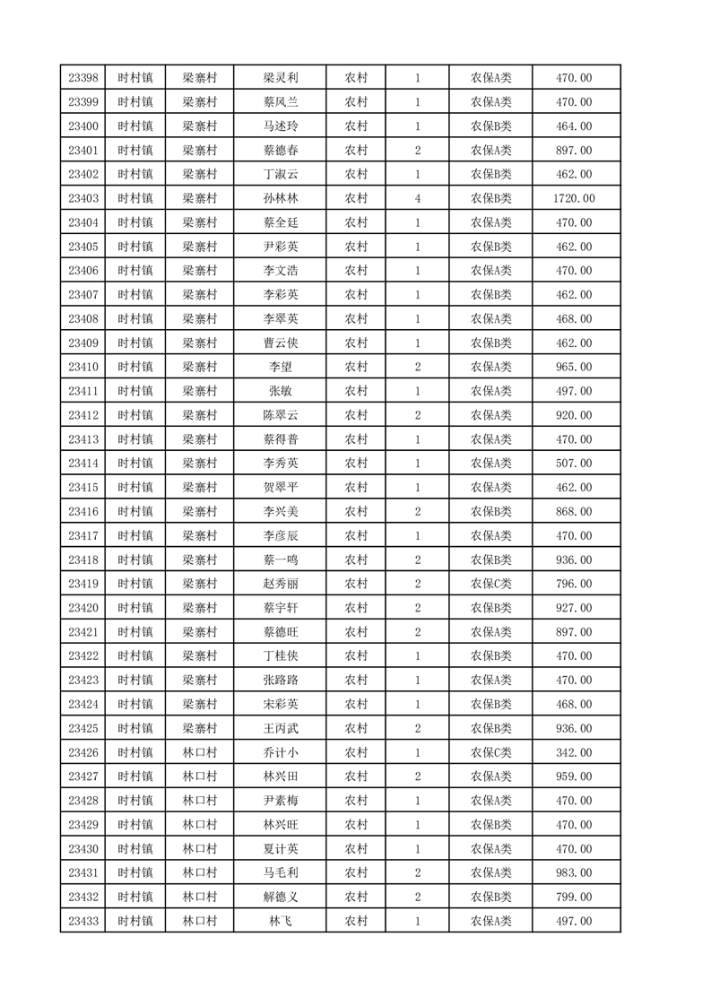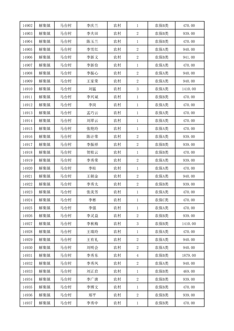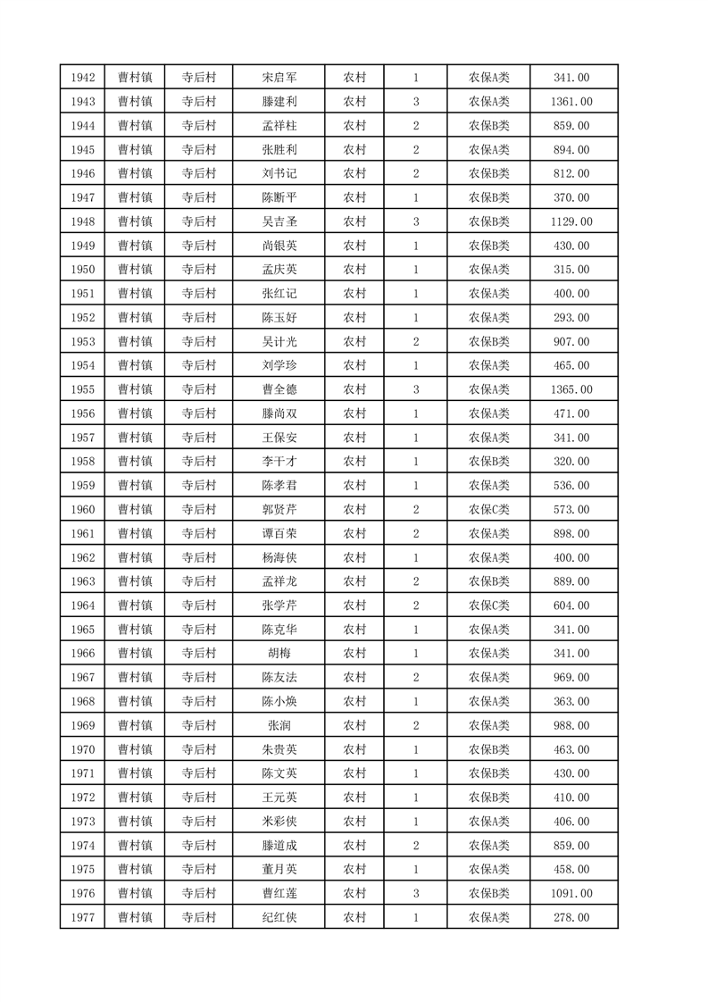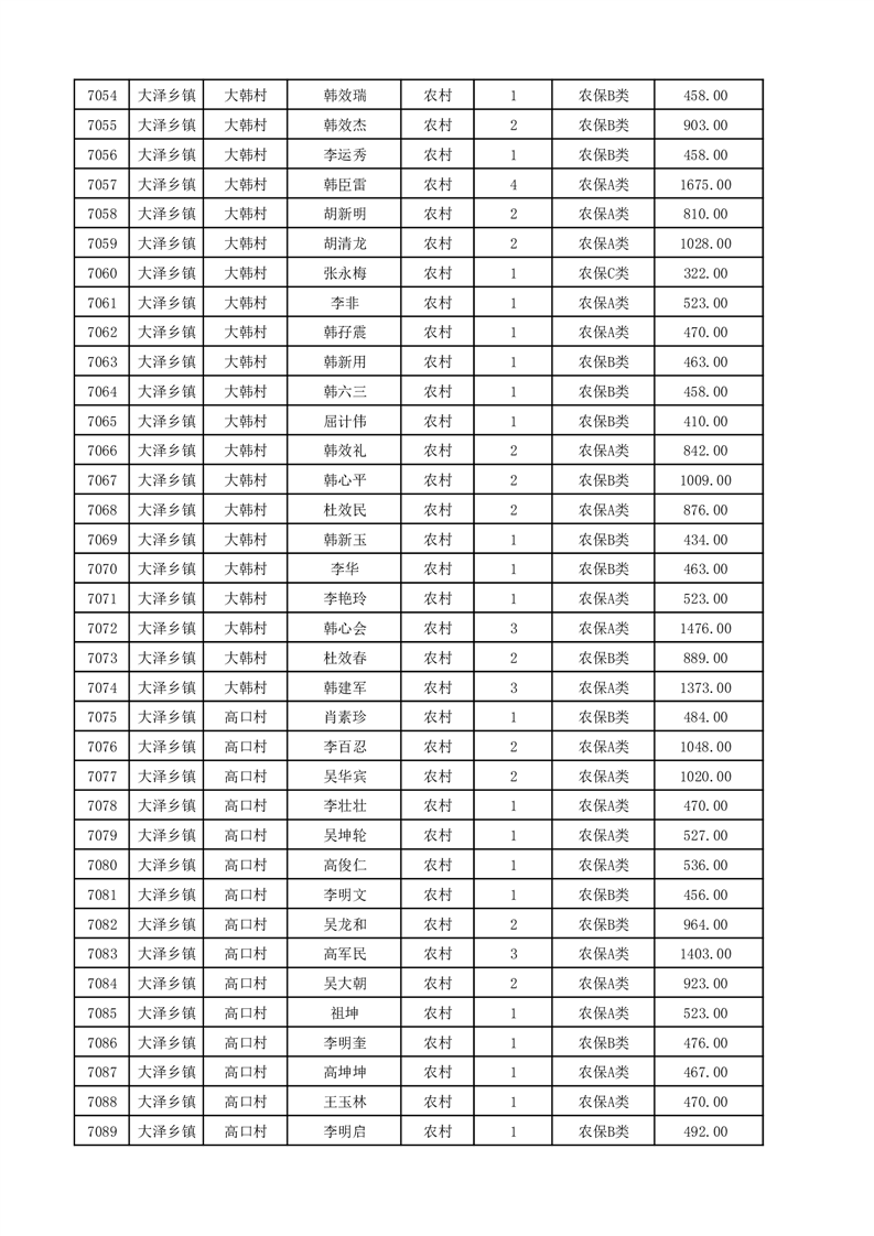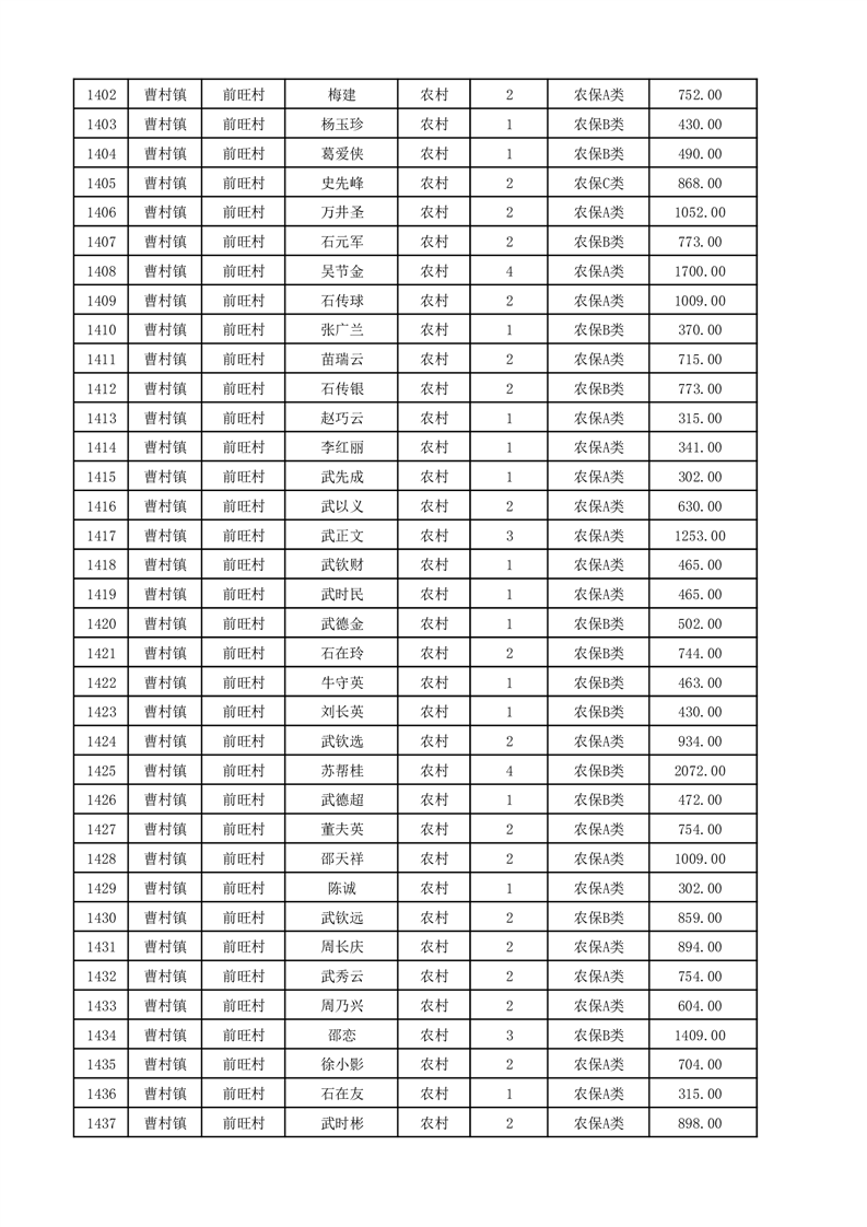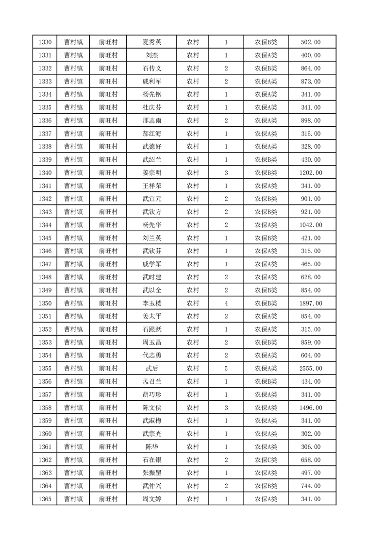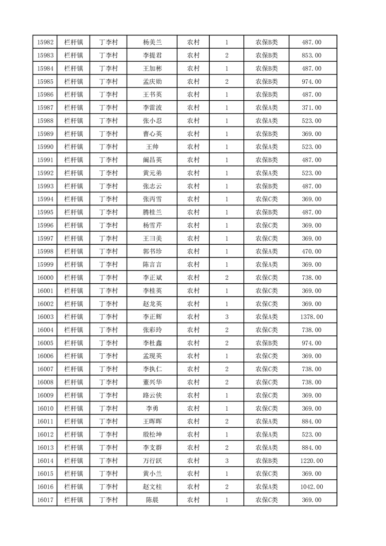 埇桥区2025年12月份农村低保花名册
