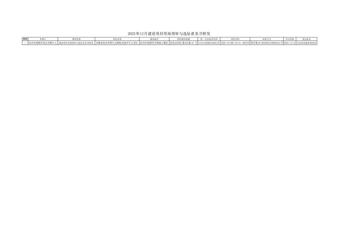 2025年12月建设项目用地预审与选址意见书核发