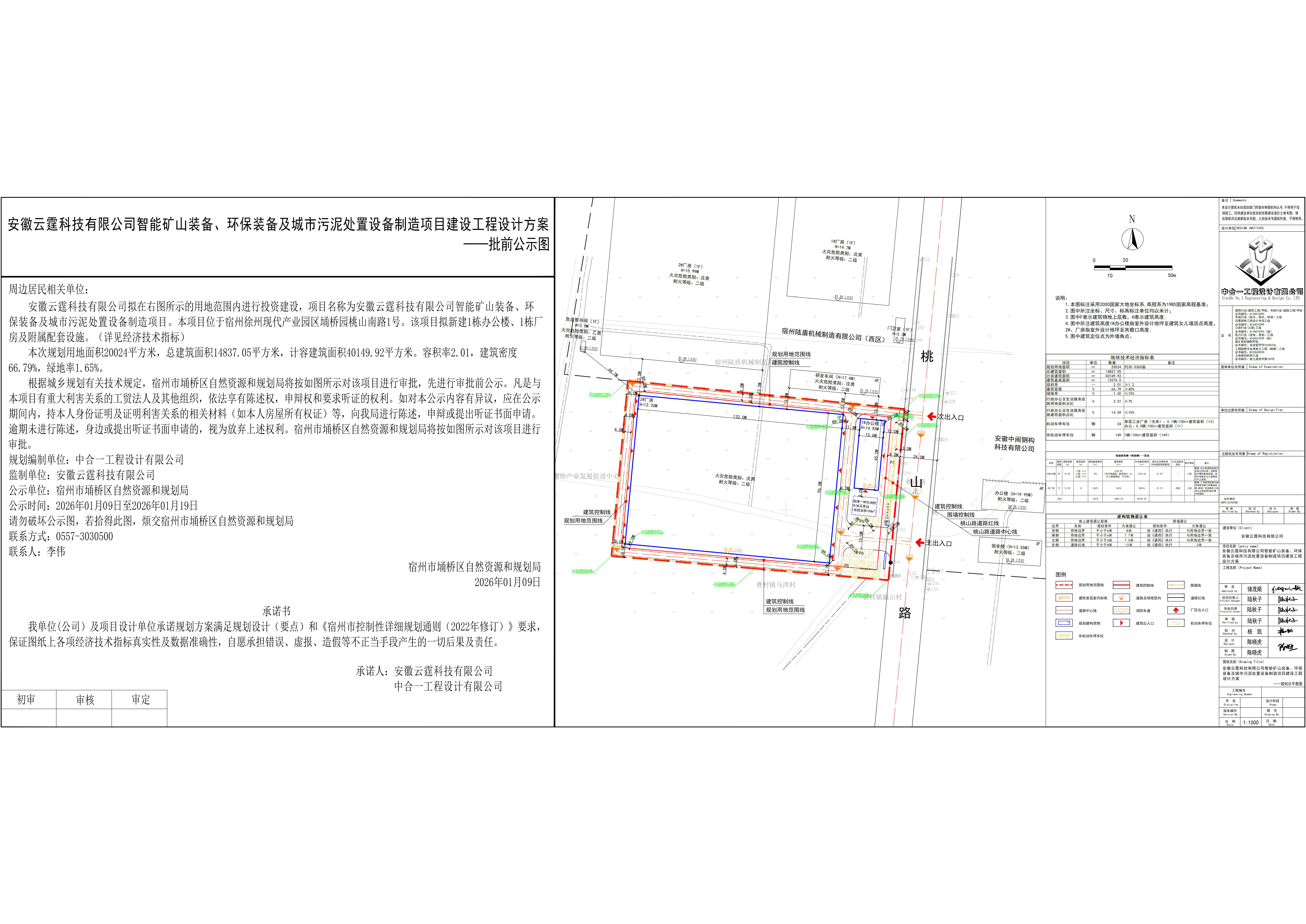 安徽云霆科技有限公司智能矿山装备、环保装备及城市污泥处置设备制造项目规划设计方案批前公示