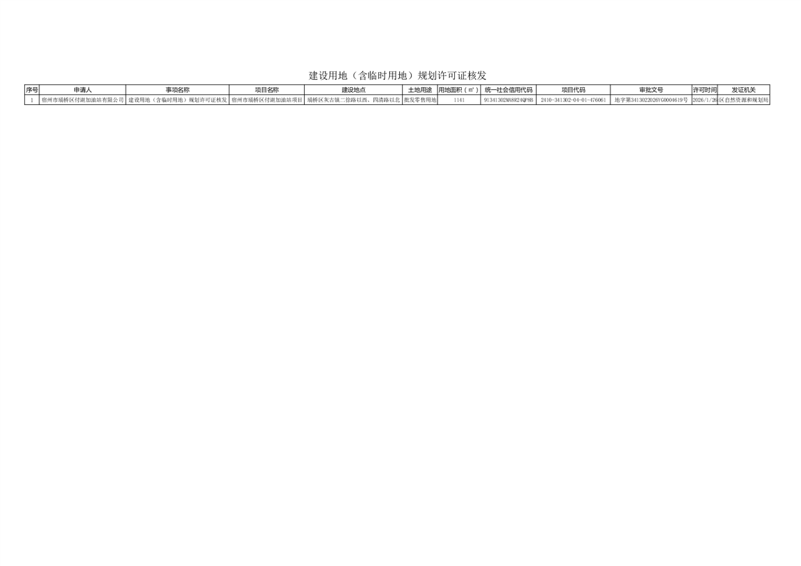 宿州市埇桥区付湖加油站项目建设用地(含临时用地)规划许可证核发